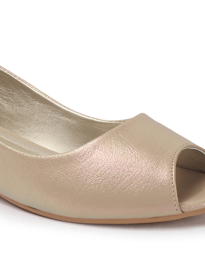 Carlton London Women's Metallic Peep Toe Low Heel Pumps