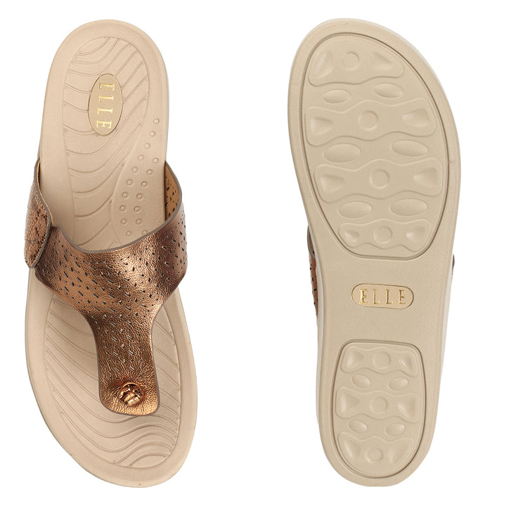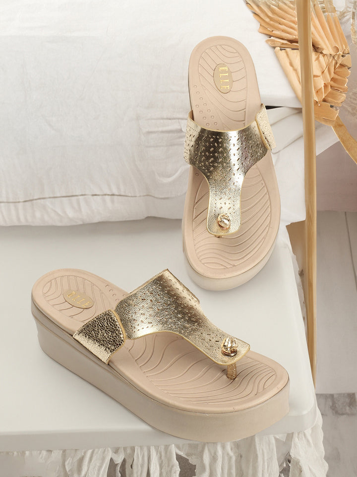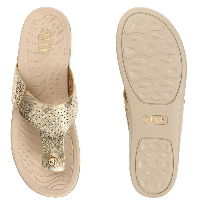 ELLE Women's Metallic Perforated Platform Thong Sandals