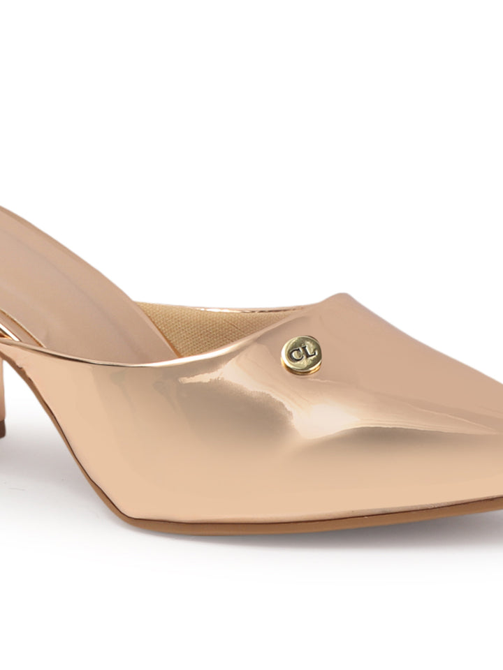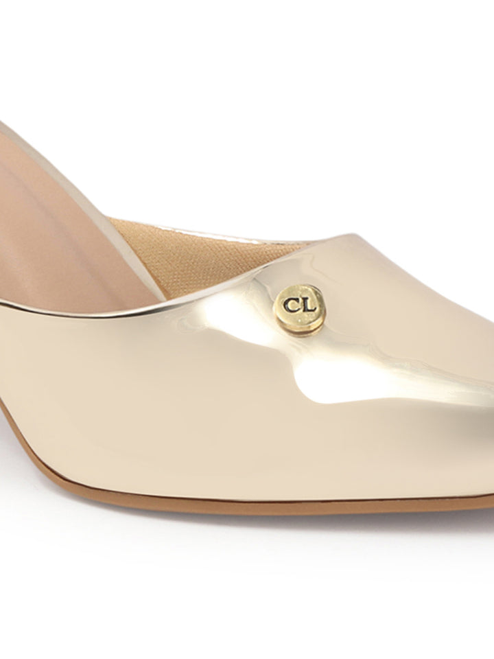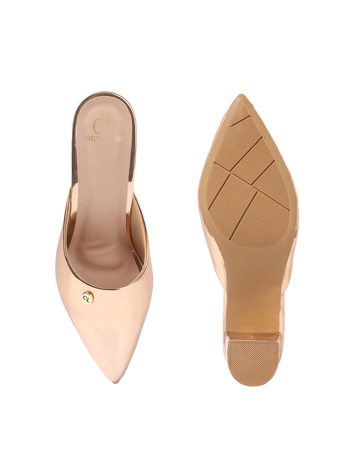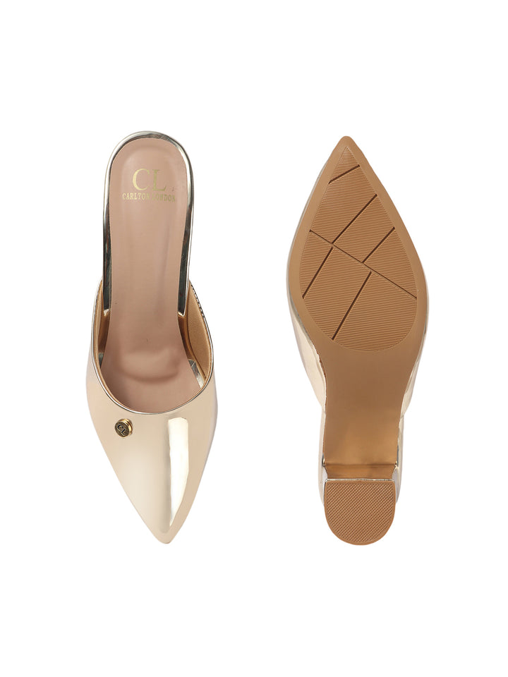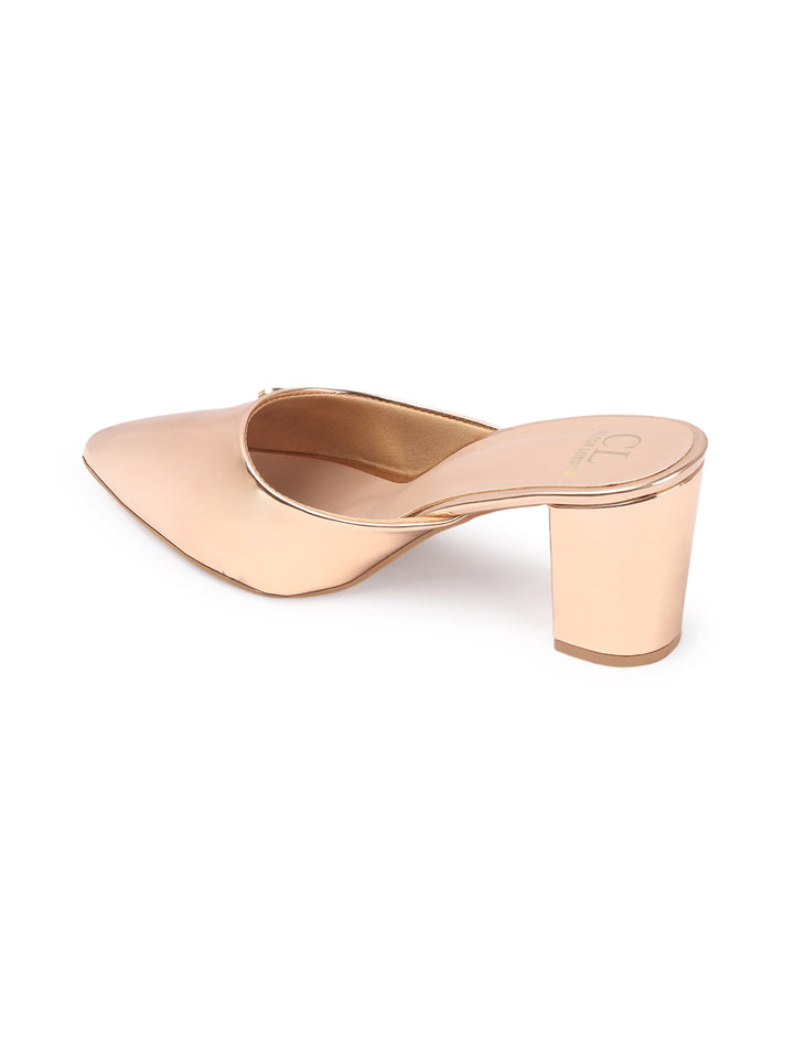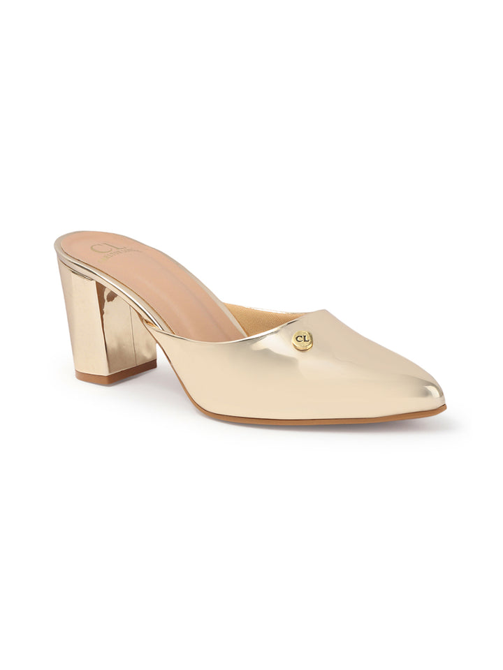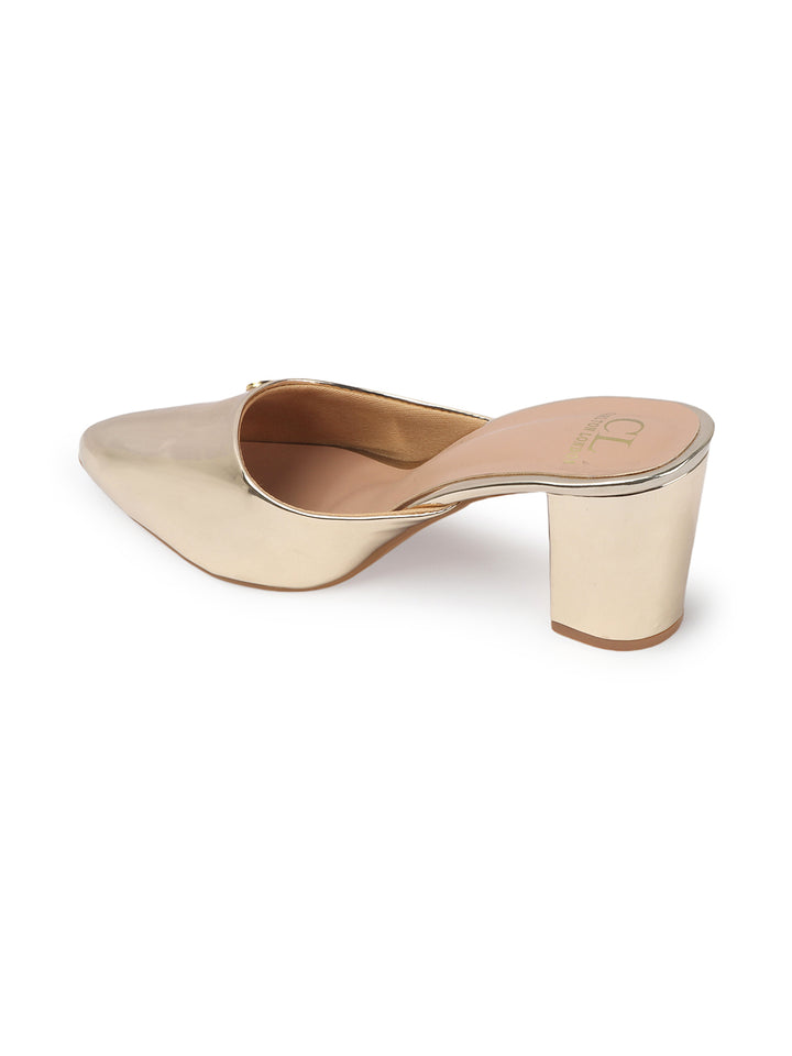 Women's Metallic Pointed Toe Block Heel Mules