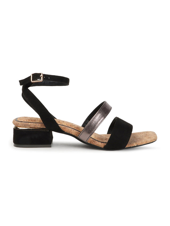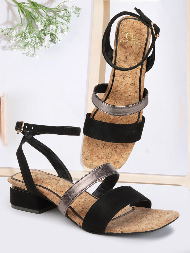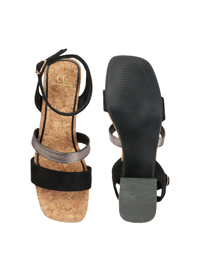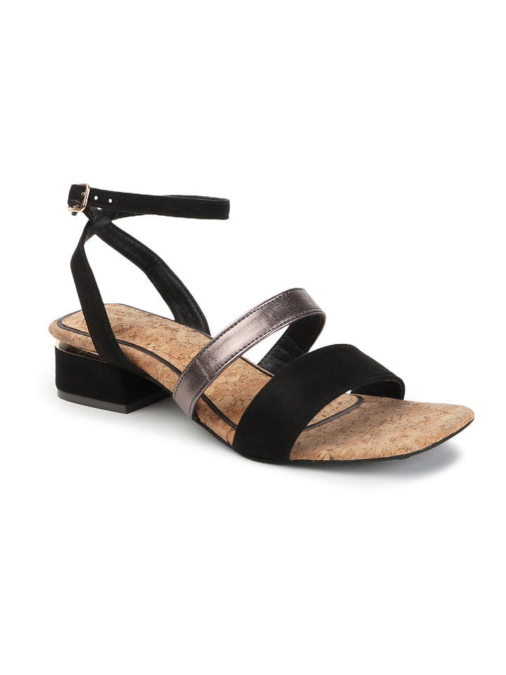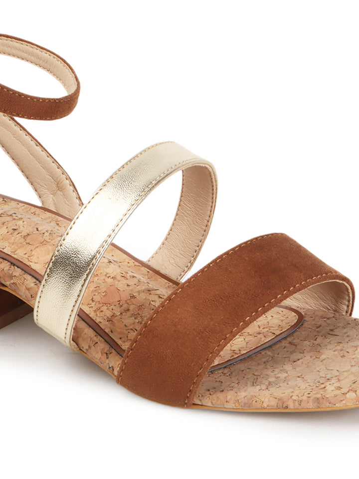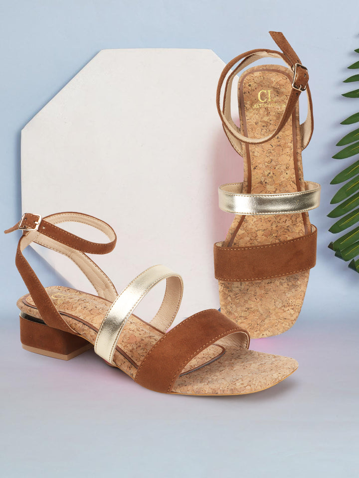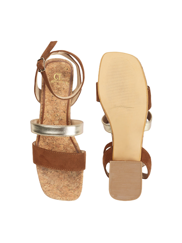 Carlton London Women's Metallic Strap Block Heel Sandals