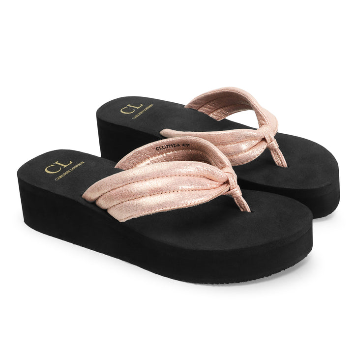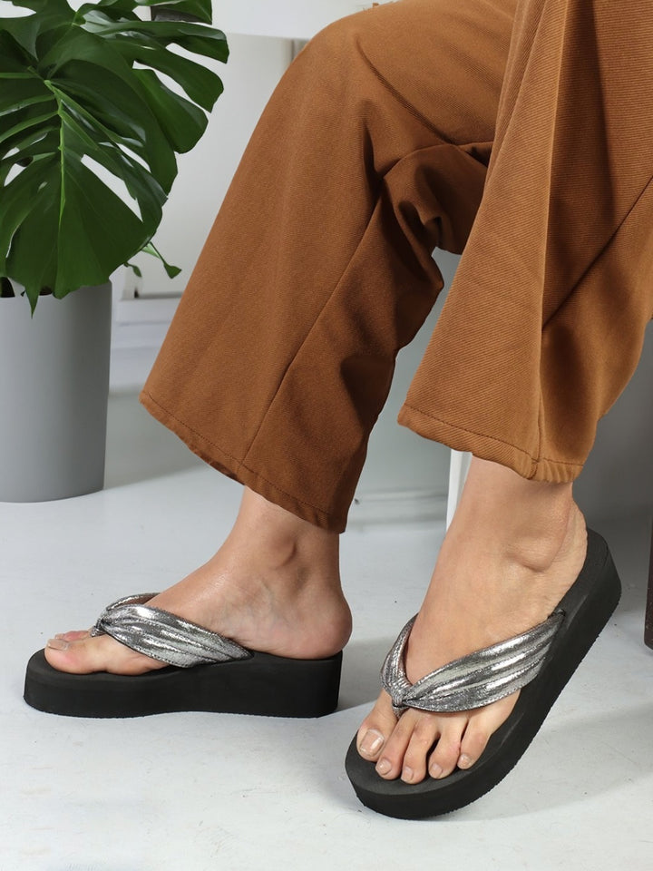 Step into sparkling style and comfort with these Women's Metallic Thong Strap Platform Sandal Women's Designed for a fashionable yet relaxed look, these footwear The comfortable Perfect for warm weather, these versatile are ideal for casual outings, special events, or simply adding a touch to your everyday look.