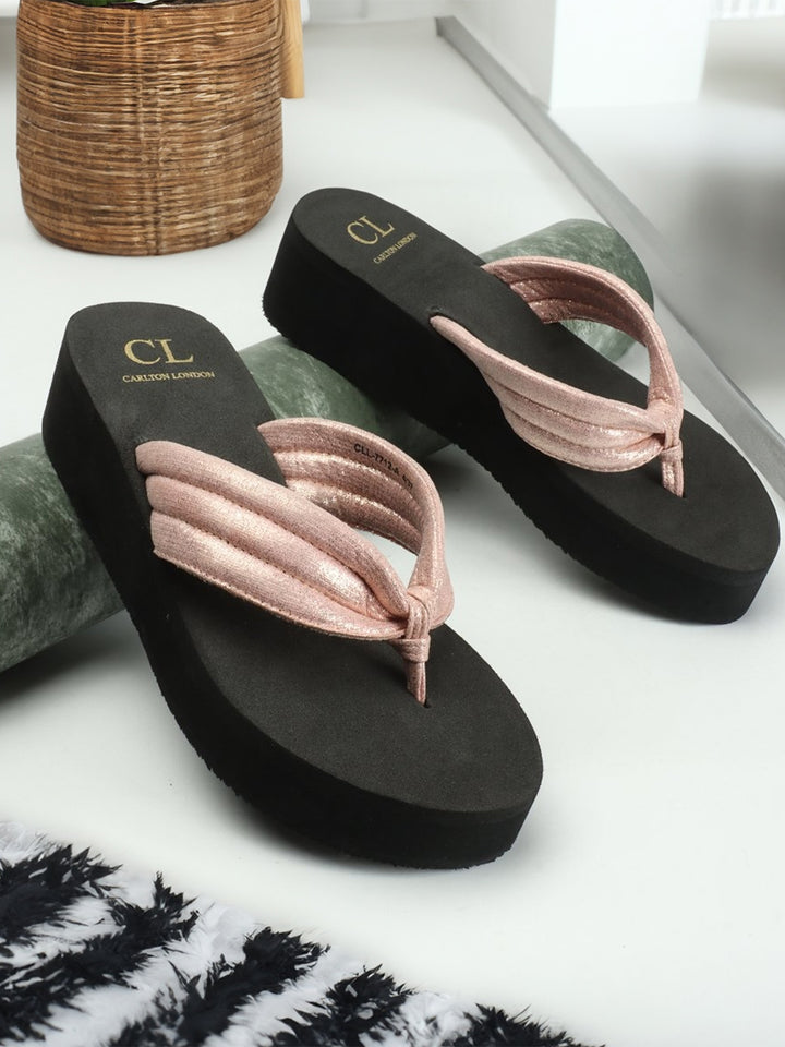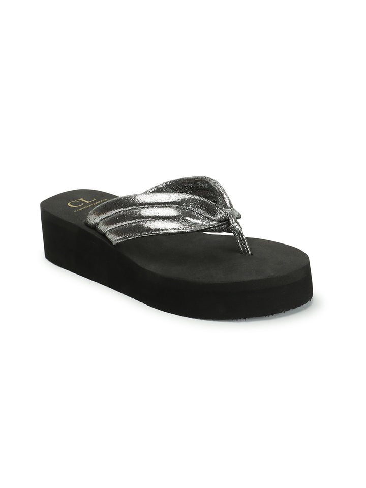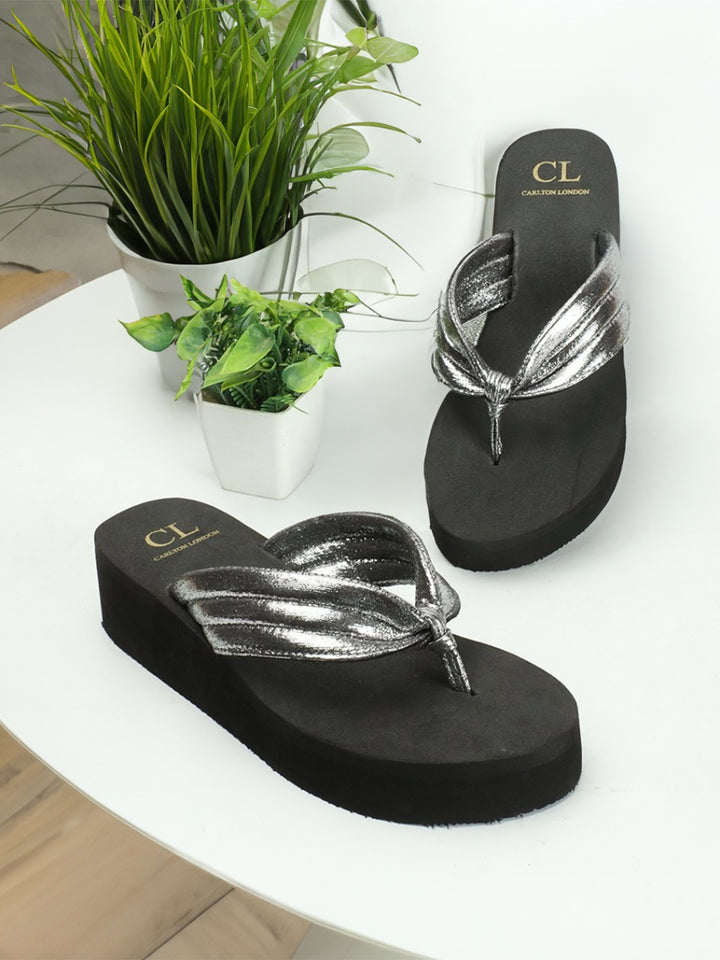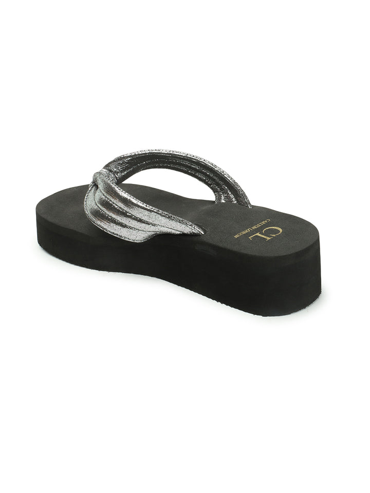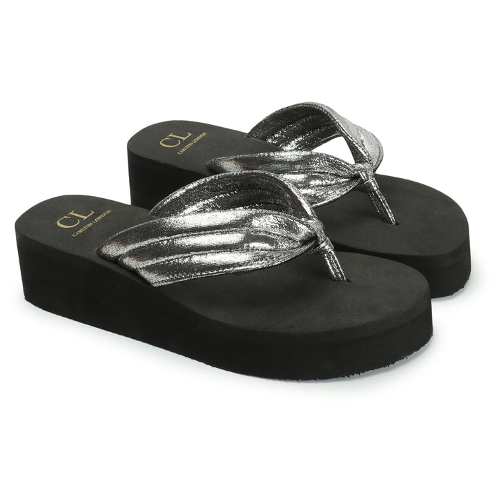 Carlton London Women's Metallic Thong Strap Platform Sandal