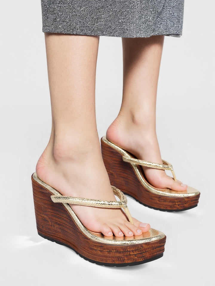 Step into sparkling style and comfort with these Women's Metallic Thong Wedge Sandals Women's Designed for a fashionable yet relaxed look, these footwear The comfortable Perfect for warm weather, these versatile are ideal for casual outings, special events, or simply adding a touch to your everyday look.