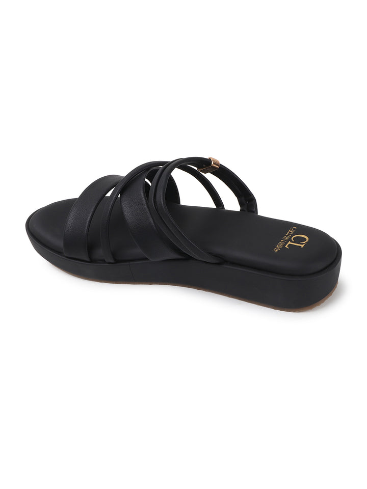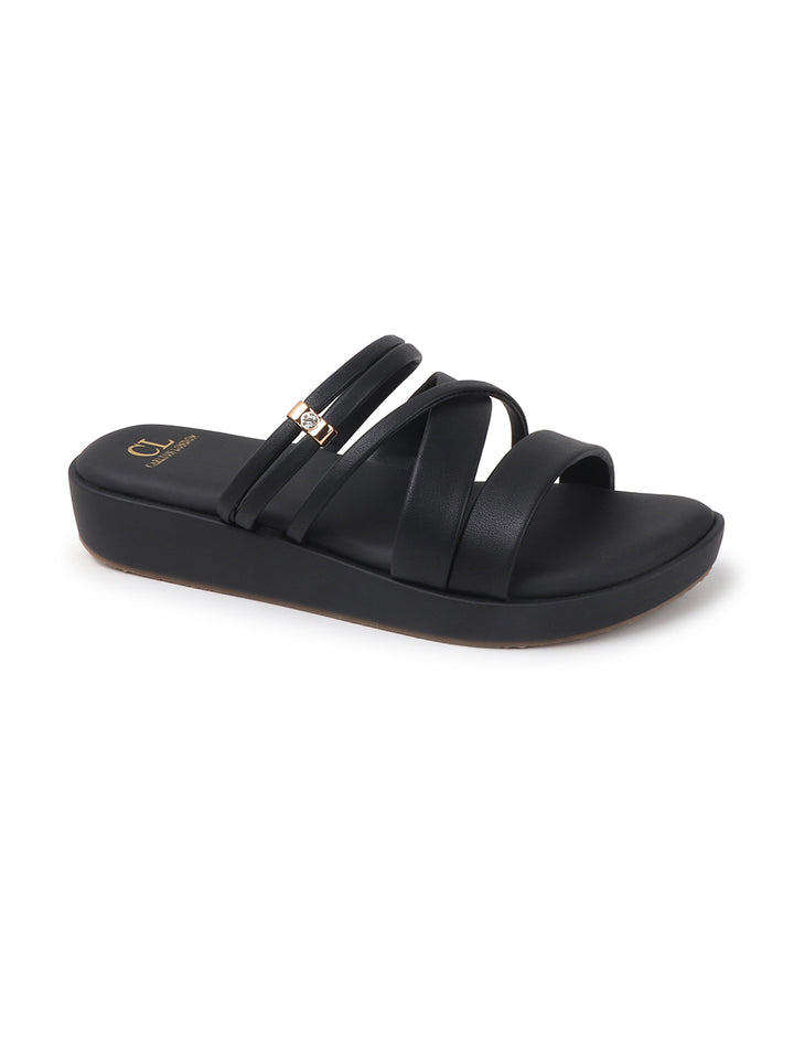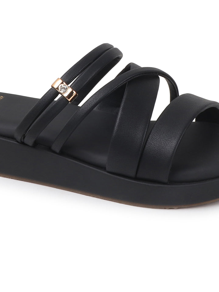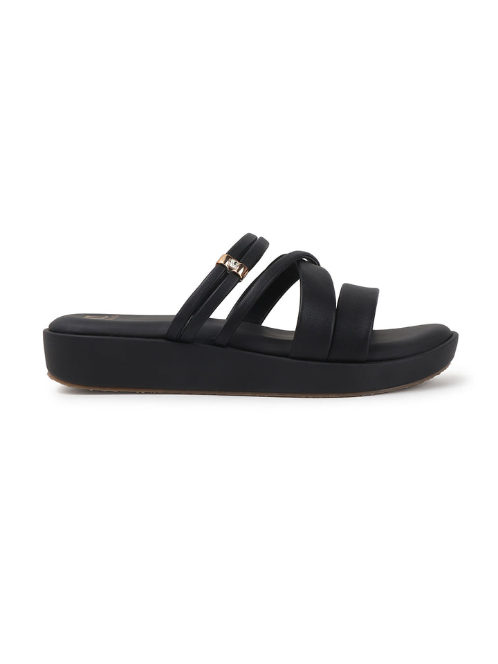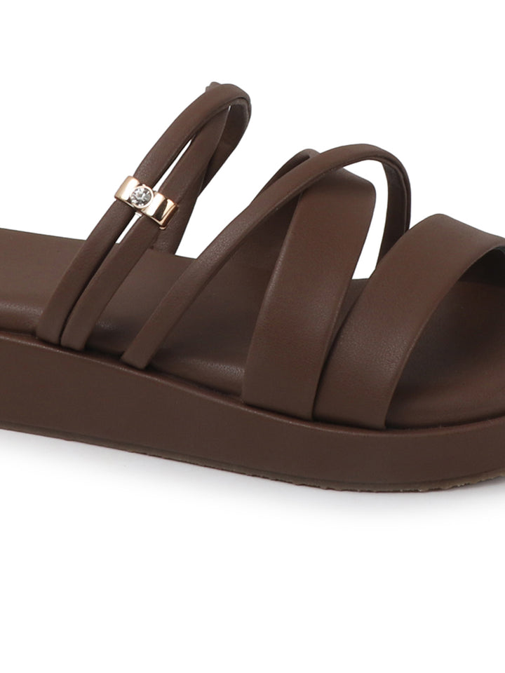 Women's Multi-Strap Platform Sandals with Metallic Detail