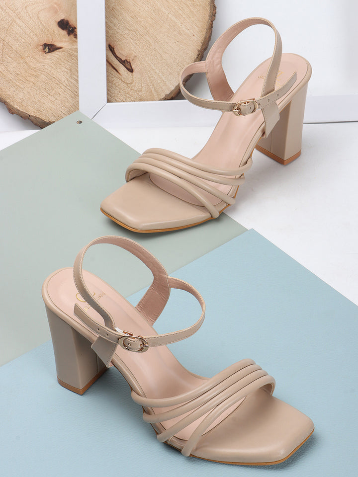 Women's Multi-Strap Square Toe Block Heel Sandals