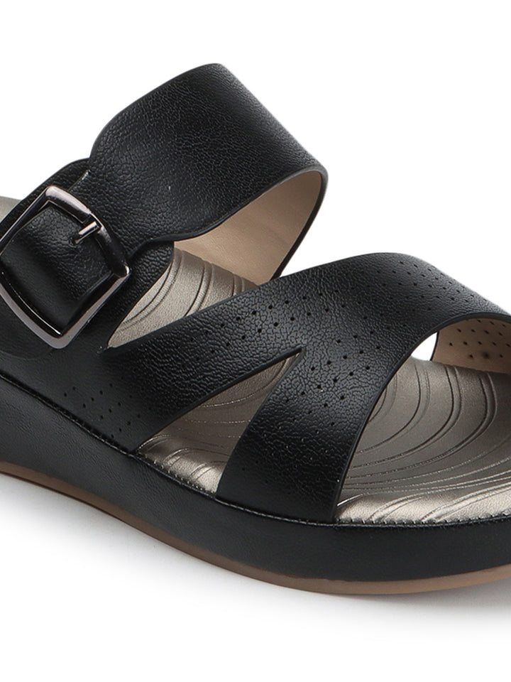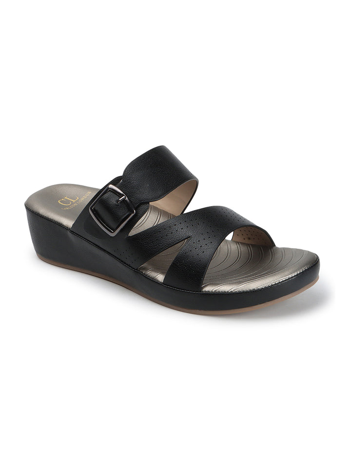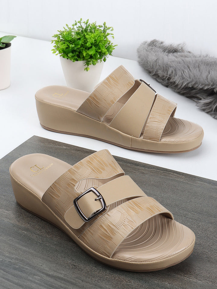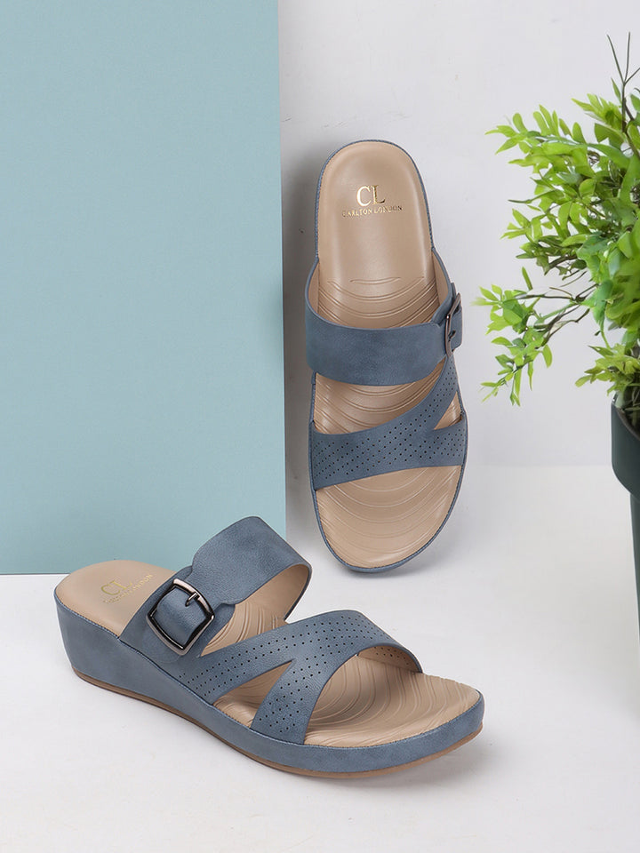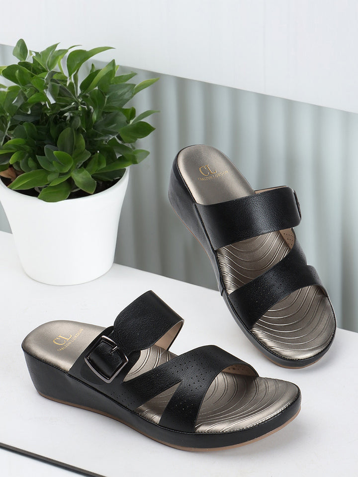 Carlton London Women's Multy Strap Wedge Sandals with Buckle