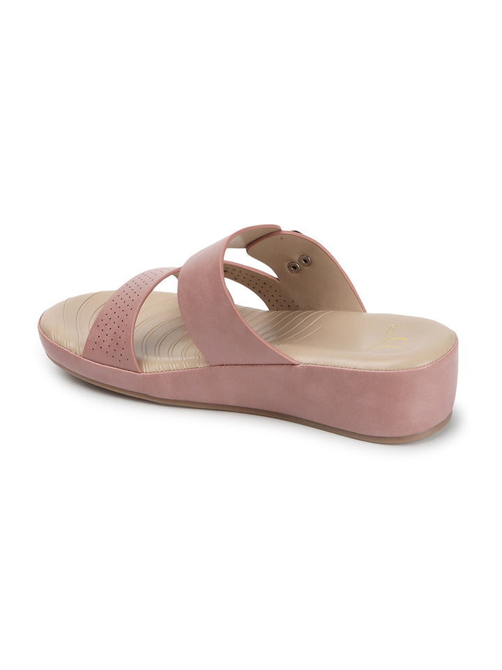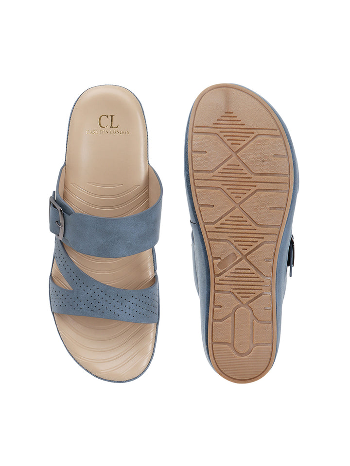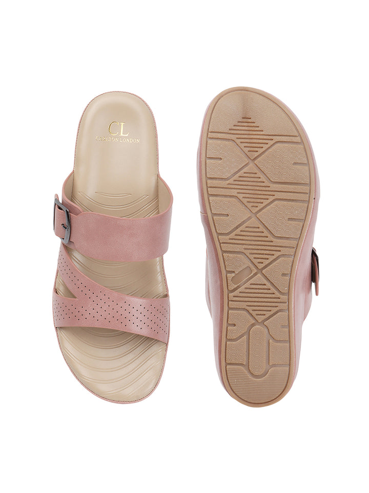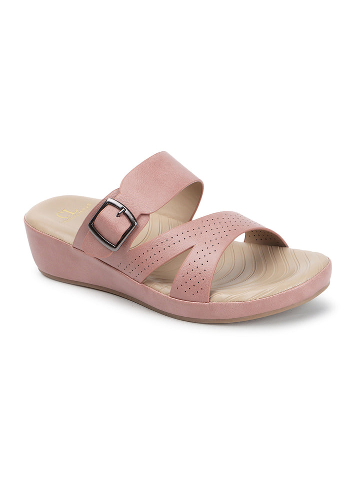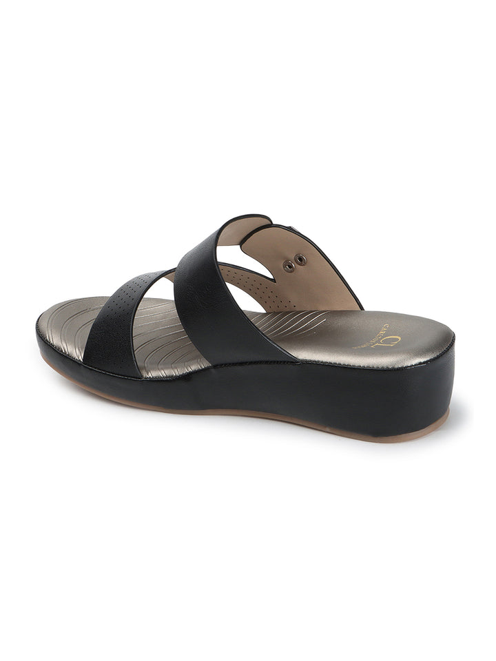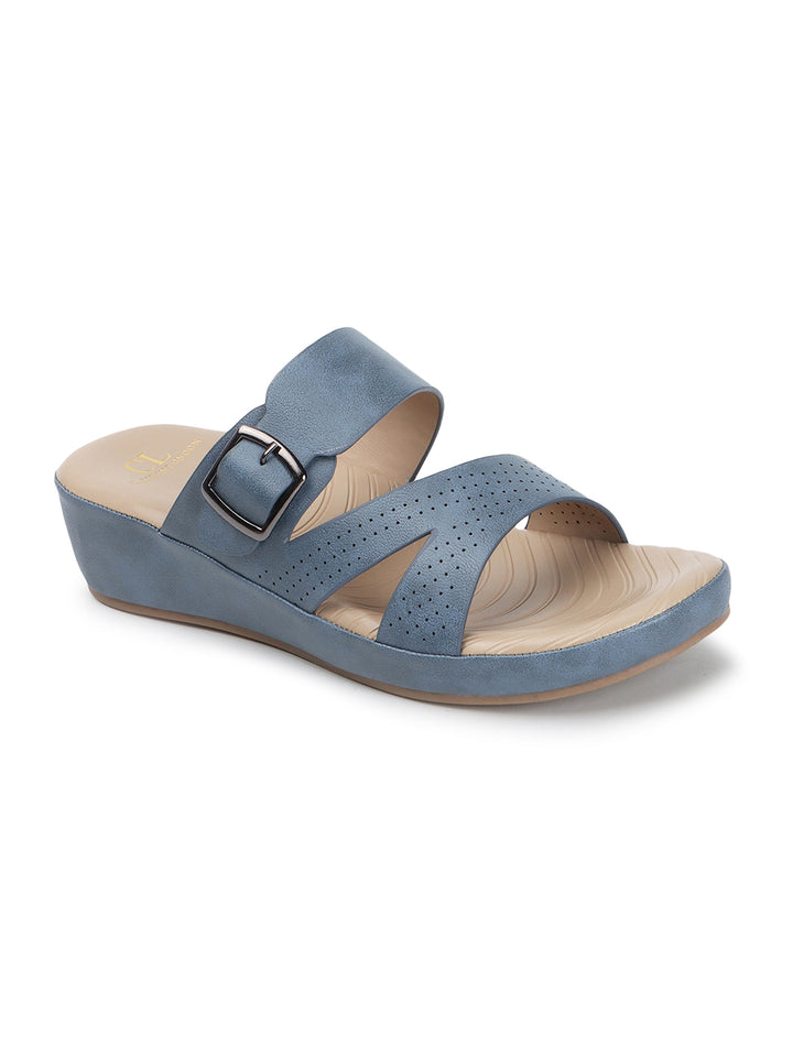 Carlton London Women's Multy Strap Wedge Sandals with Buckle