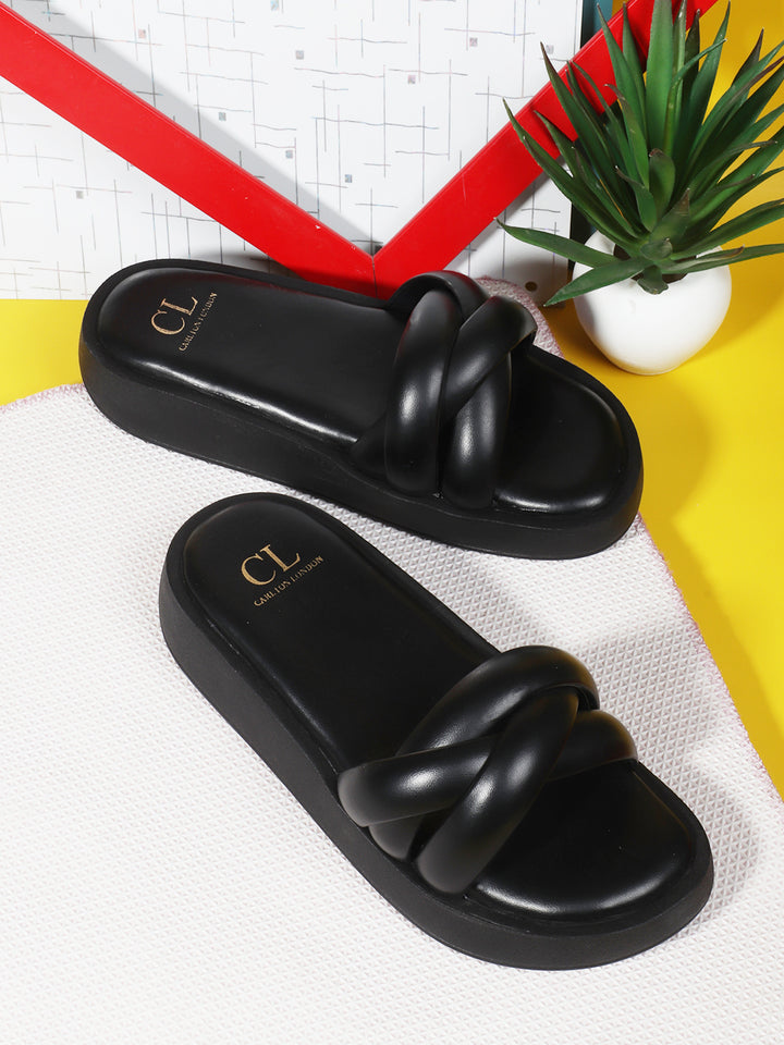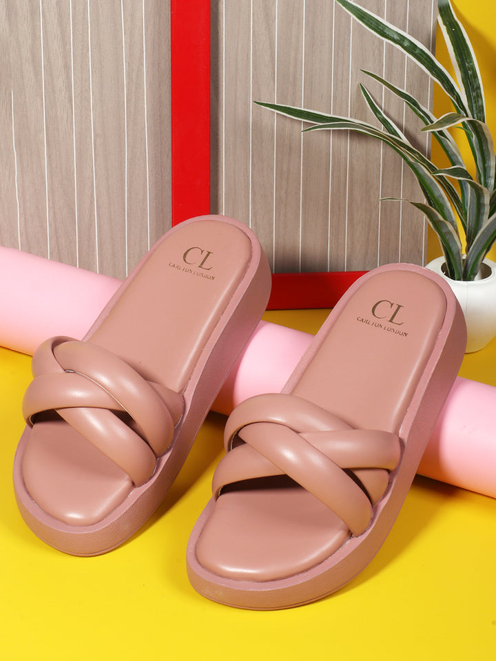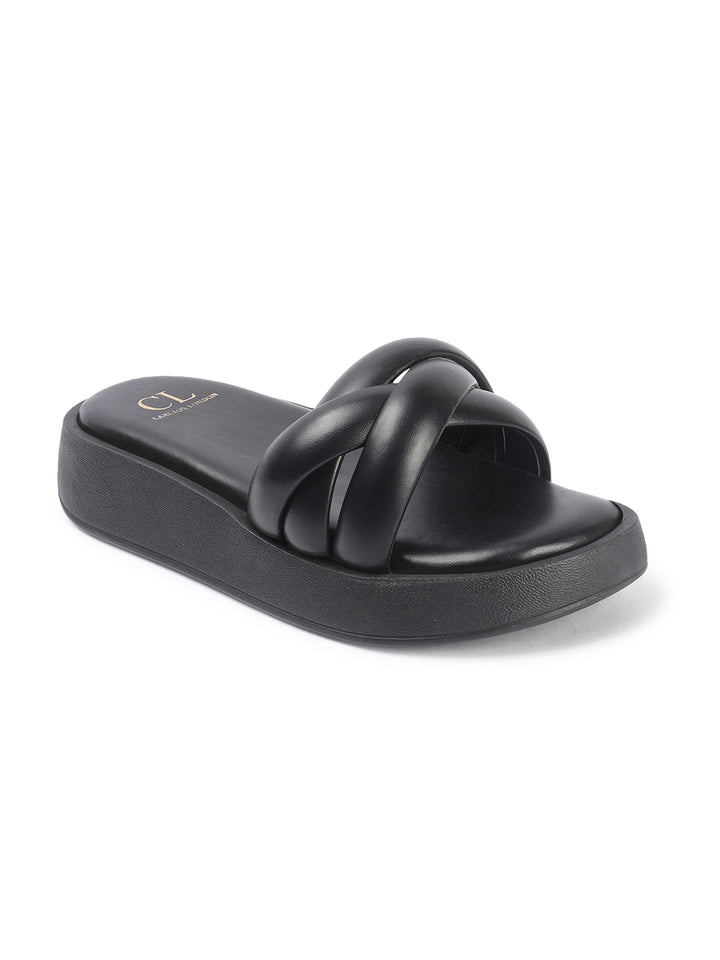 Carlton London Women's Padded Crisscross Platform Slide Sandals