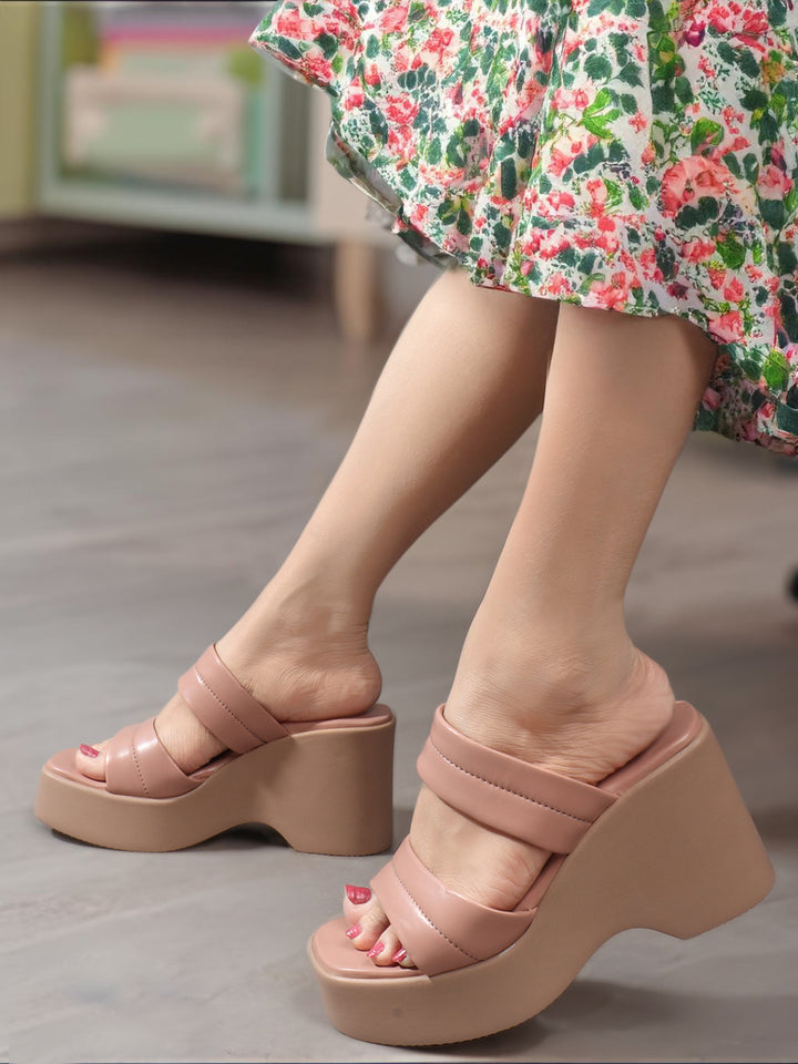 Carlton London Women's Party Wedged Heel Slip-On Sandals