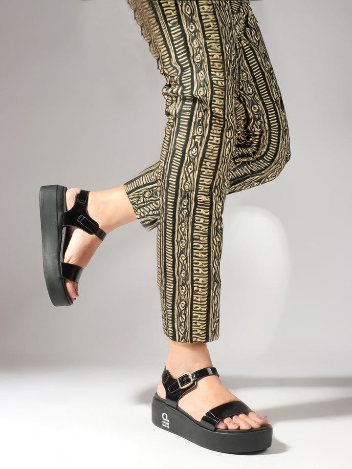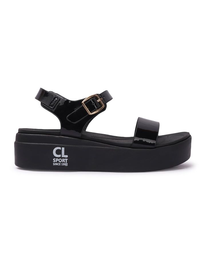 Carlton London Women's Patent Flatform Ankle Strap Sandals