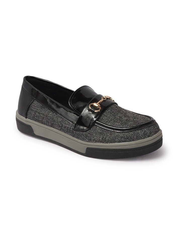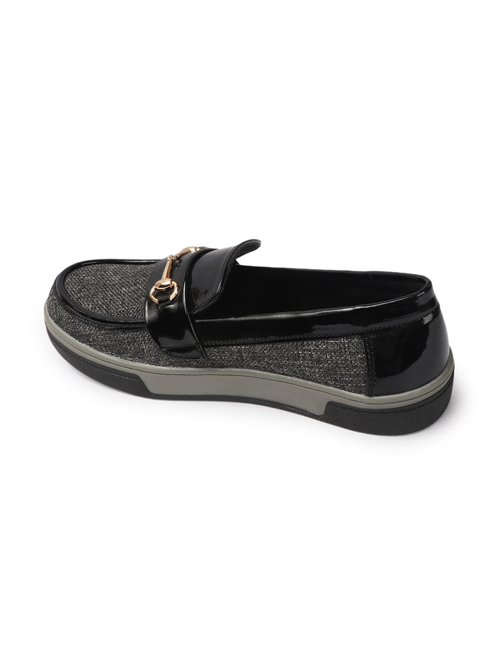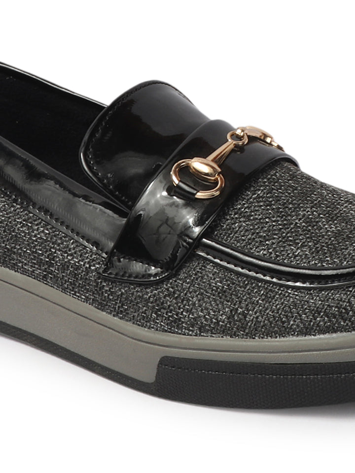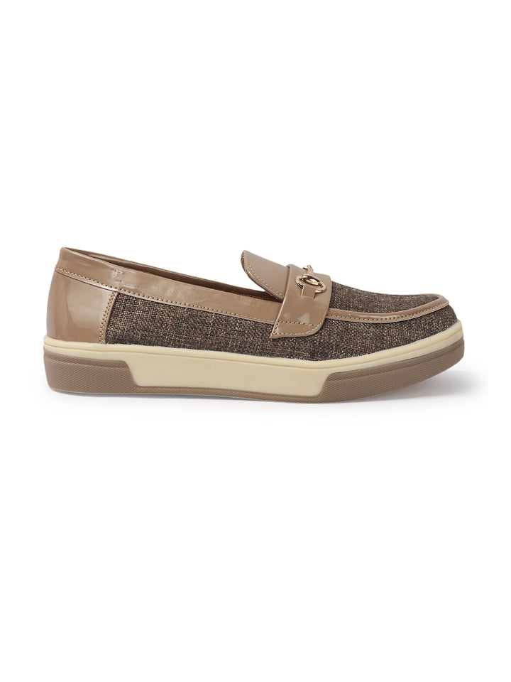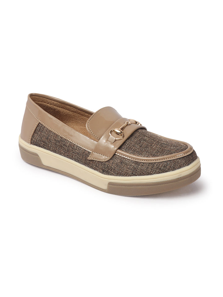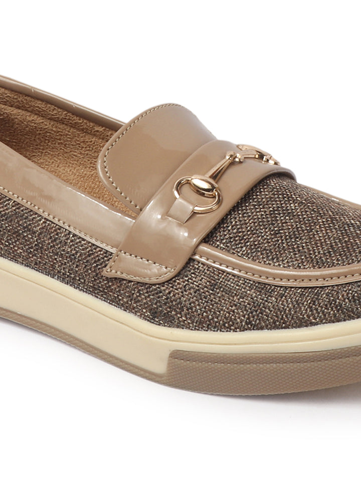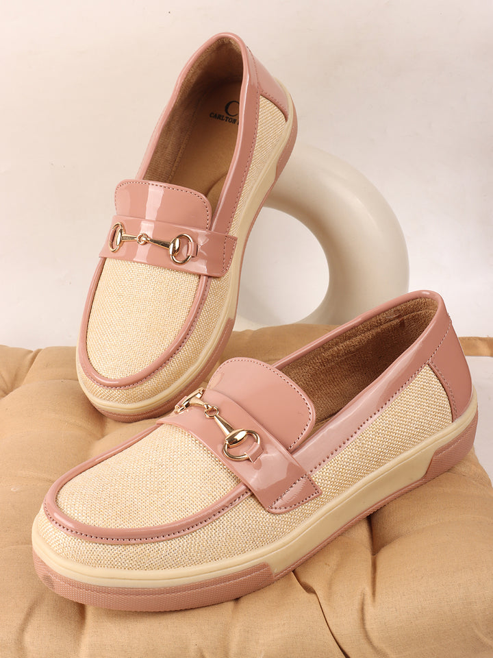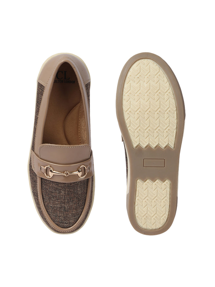 Carlton London Women's Patterned Slip-On Loafers with Buckle Detail
