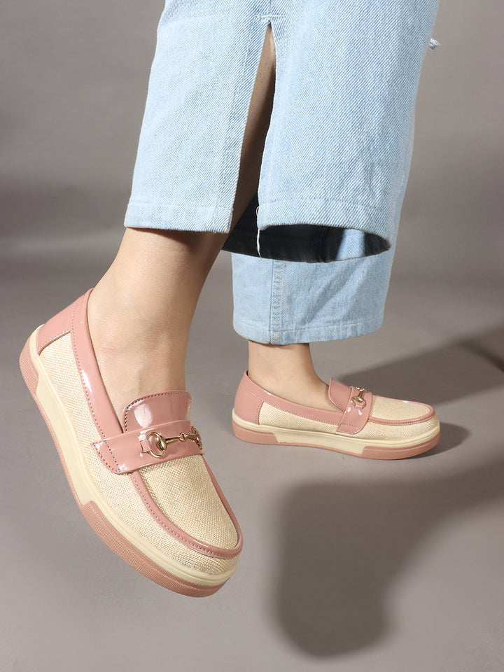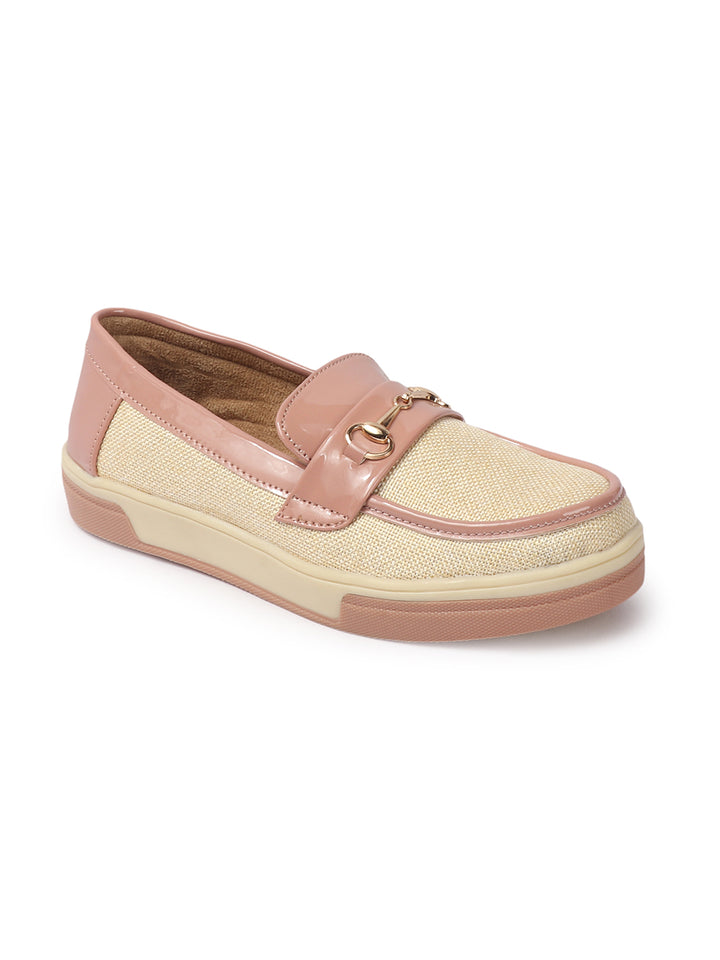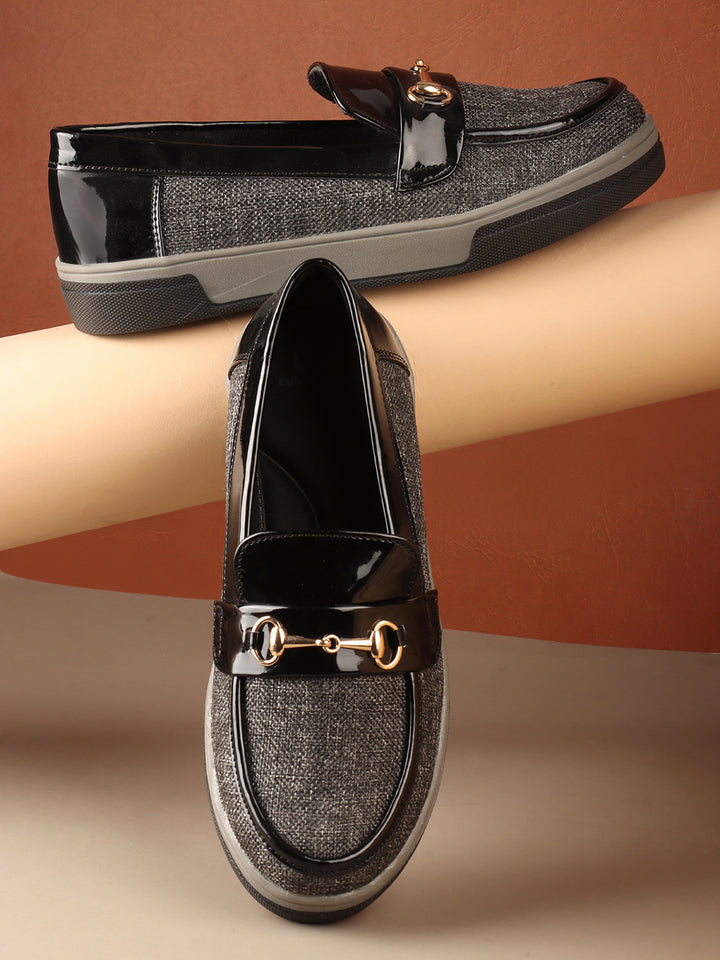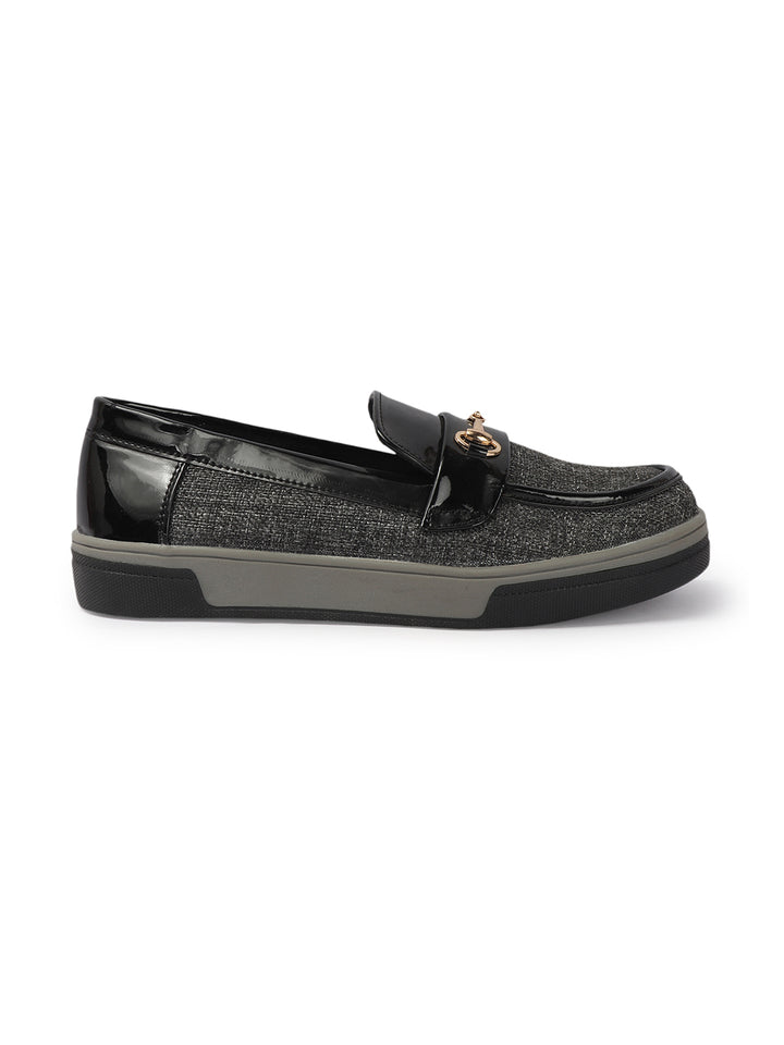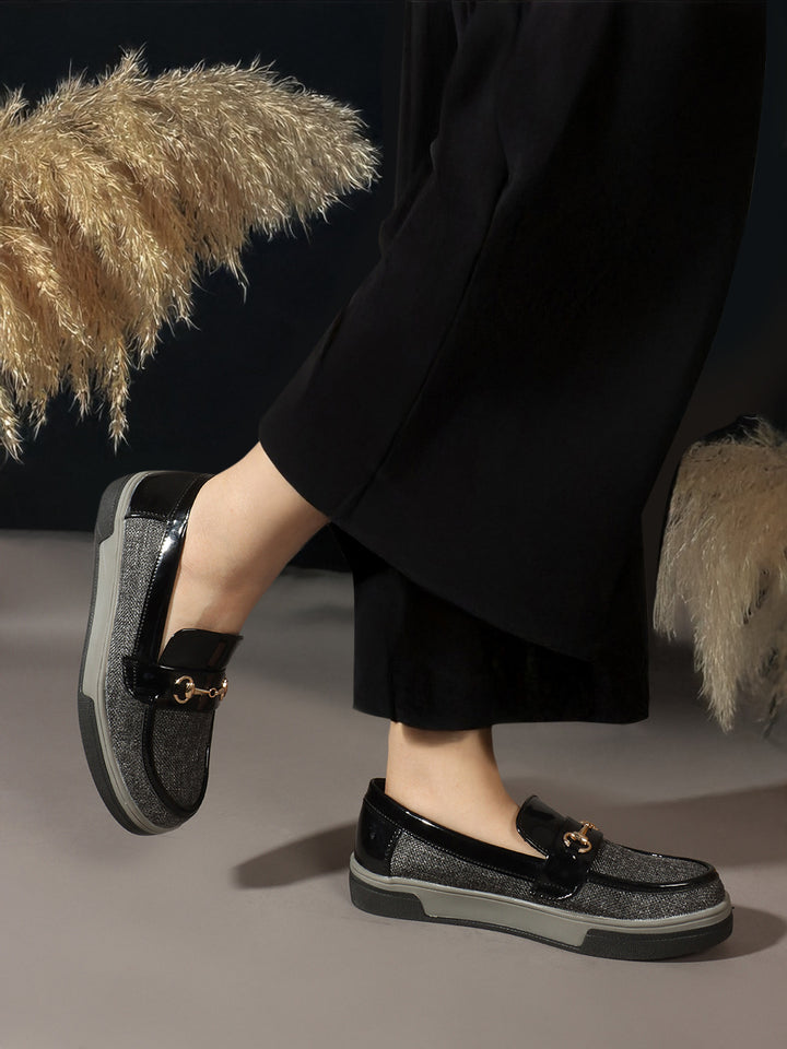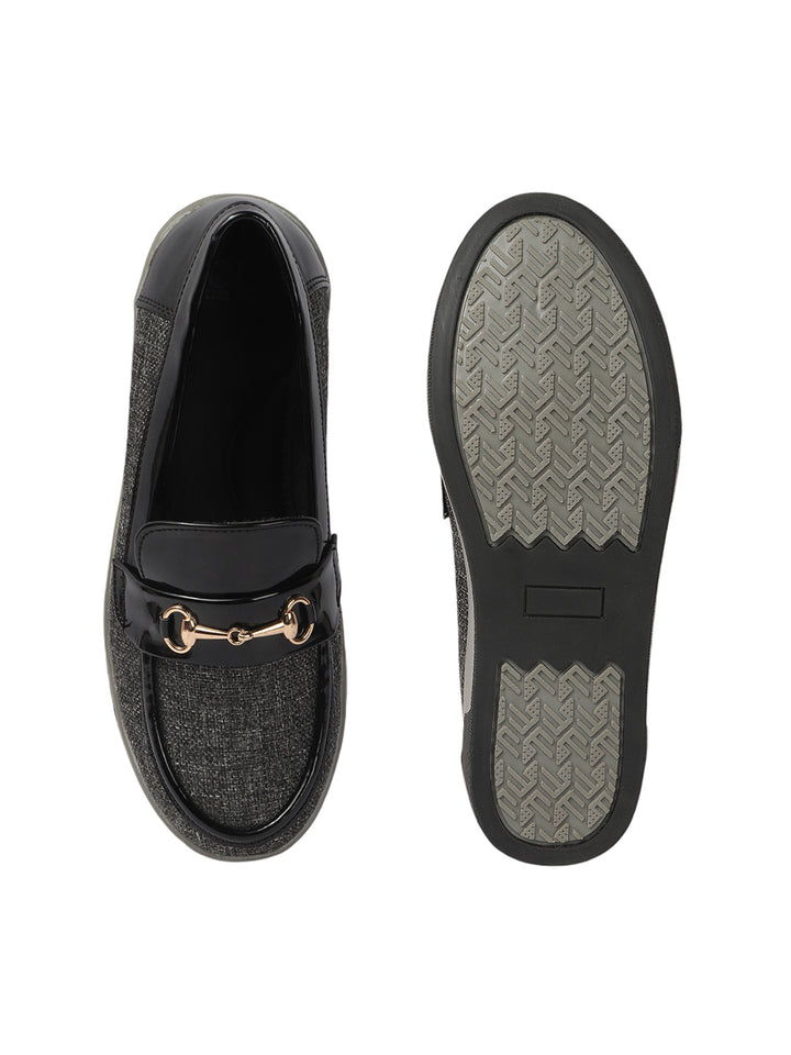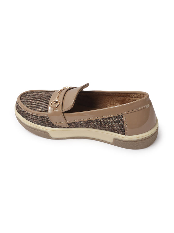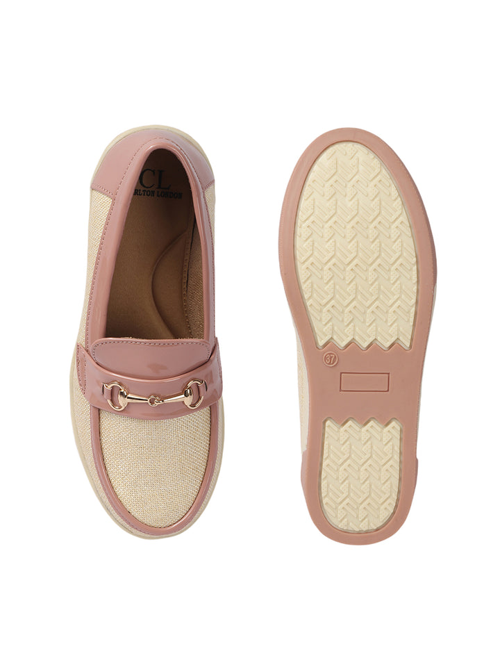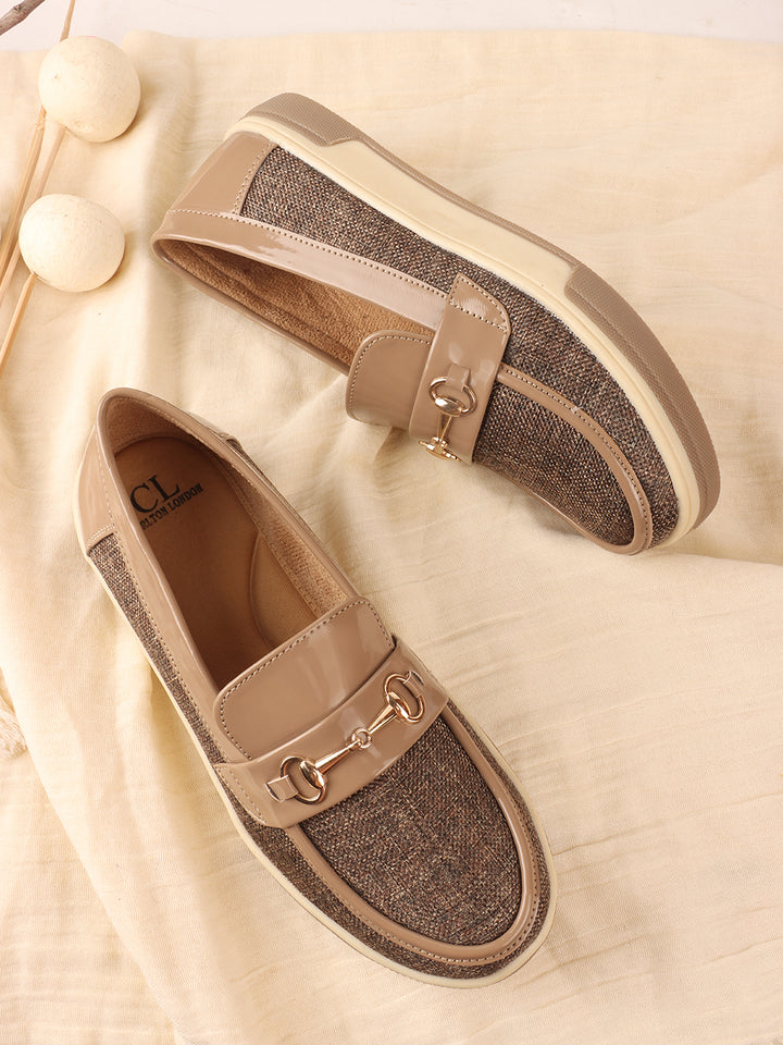 Carlton London Women's Patterned Slip-On Loafers with Buckle Detail