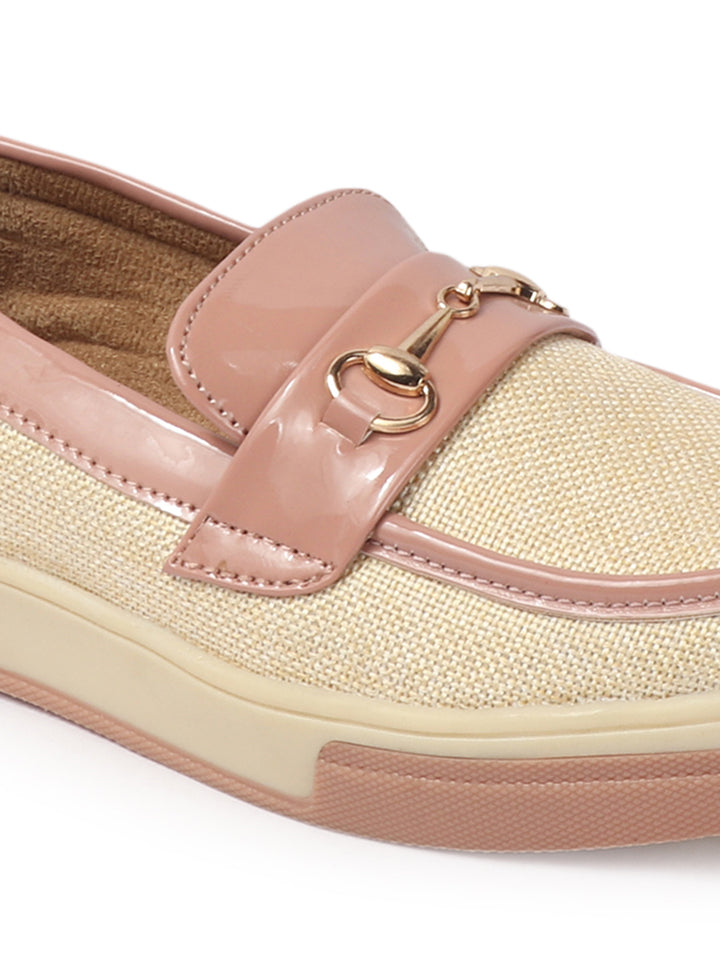 Women's Patterned Slip-On Loafers with Buckle Detail