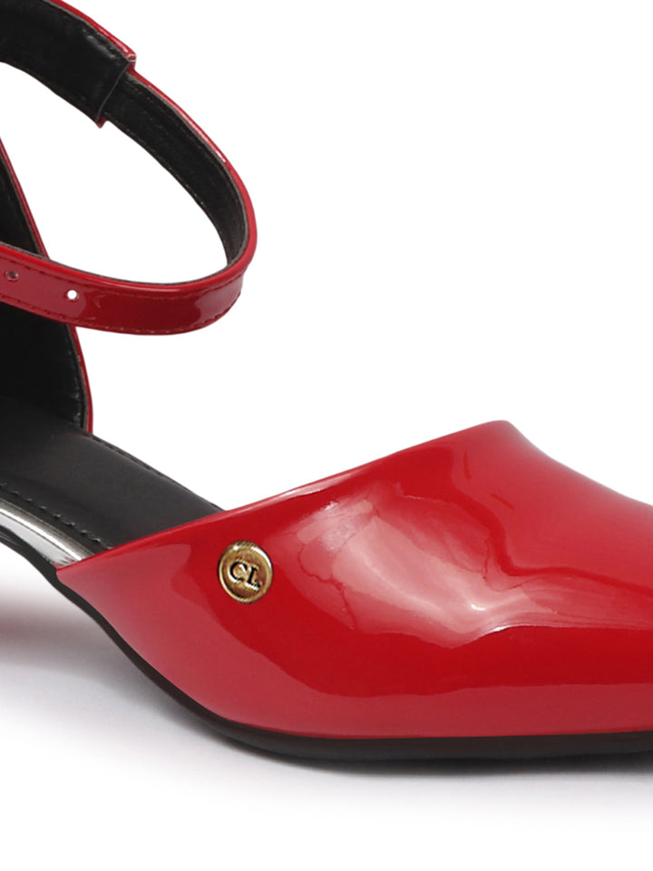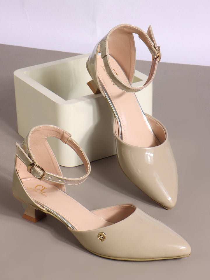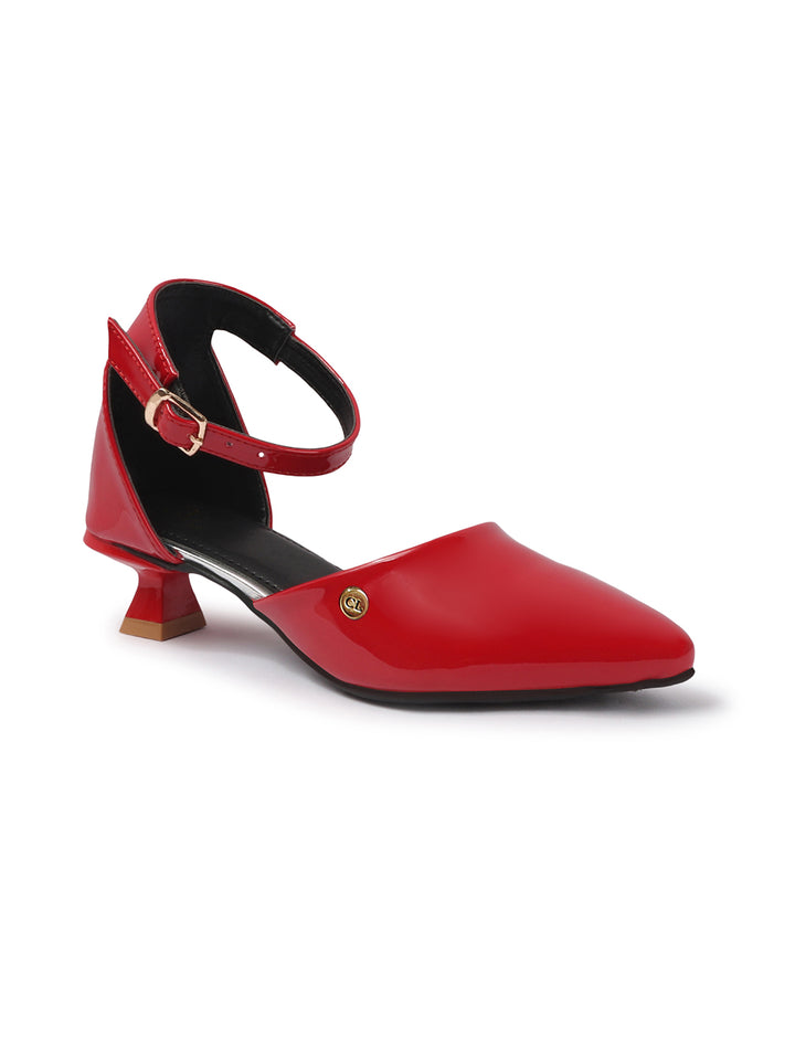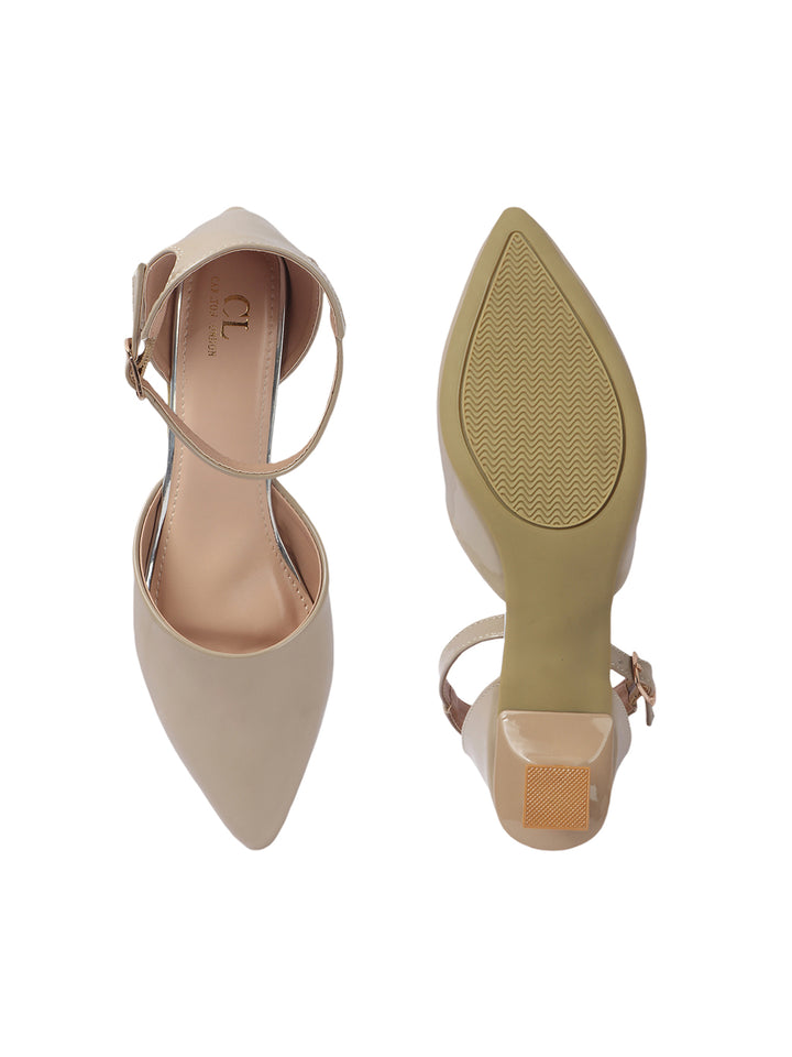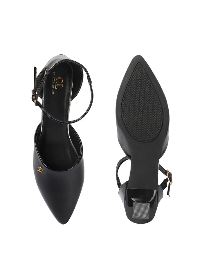 Women's Pointed Toe Ankle Strap Calf Heel Pumps