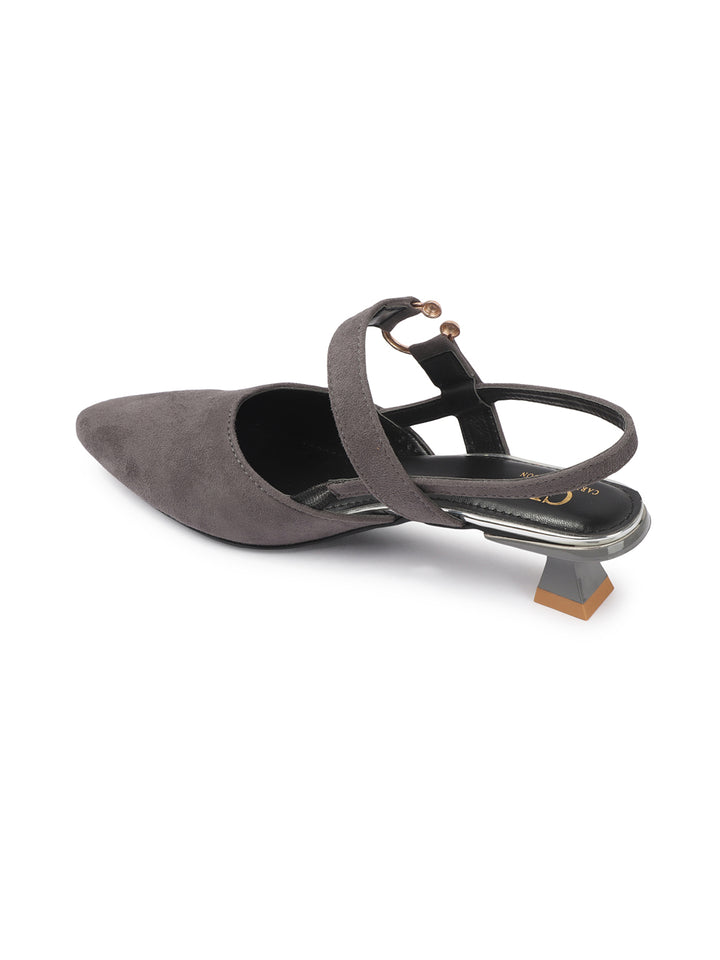 Women's Pointed Toe Ankle Strap Pumps with Decorative Buckle