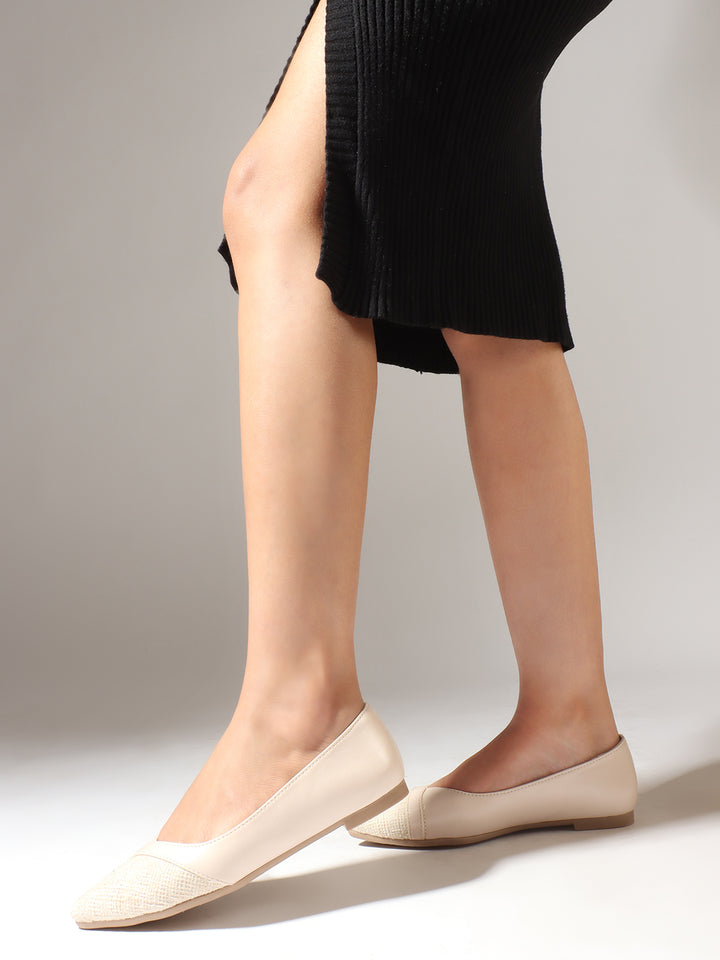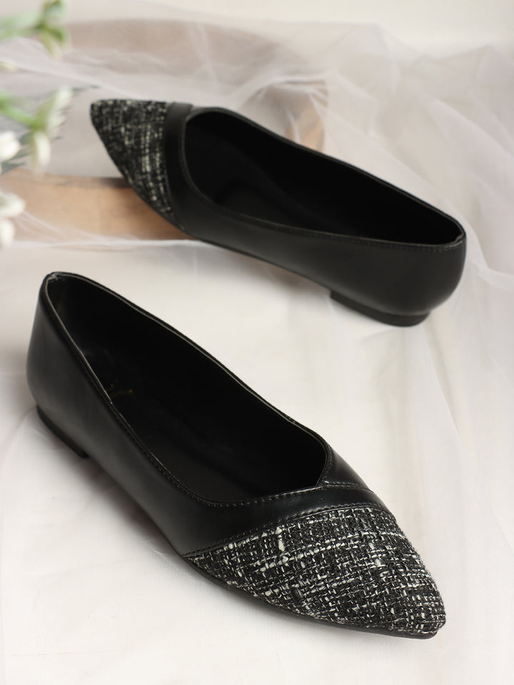 Women's Pointed Toe Ballerina Flats with Textured Detail