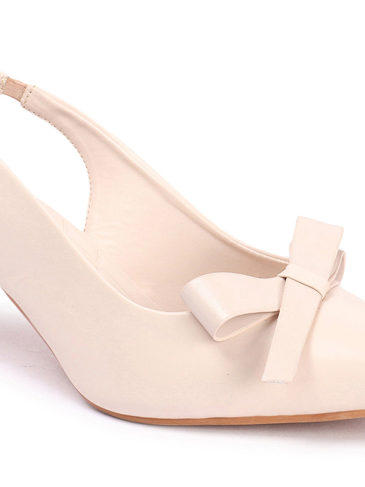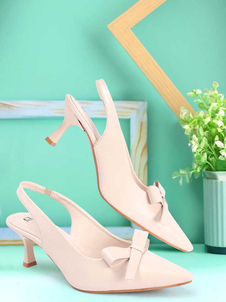 Women's Pointed Toe Bow Slingback Kitten Heel Sandal