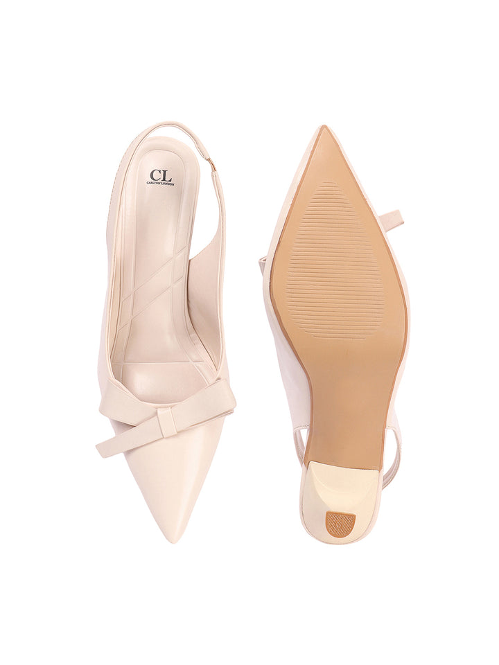 Carlton London Women's Pointed Toe Bow Slingback Kitten Heel Sandal