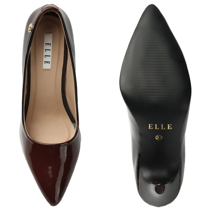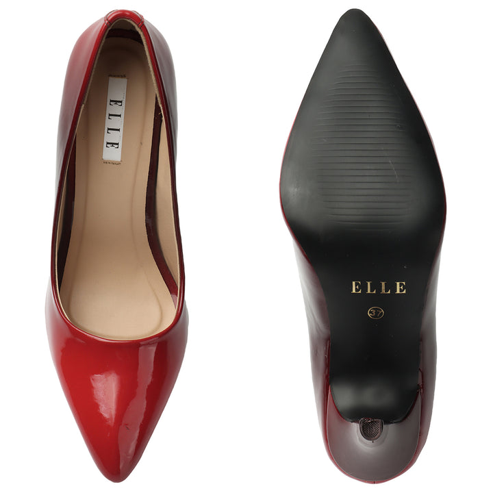 ELLE Women's Pointed Toe Glossy Pumps with Stiletto Heel