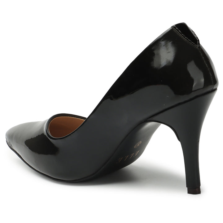 Add a touch of timeless elegance and high-shine glamour to your wardrobe with these sophisticated pumps. The classic pointed-toe silhouette creates a flattering and refined line, while the slender stiletto heel provides a graceful lift. The high-gloss finish gives these shoes a polished, sophisticated look that's perfect for both professional and evening wear. A subtle, decorative metallic accent on the heel adds a touch of understated elegance. Perfect for making a statement at the office or for completing a glamorous evening look, these pumps are a versatile and essential addition to your collection.