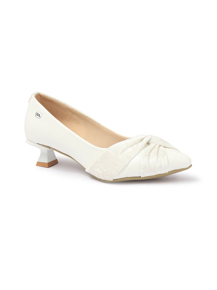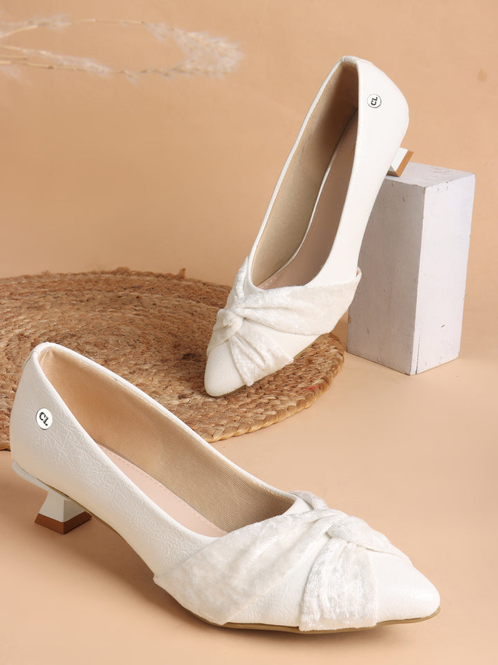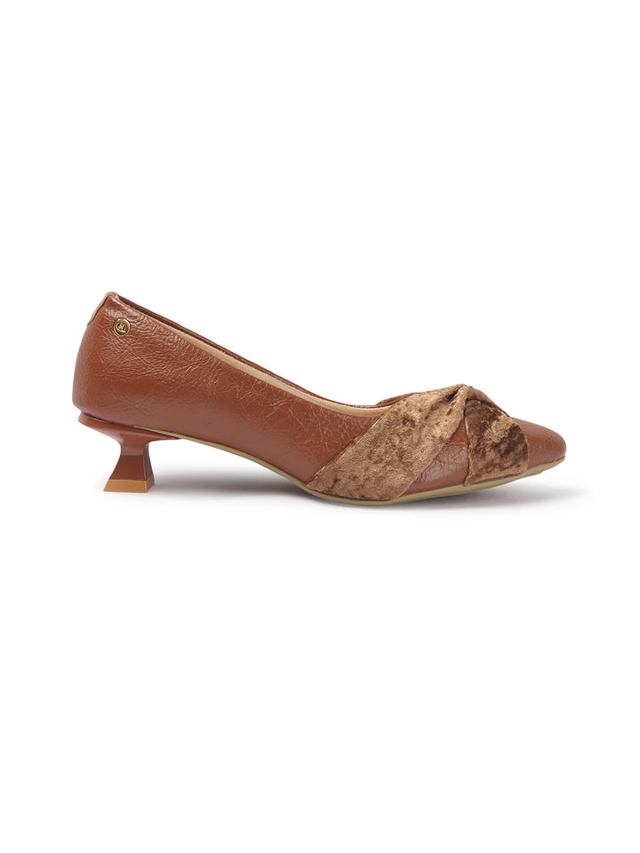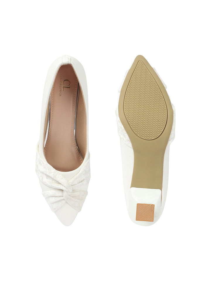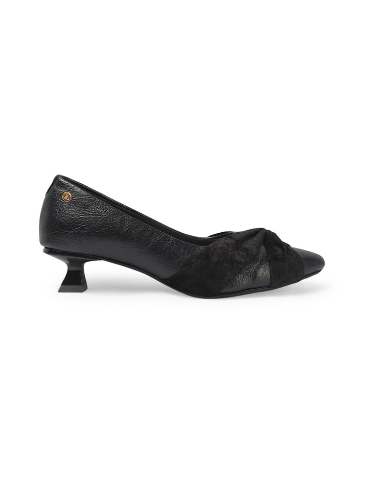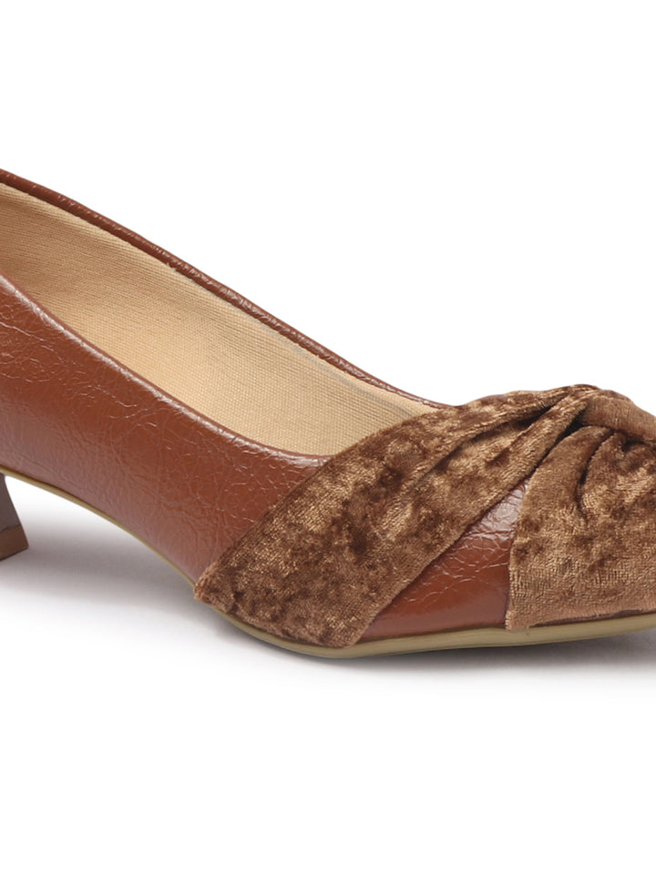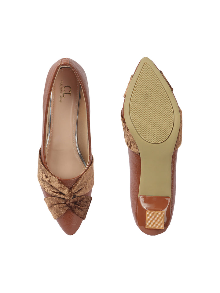 Women's Pointed Toe Heeled Pumps with Velvet Knot