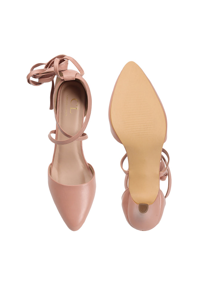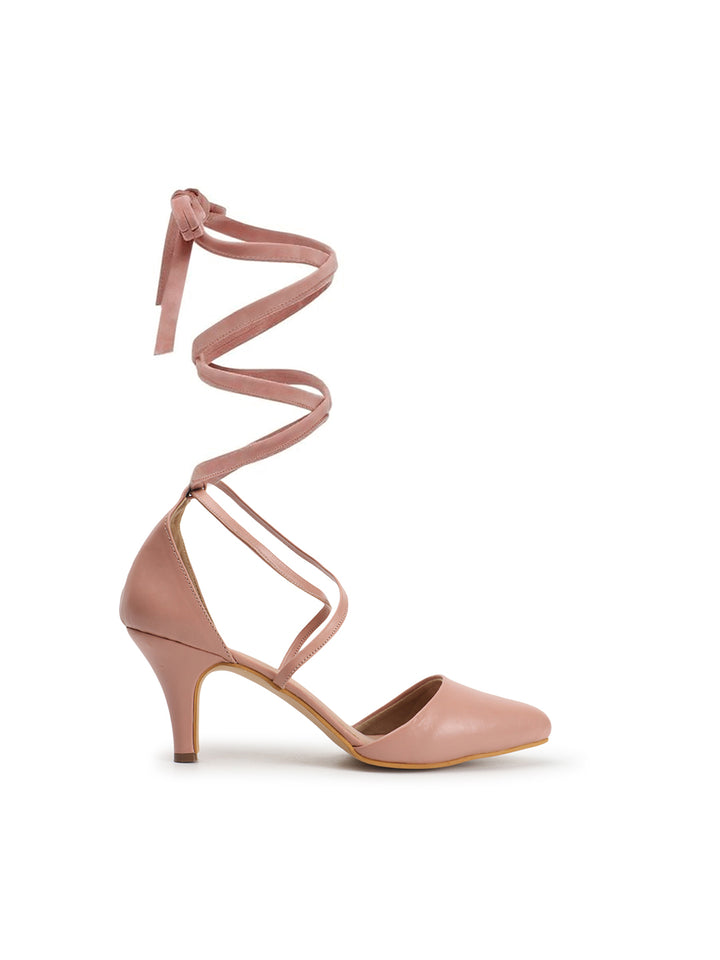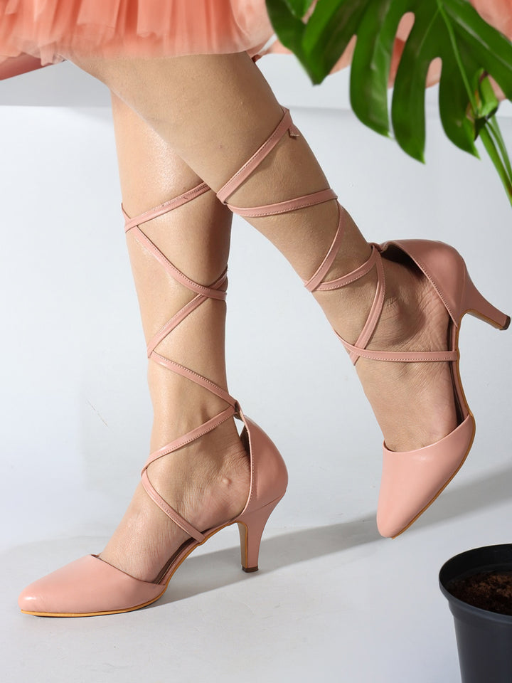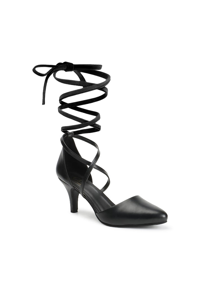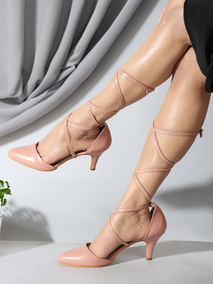 Women's Pointed Toe Lace-Up Kitten Heel Pumps