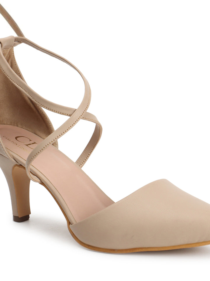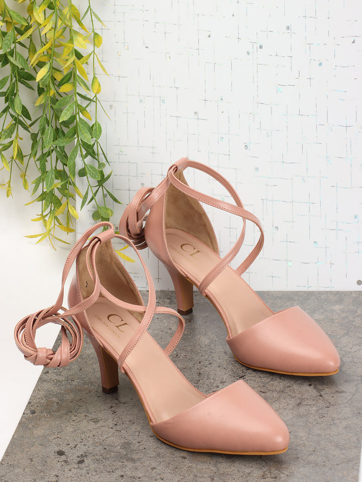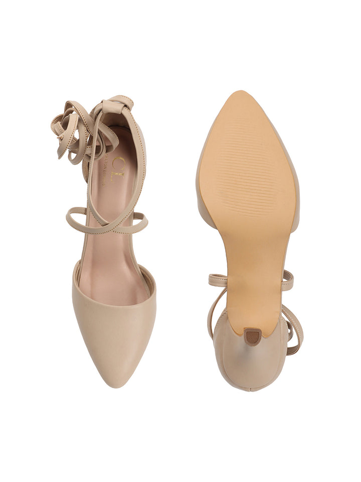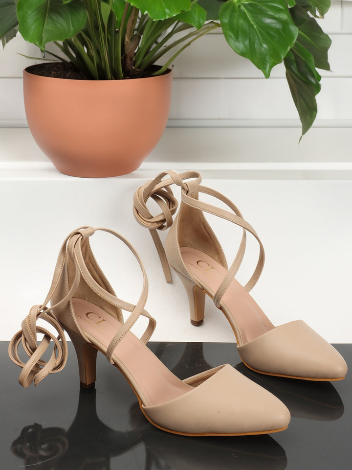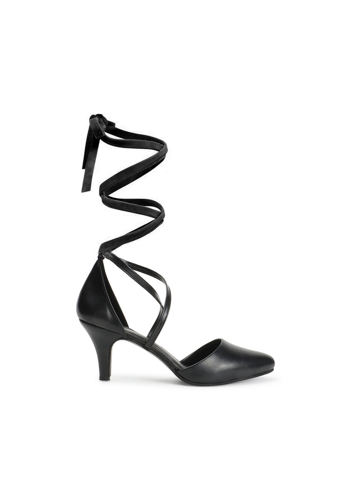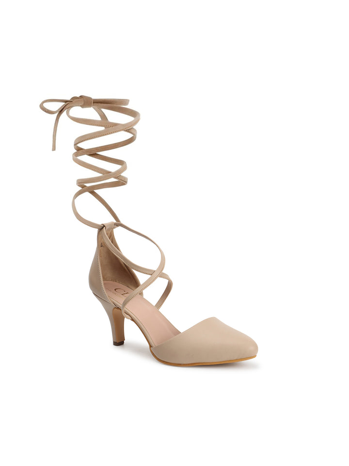 Women's Pointed Toe Lace-Up Kitten Heel Pumps