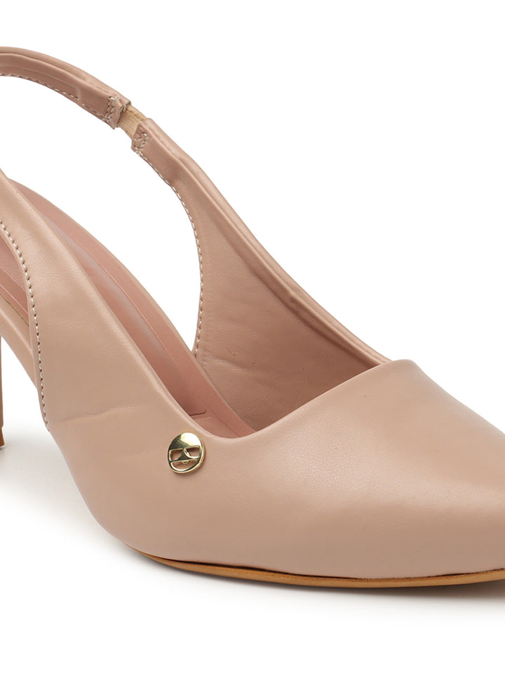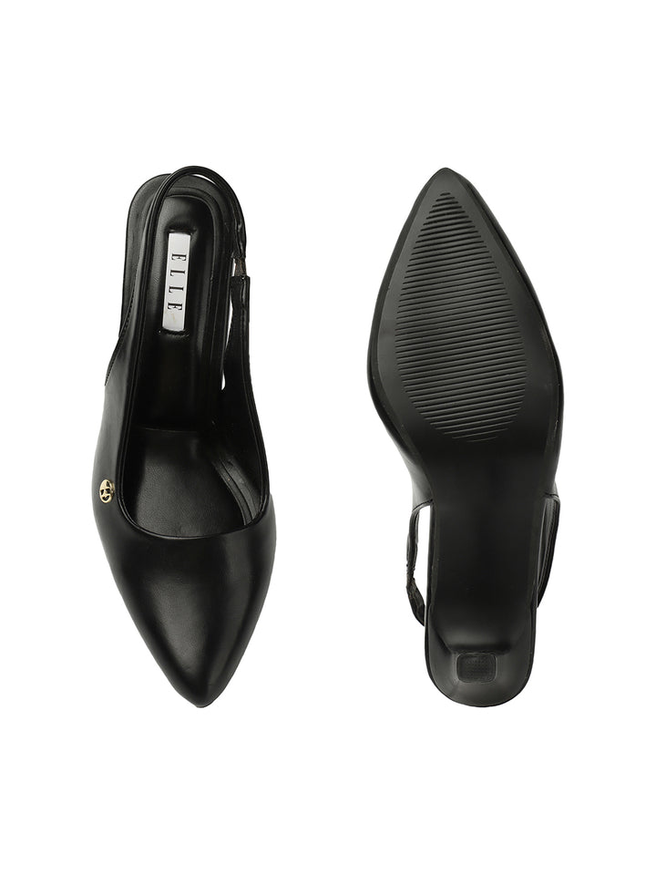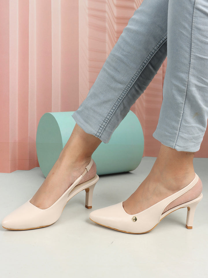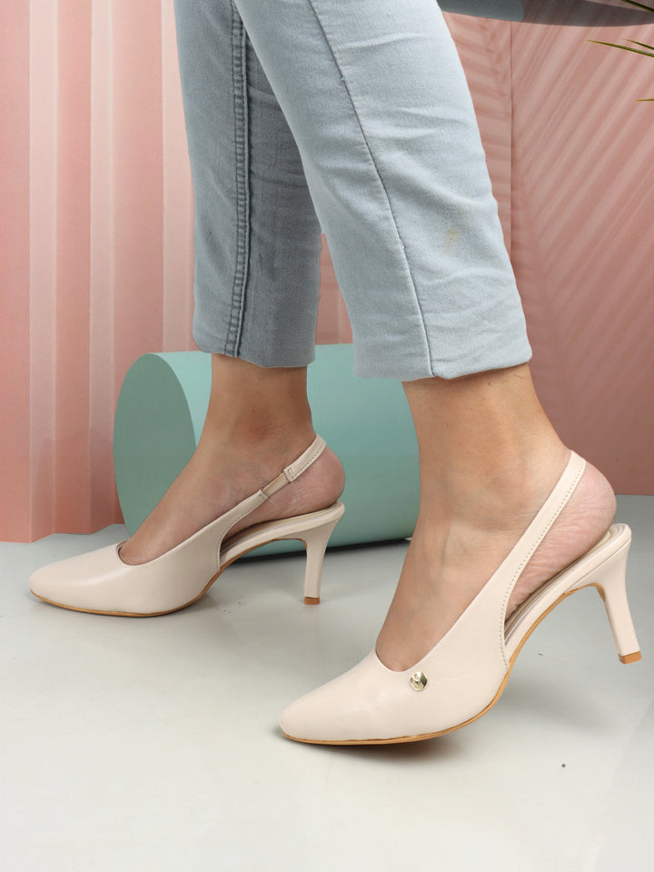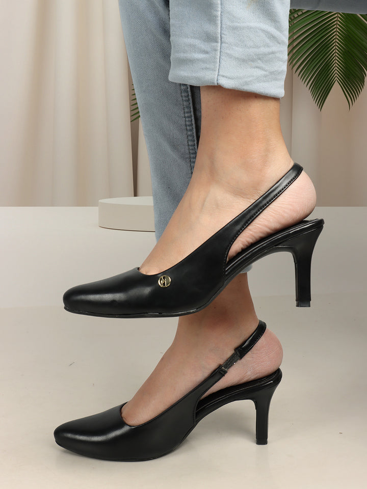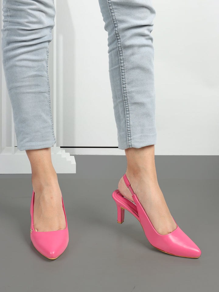 Step into timeless elegance with these sophisticated pointed-toe heels. Crafted for both style and comfort, these pumps feature a sleek pointed toe and a slender heel that provides a graceful lift. The adjustable slingback strap ensures a secure and personalized fit, while a cushioned insole offers all-day wearability. A subtle metallic embellishment on the vamp adds a touch of modern flair to this classic design. Perfect for a day at the office, a night out, or a special occasion, these versatile heels will become a staple in your wardrobe.
