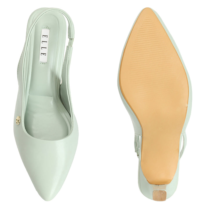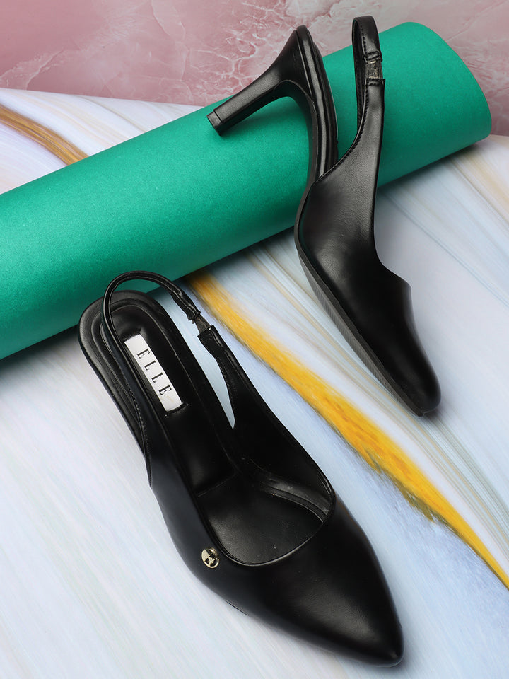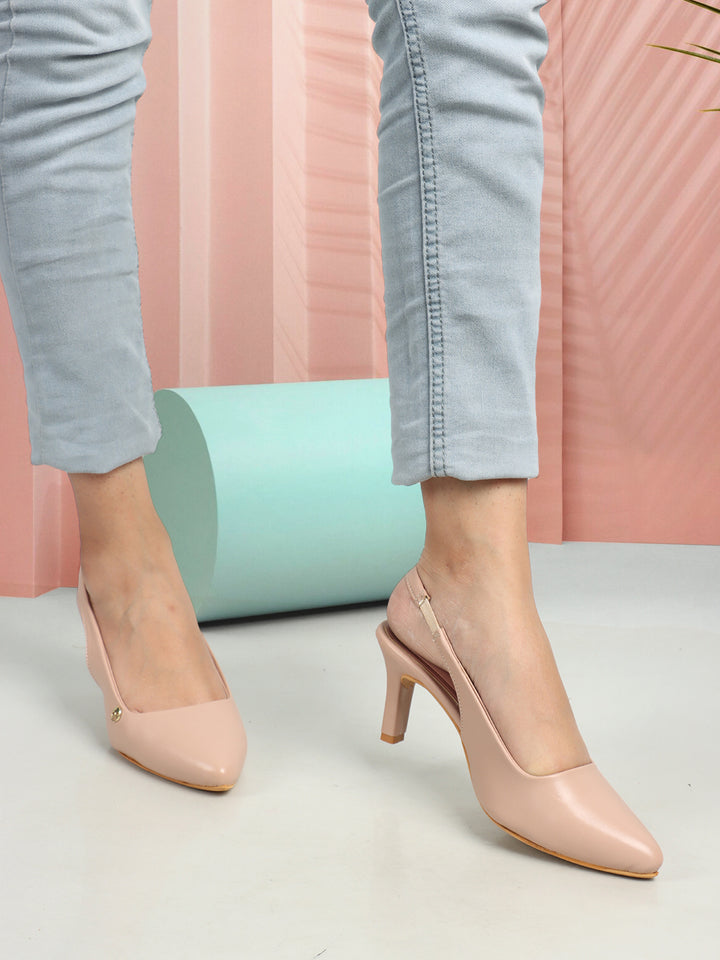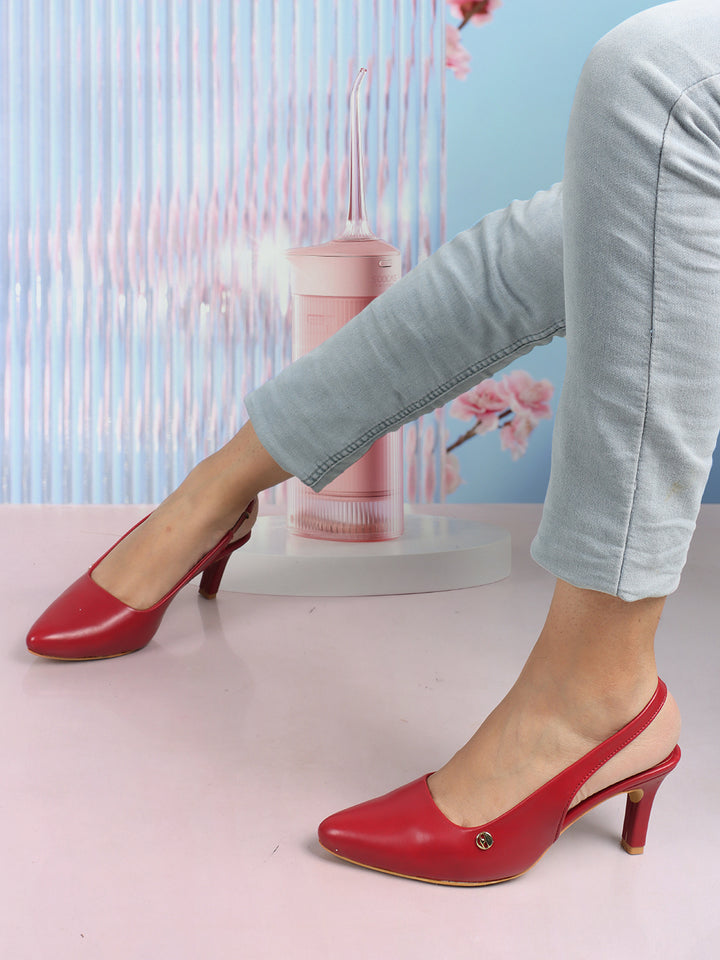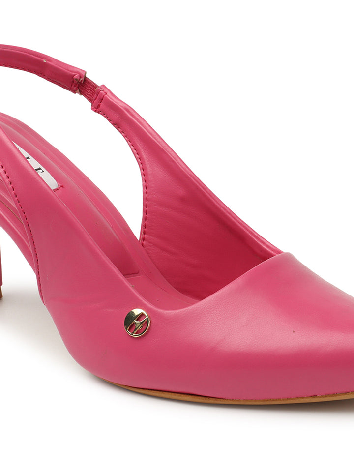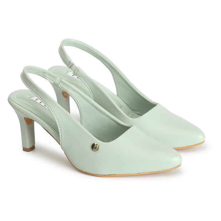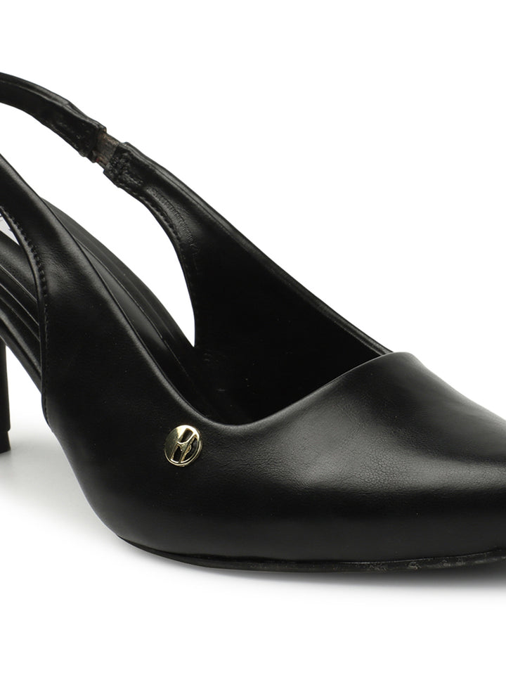 Step into timeless elegance with these sophisticated pointed-toe heels. Crafted for both style and comfort, these pumps feature a sleek pointed toe and a slender heel that provides a graceful lift. The adjustable slingback strap ensures a secure and personalized fit, while a cushioned insole offers all-day wearability. A subtle metallic embellishment on the vamp adds a touch of modern flair to this classic design. Perfect for a day at the office, a night out, or a special occasion, these versatile heels will become a staple in your wardrobe.
