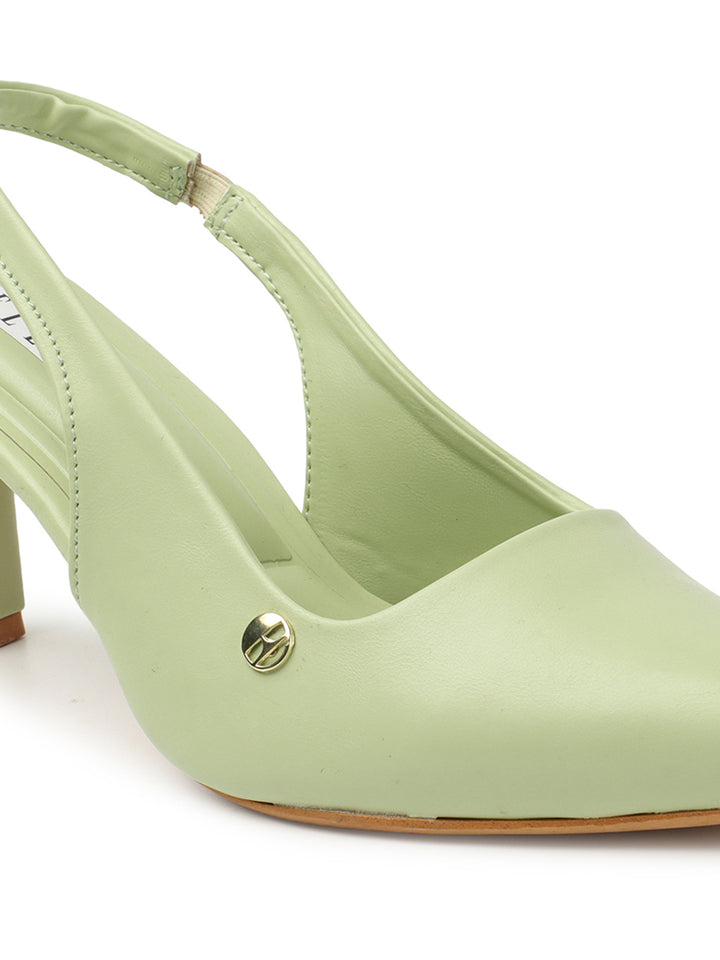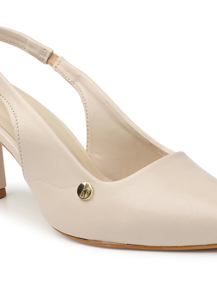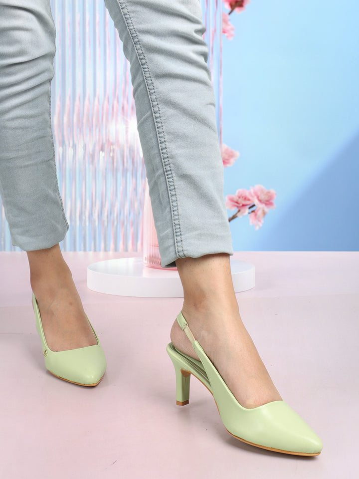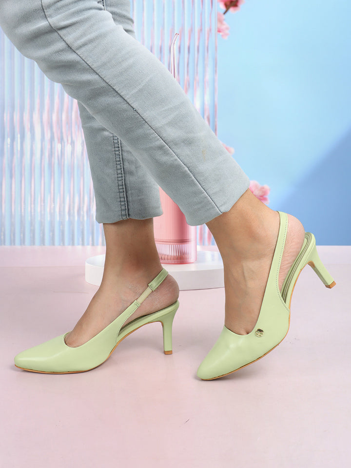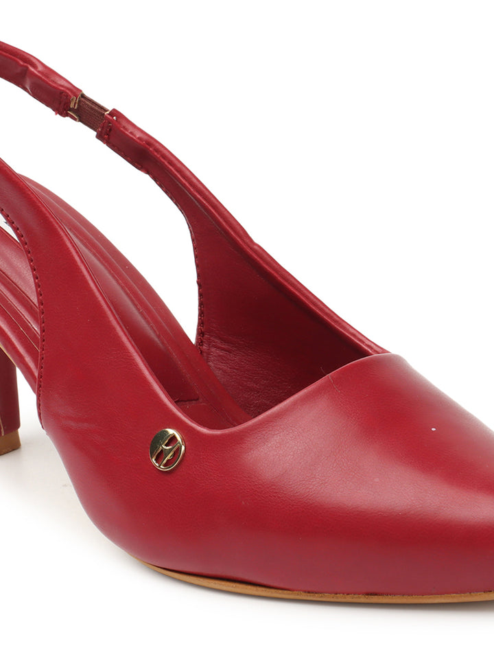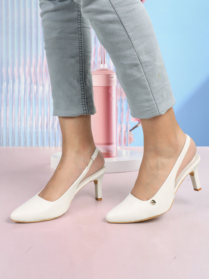 Step into timeless elegance with these sophisticated pointed-toe heels. Crafted for both style and comfort, these pumps feature a sleek pointed toe and a slender heel that provides a graceful lift. The adjustable slingback strap ensures a secure and personalized fit, while a cushioned insole offers all-day wearability. A subtle metallic embellishment on the vamp adds a touch of modern flair to this classic design. Perfect for a day at the office, a night out, or a special occasion, these versatile heels will become a staple in your wardrobe.