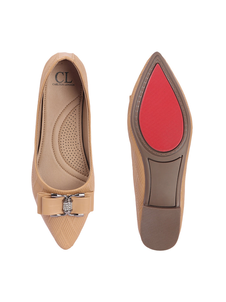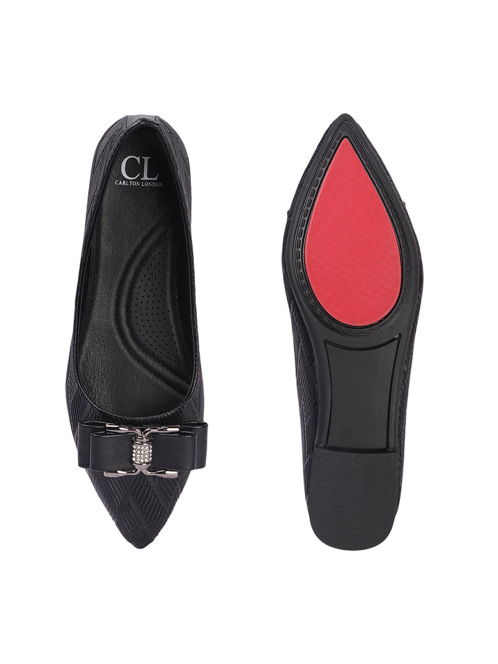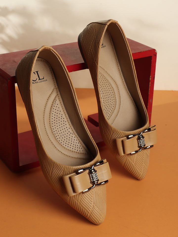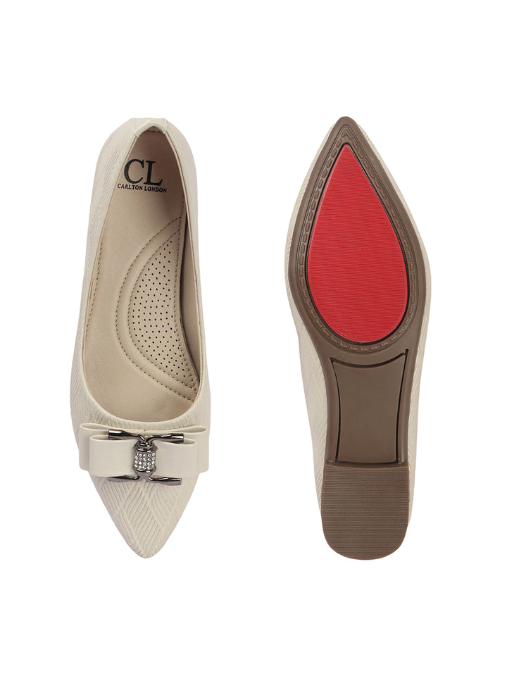 Carton London Women's Pointed Toe Textured Ballet Flats with Bows