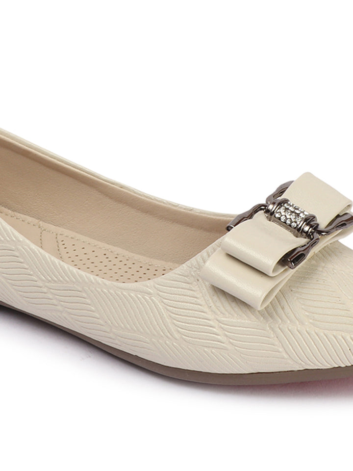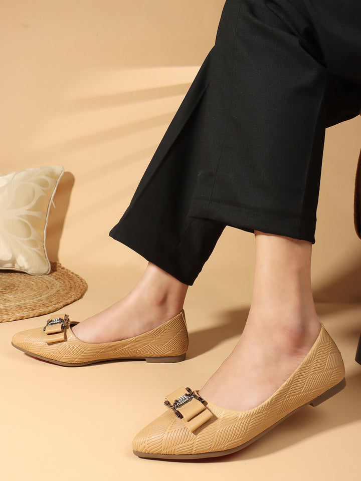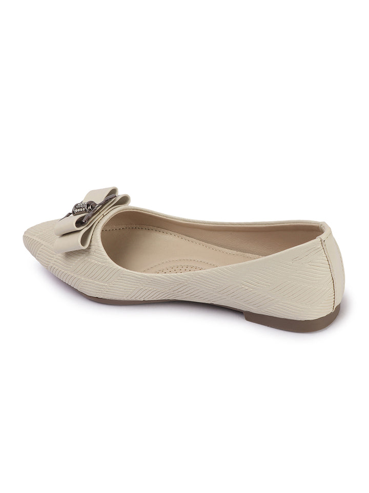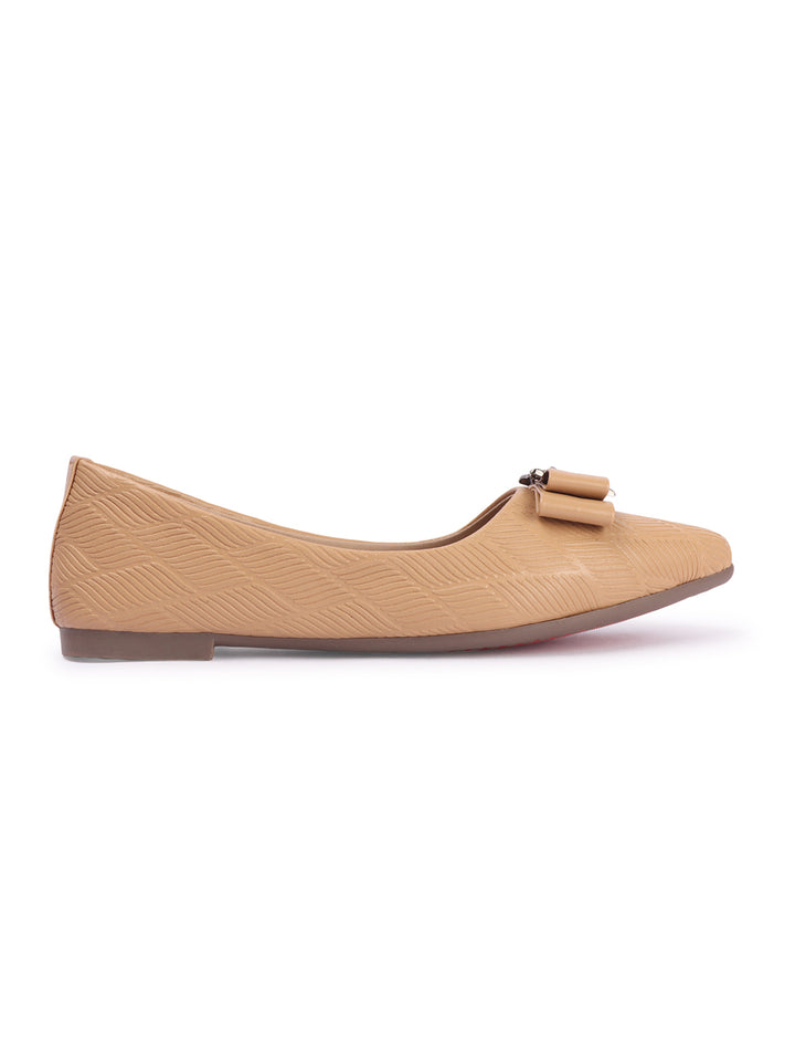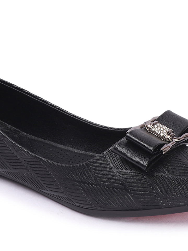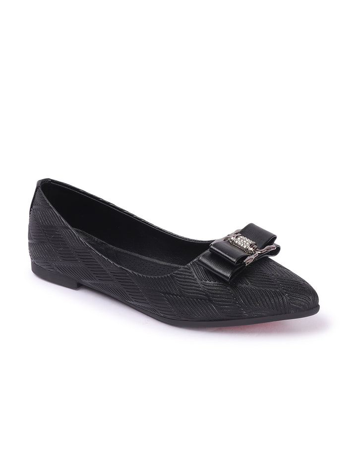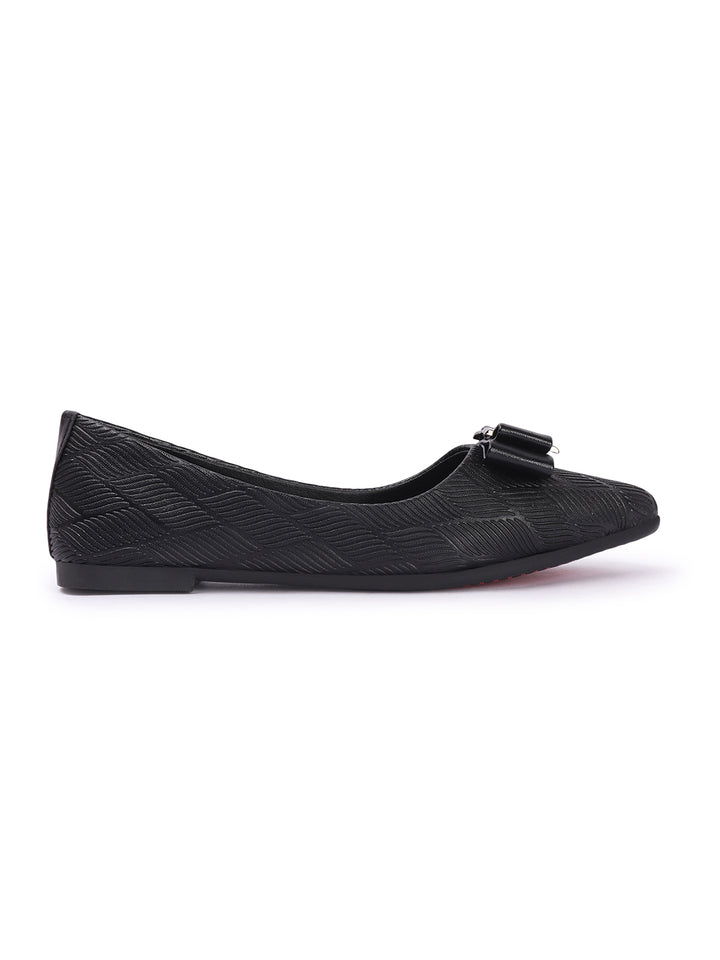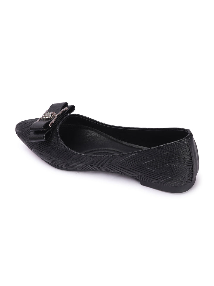 Women's Pointed Toe Textured Ballet Flats with Bows