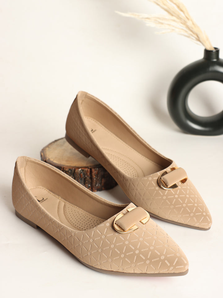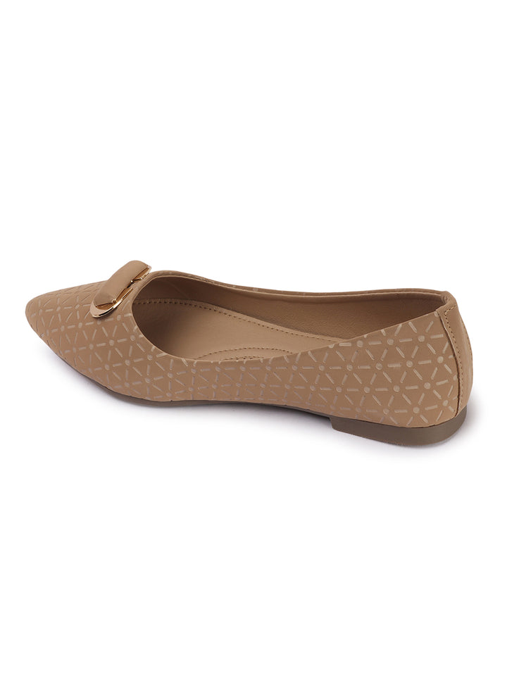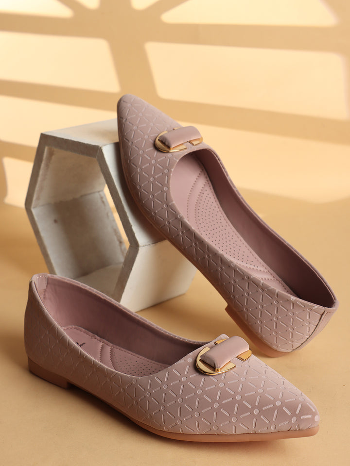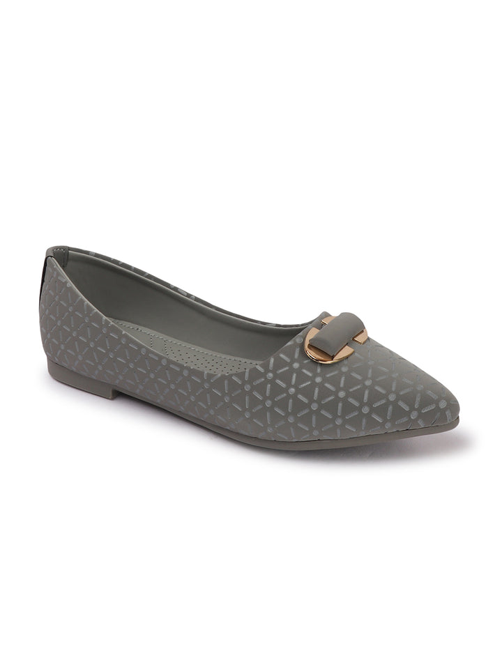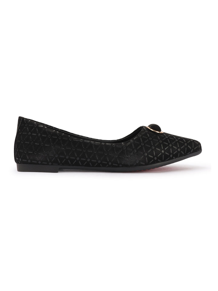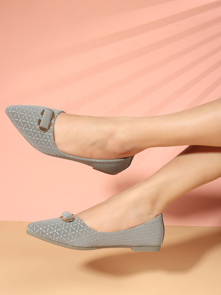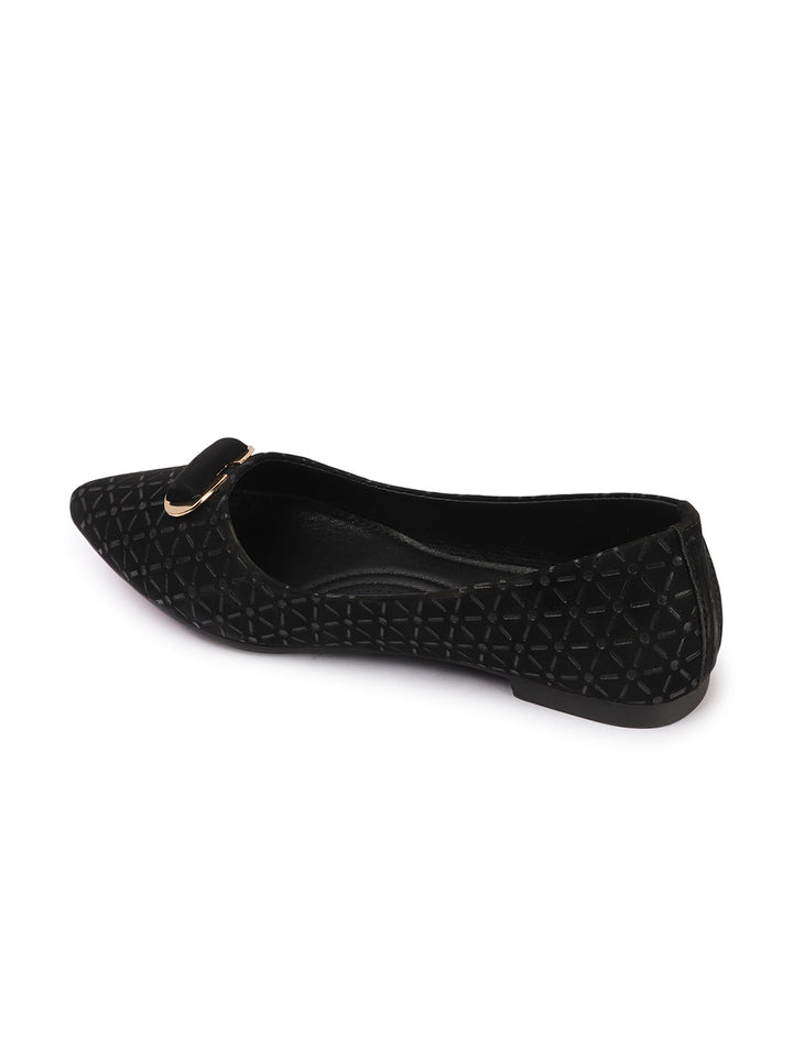 Women's Pointed Toe Textured Ballet Flats with Ornament