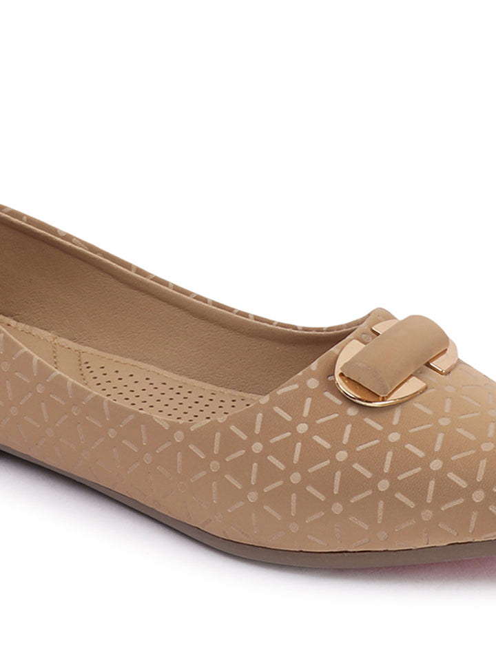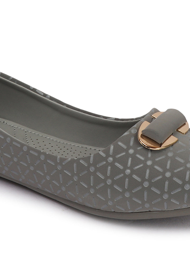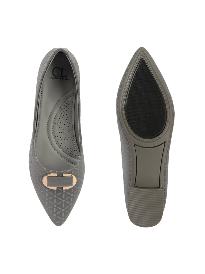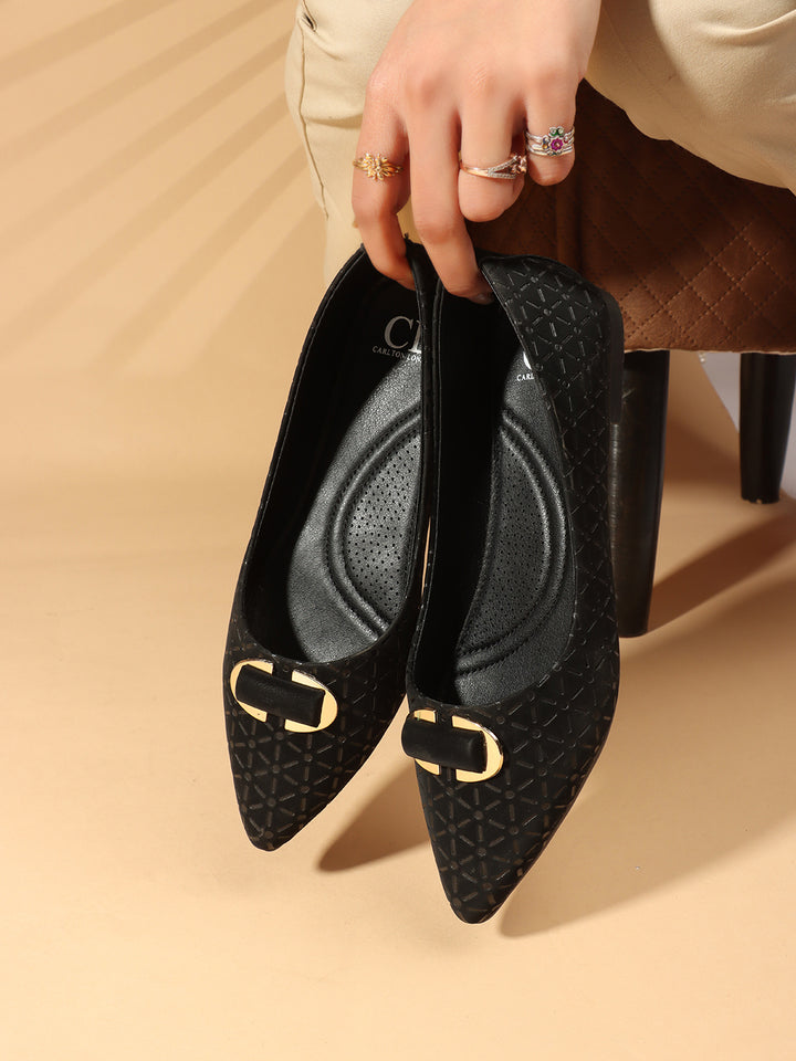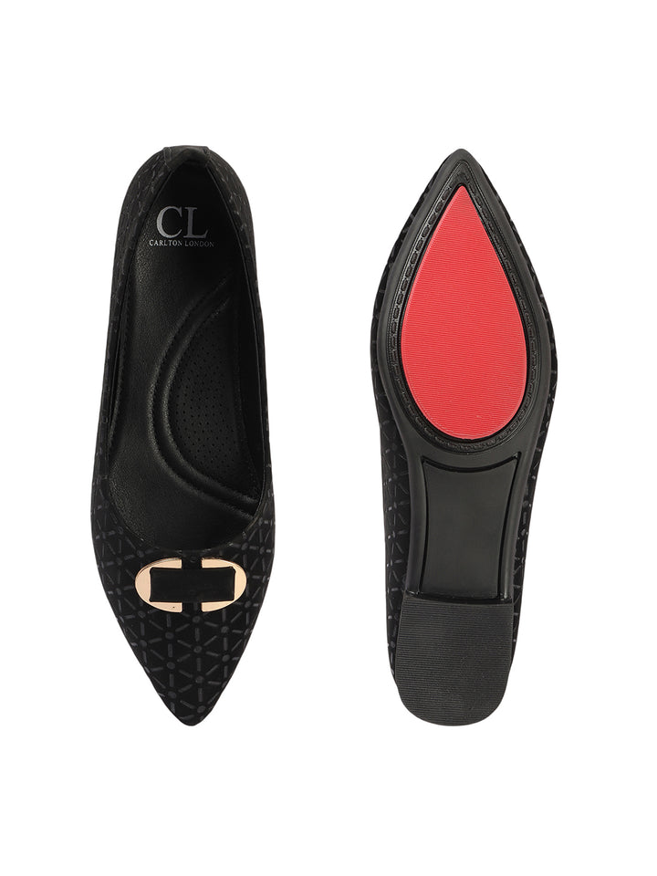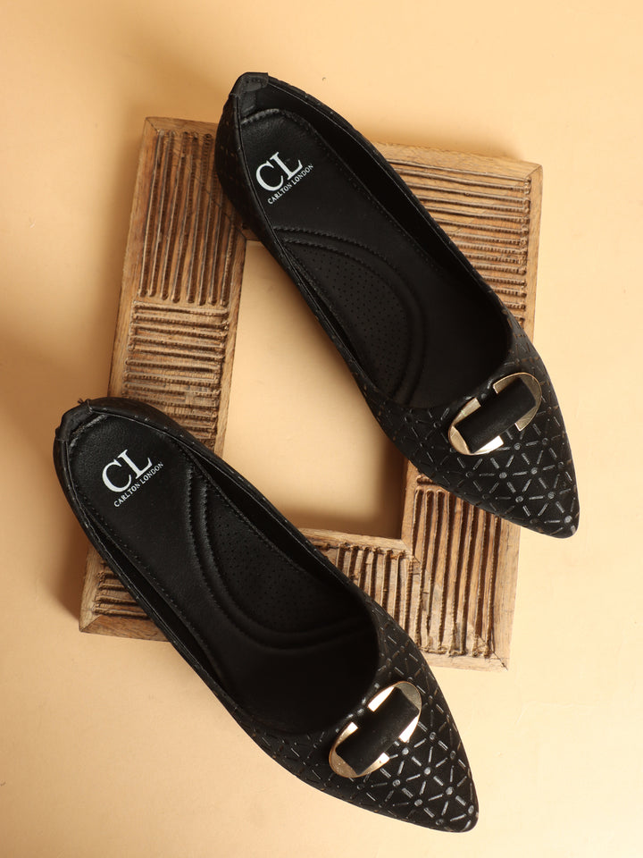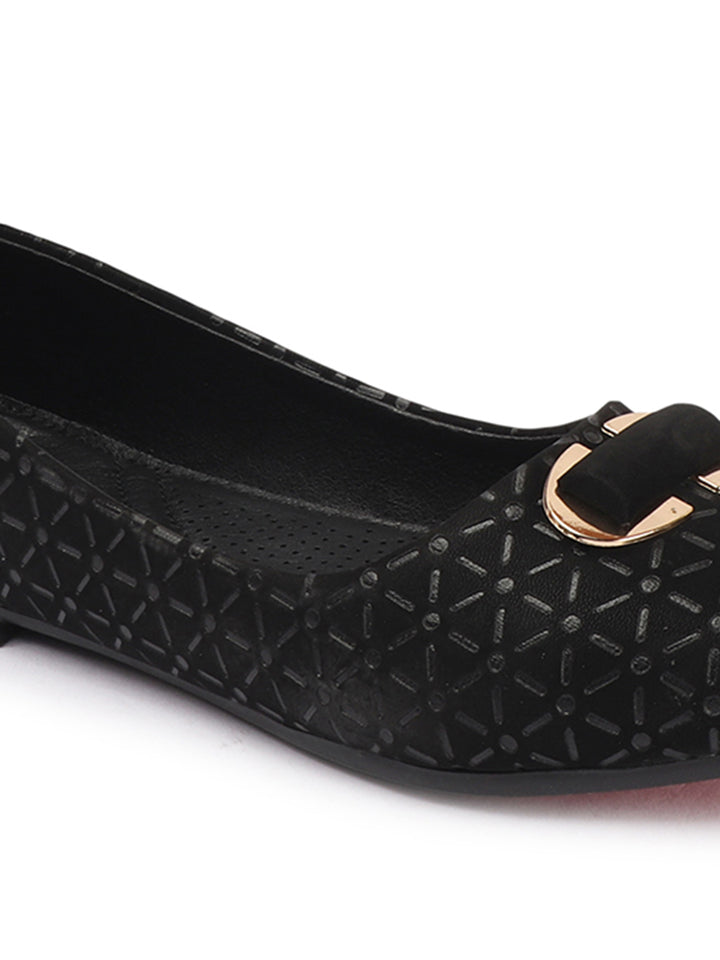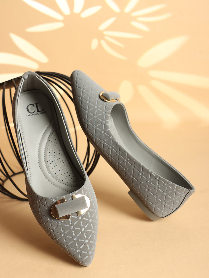 Women's Pointed Toe Textured Ballet Flats with Ornament