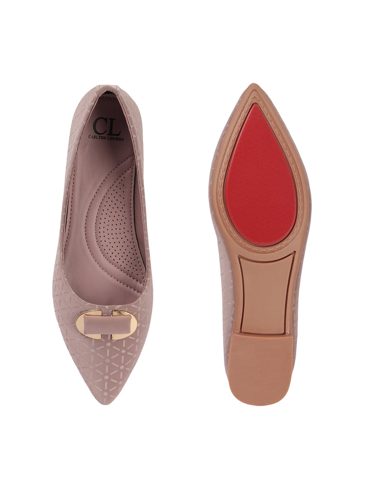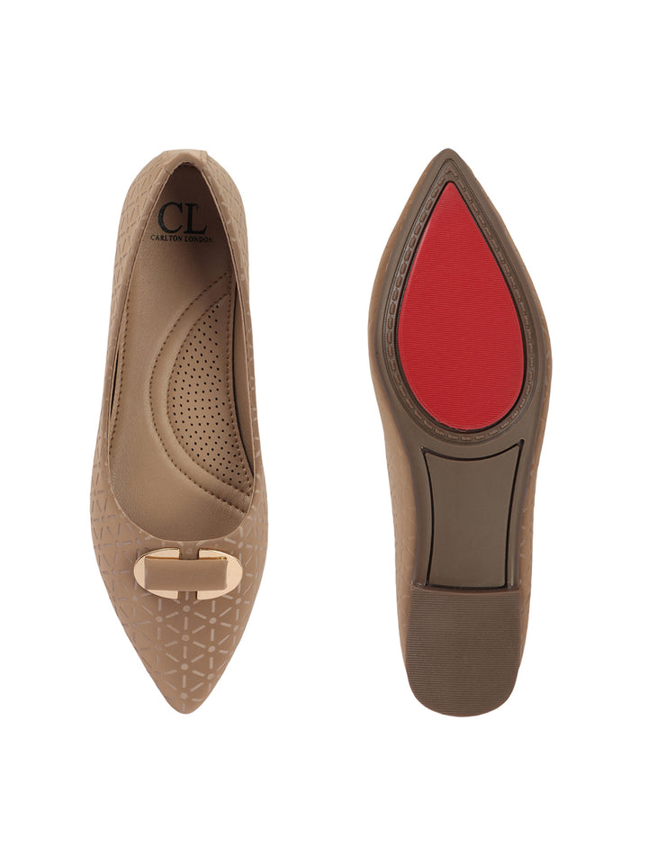 Carton London Women's Pointed Toe Textured Ballet Flats with Ornament