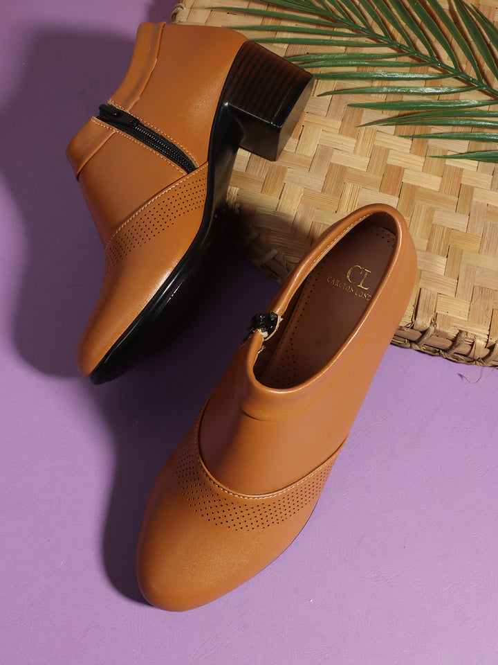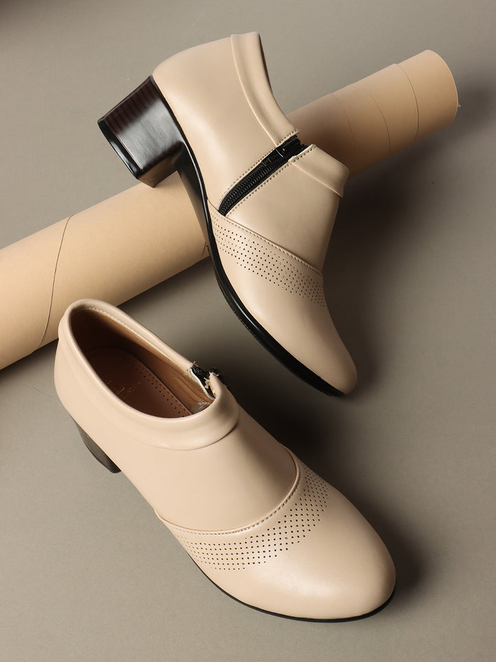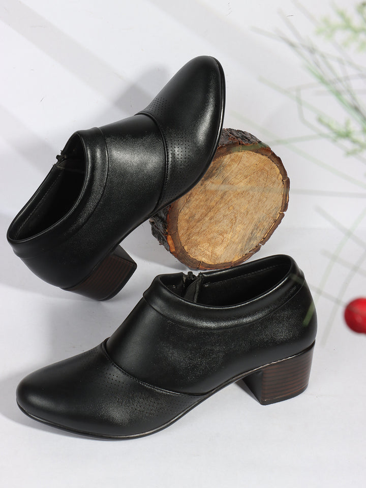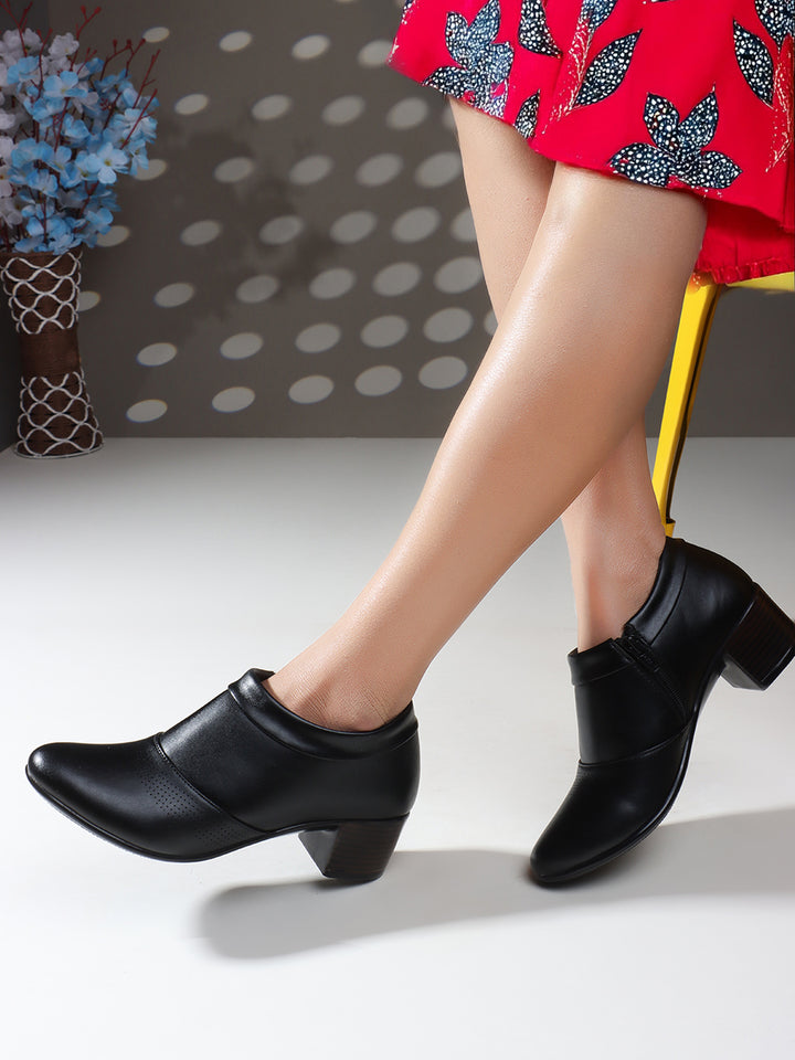Women's Pointed Toe Zip-Up Block Heel Ankle Boots