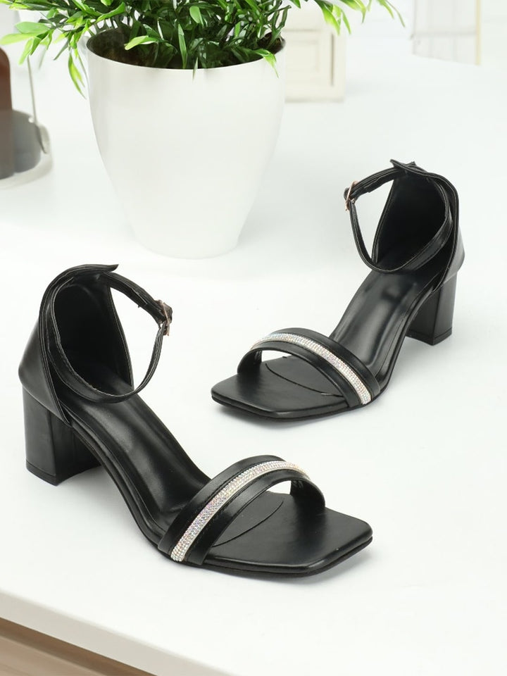 Achieve effortless glamour with these sleek and comfortable block heel sandals. The classic open-toe design is elevated by a wide front strap featuring delicate rows of shimmering rhinestone embellishments that provide eye-catching sparkle. Set on a stable, mid-height block heel, these sandals offer confident elevation and comfortable all-day or all-night wear. The adjustable slim ankle strap ensures a secure and personalized fit, while the contemporary square toe adds a modern touch. These versatile heels are perfect for dressing up any outfit, seamlessly transitioning from sophisticated evening events to festive celebrations.