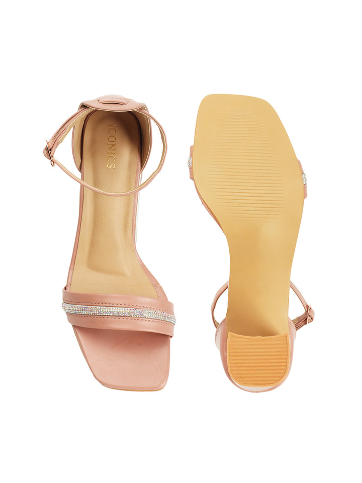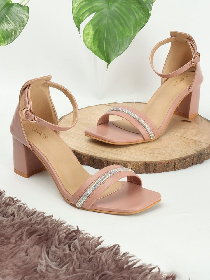ICONICS Women's Rhinestone Embellished Block Heel Sandals