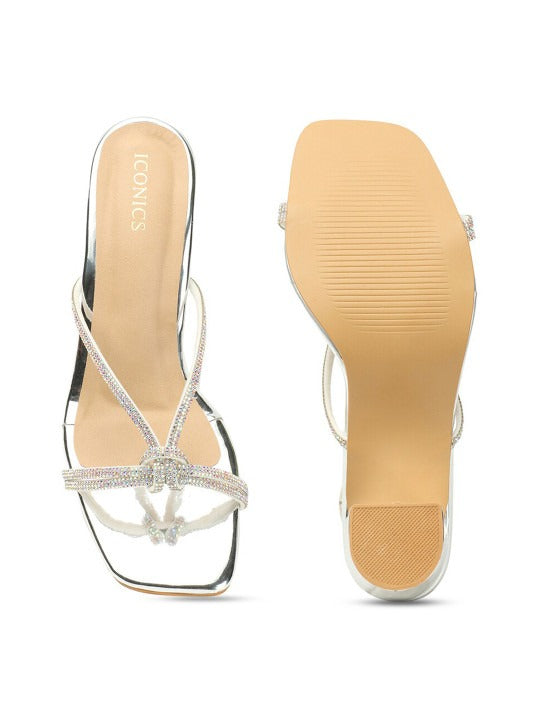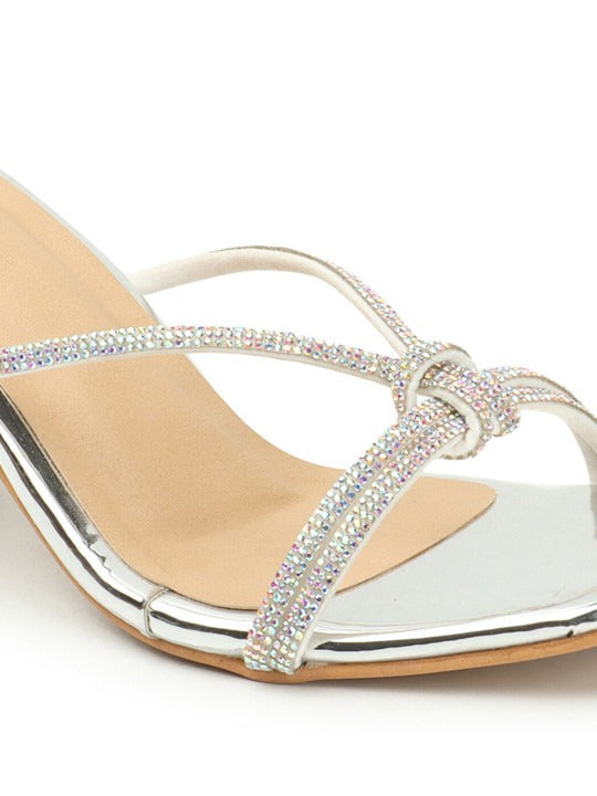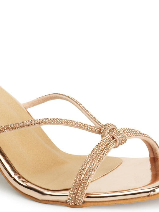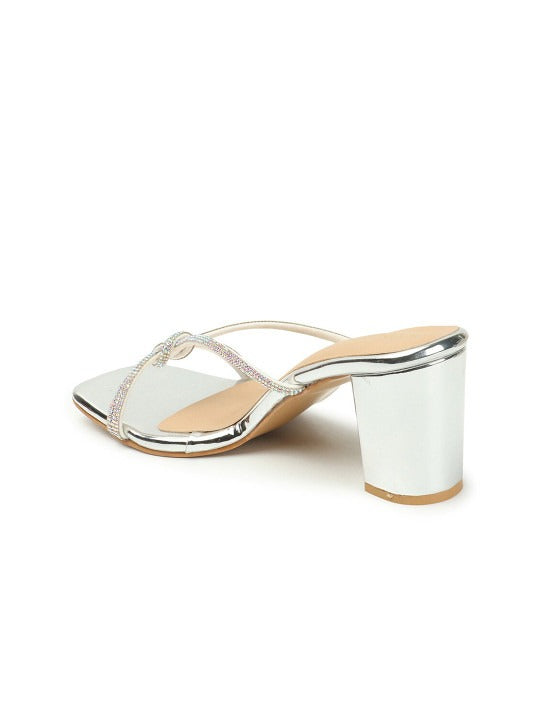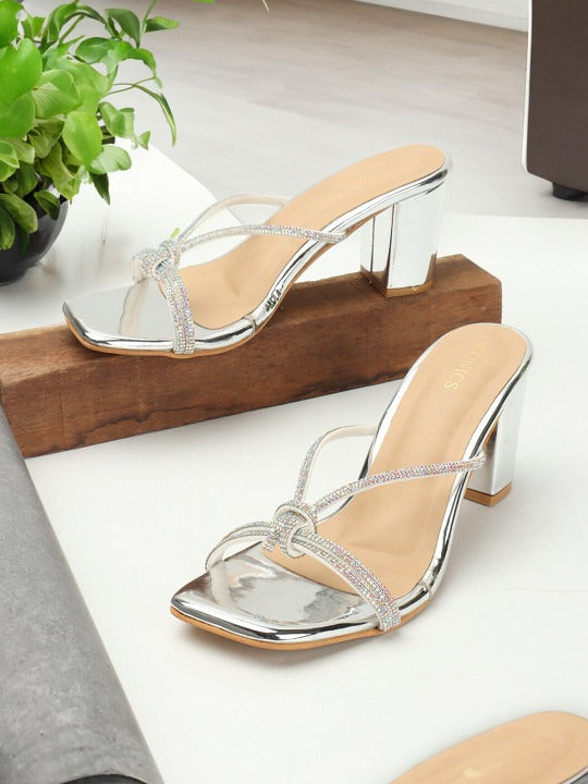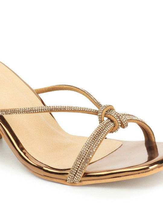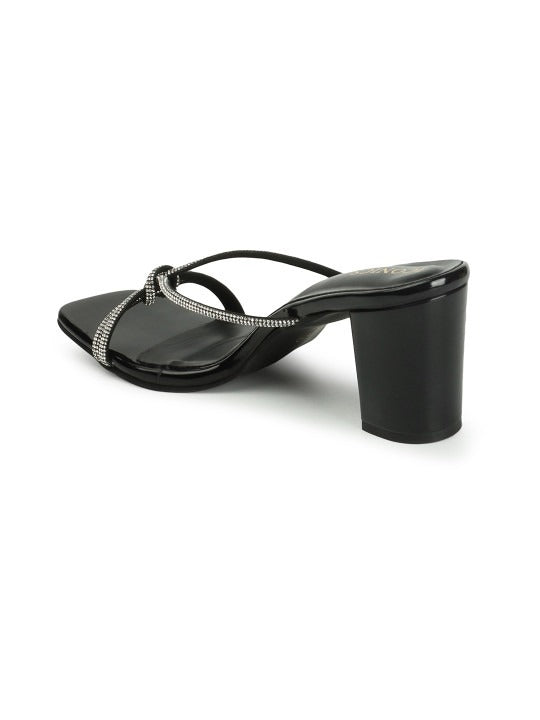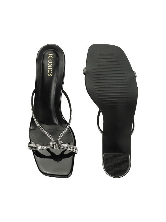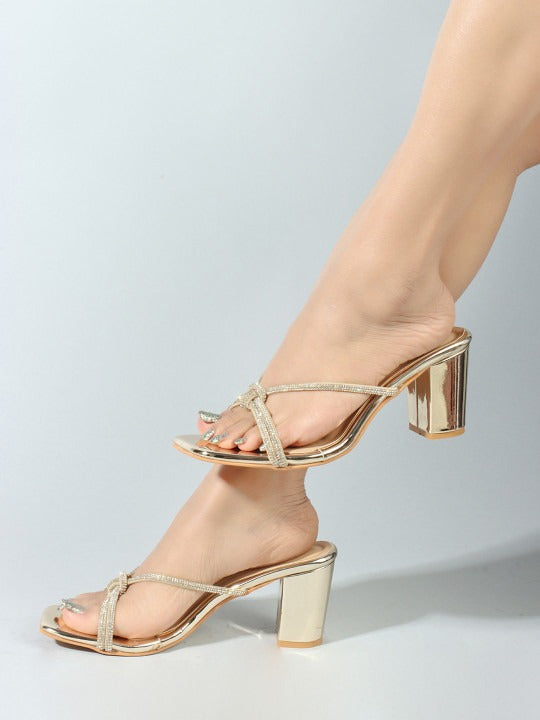 Dazzle at your next event with these chic Strappy Block Heel Sandals. These slip-on sandals are designed for maximum impact, featuring thin, delicate rhinestone-studded straps that cross and tie in an elegant front knot. The sparkling embellishments beautifully contrast with the high-shine finish of the heel and sole, ensuring you capture attention with every step.