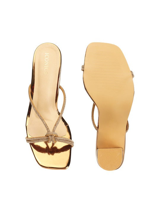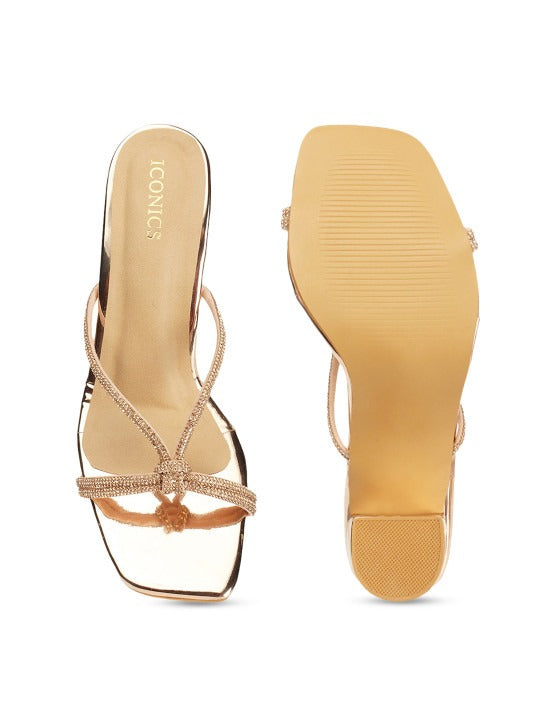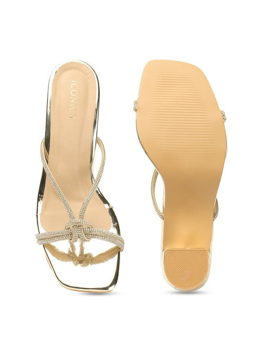 ICONICS Women's Rhinestone Strappy Square-Toe Block Heel Sandals