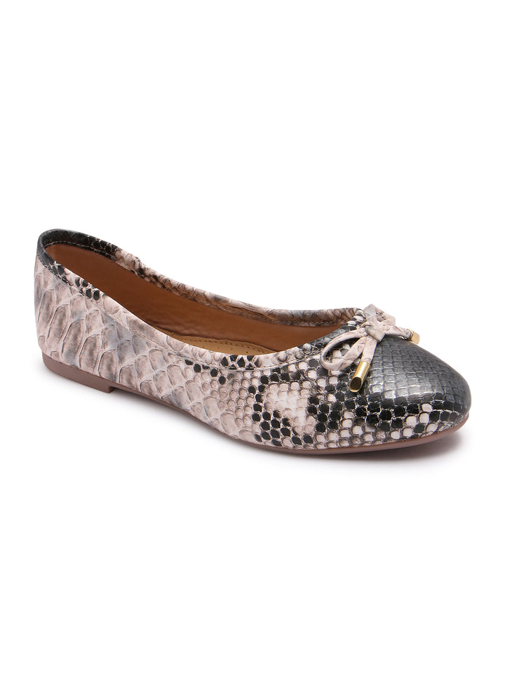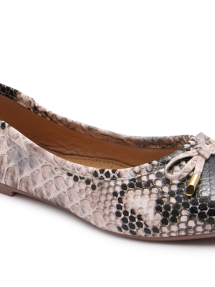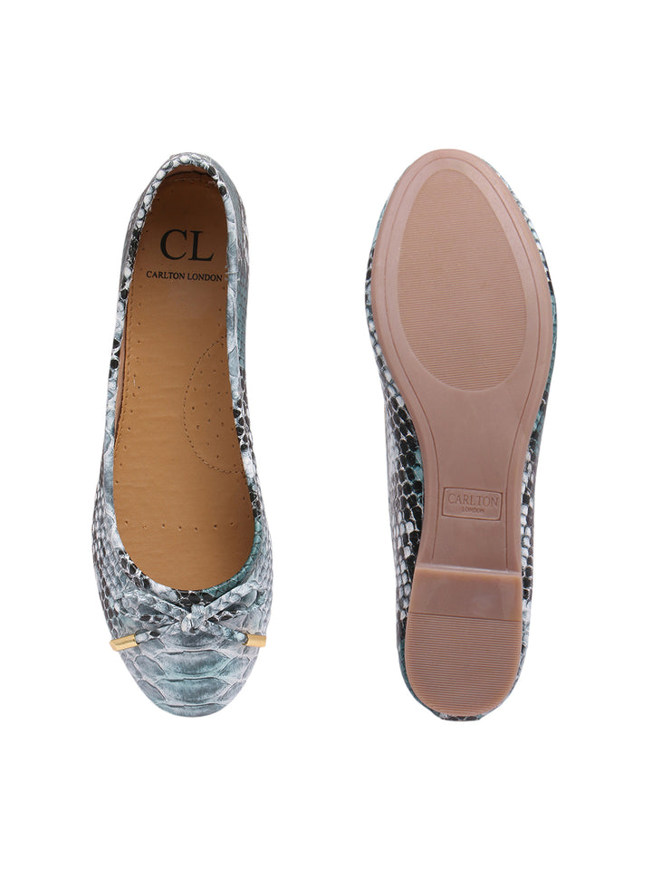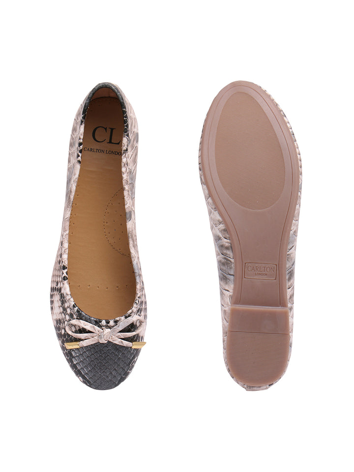Carlton London Women's Round Toe Snake Print Ballerinas With Bows