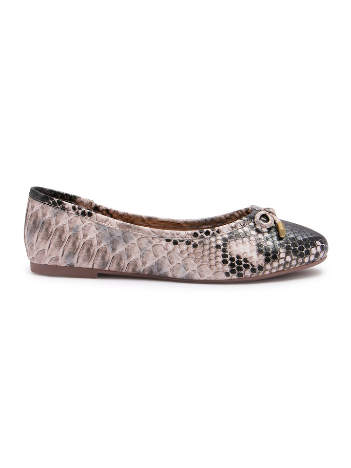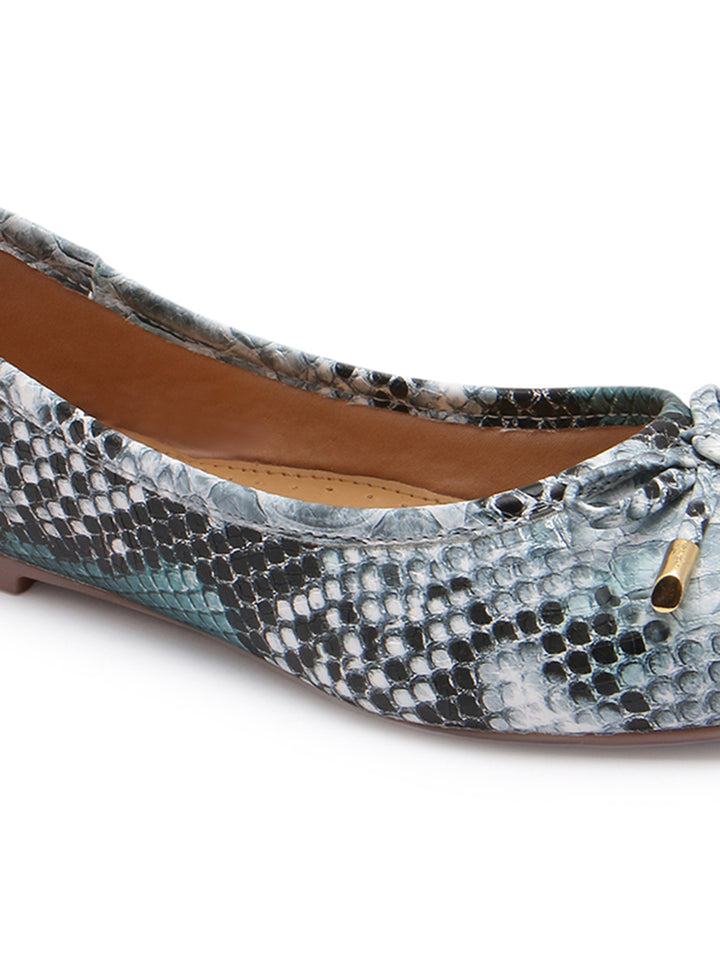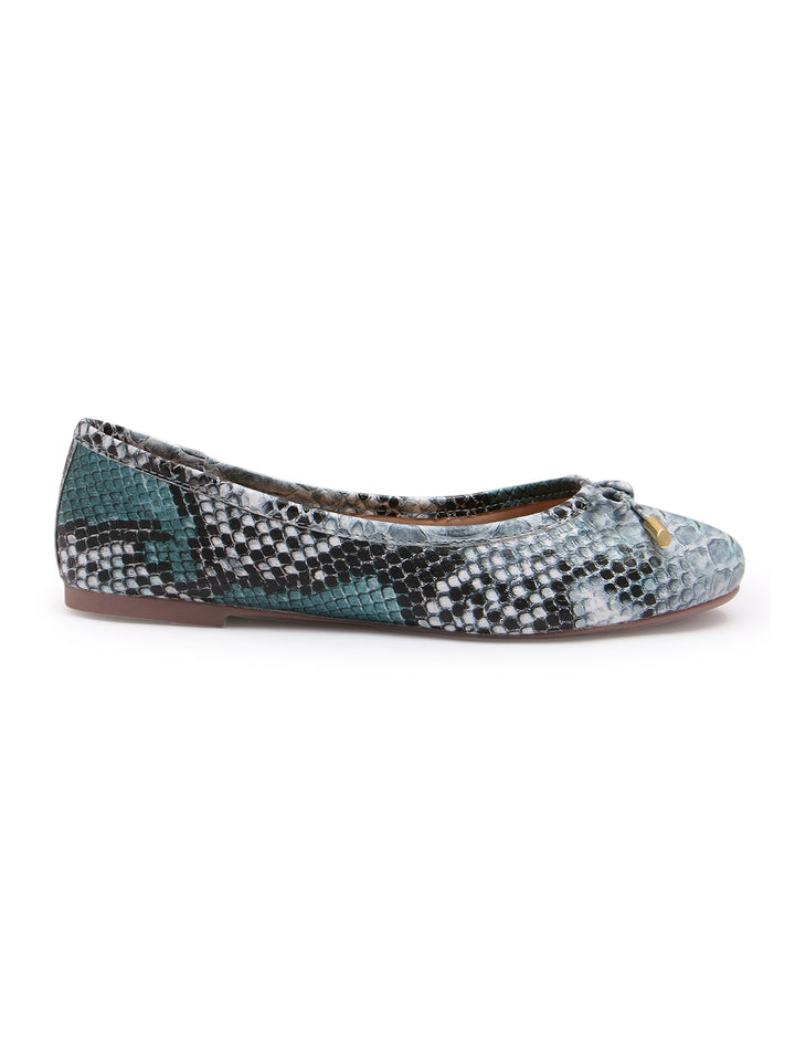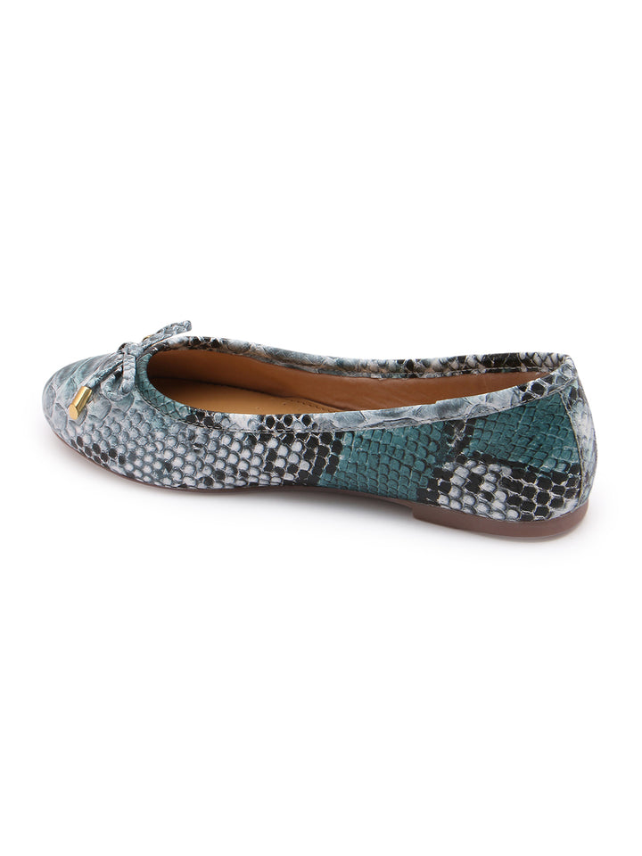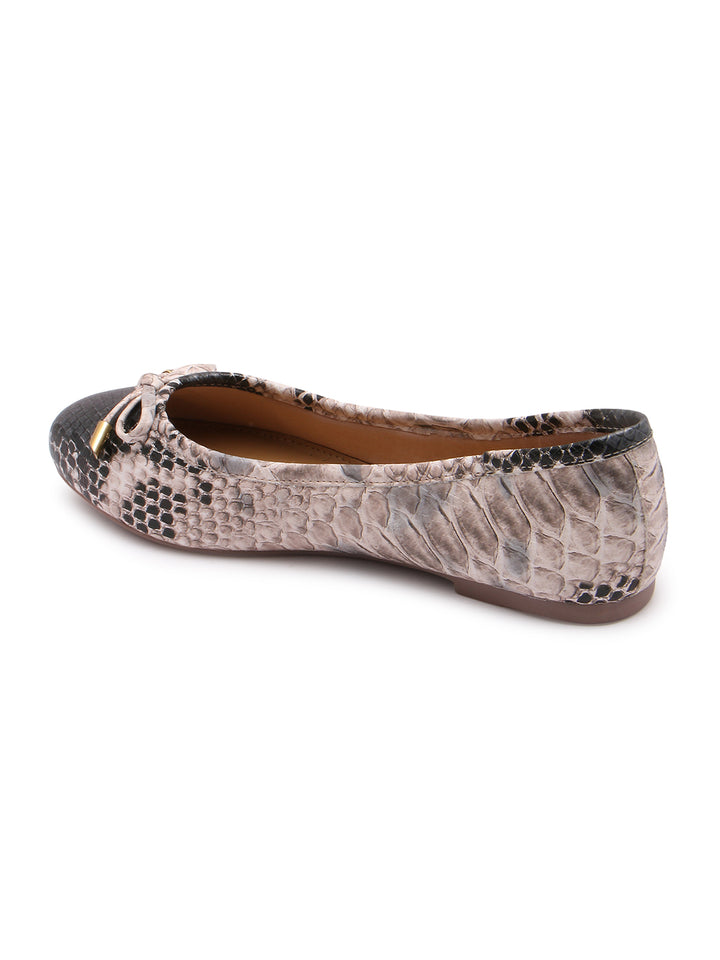 Carlton London Women's Round Toe Snake Print Ballerinas With Bows