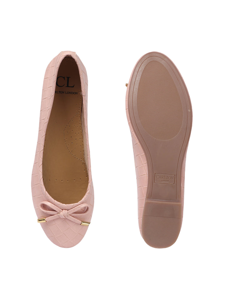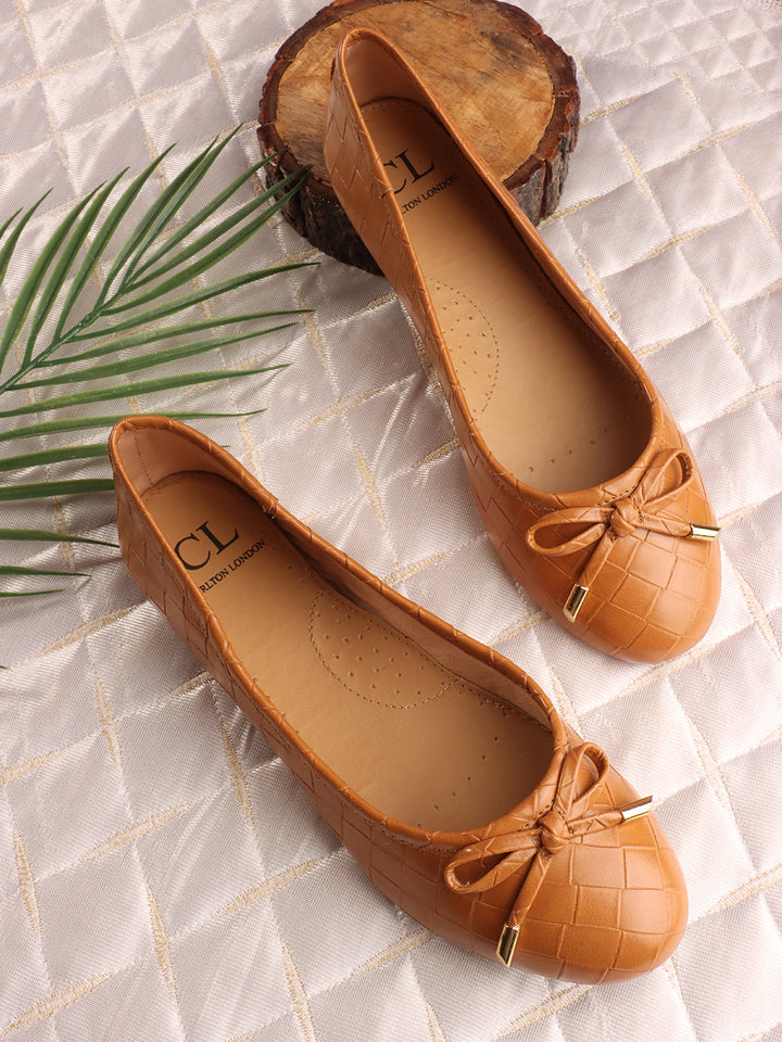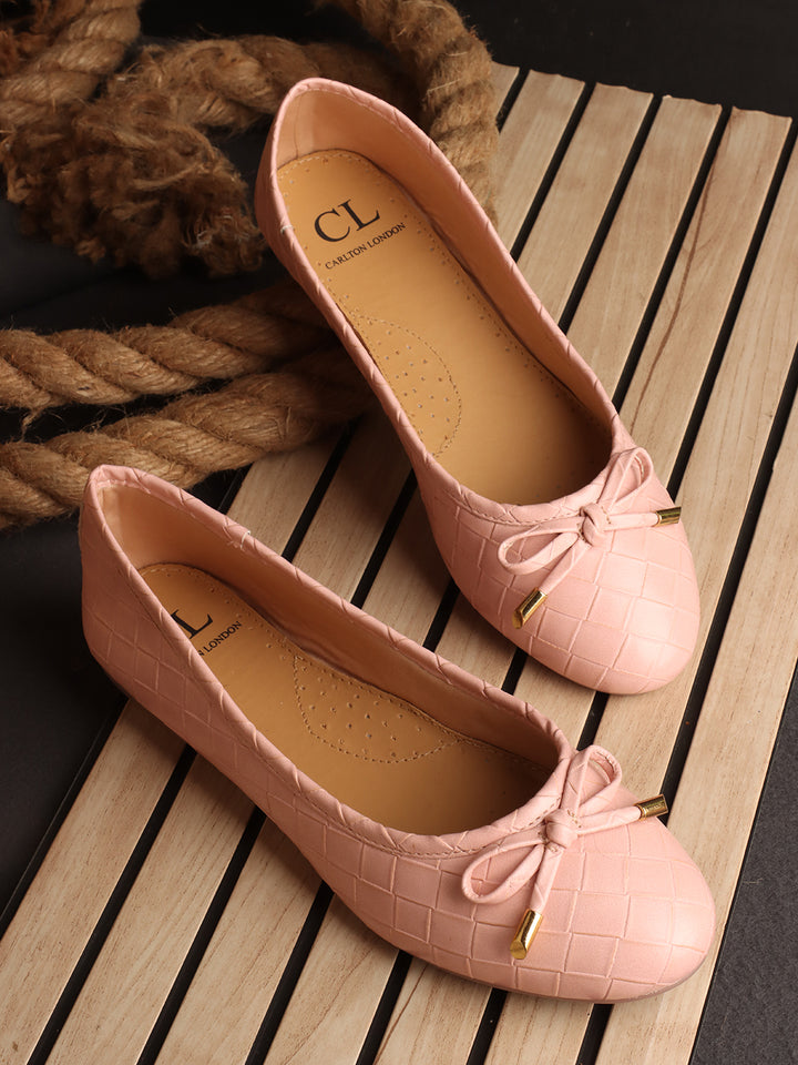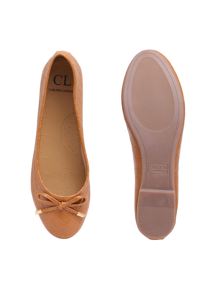 Carlton London Women's Round Toe Textured Ballerinas With Bows