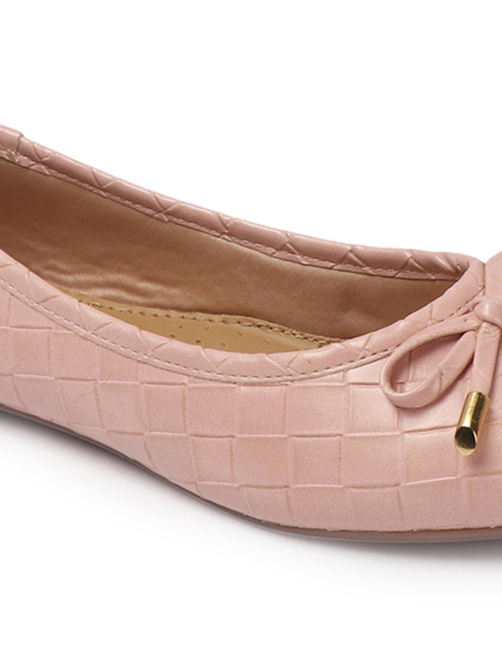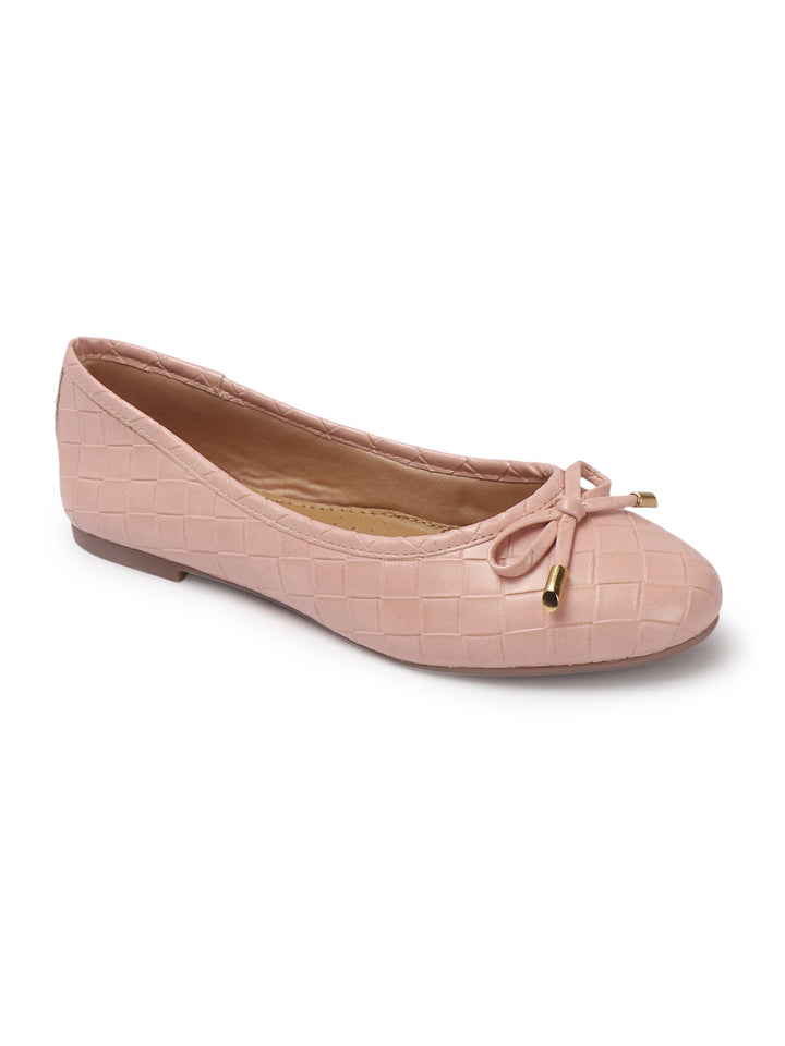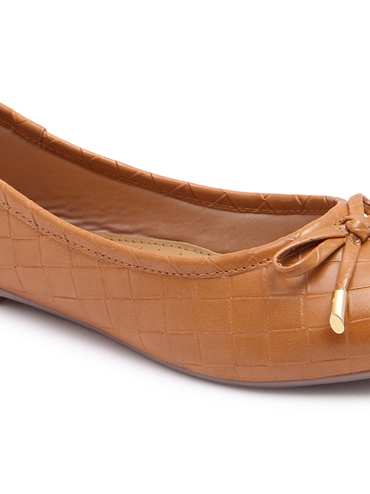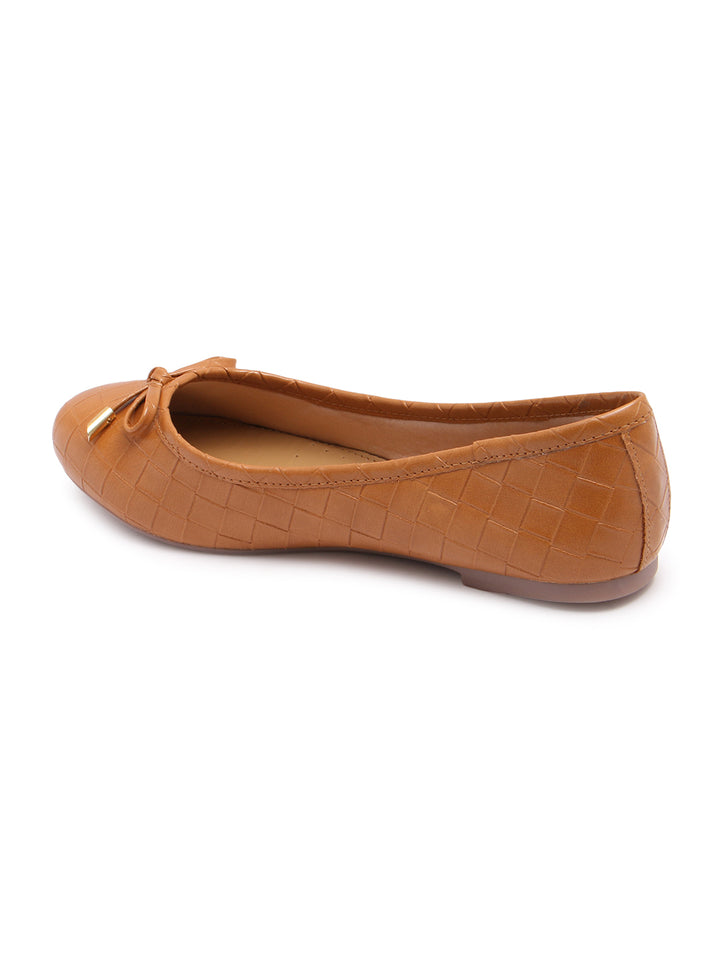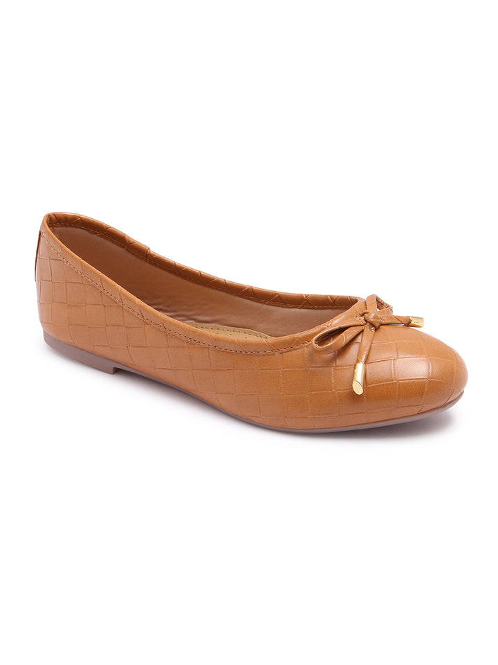 Carlton London Women's Round Toe Textured Ballerinas With Bows