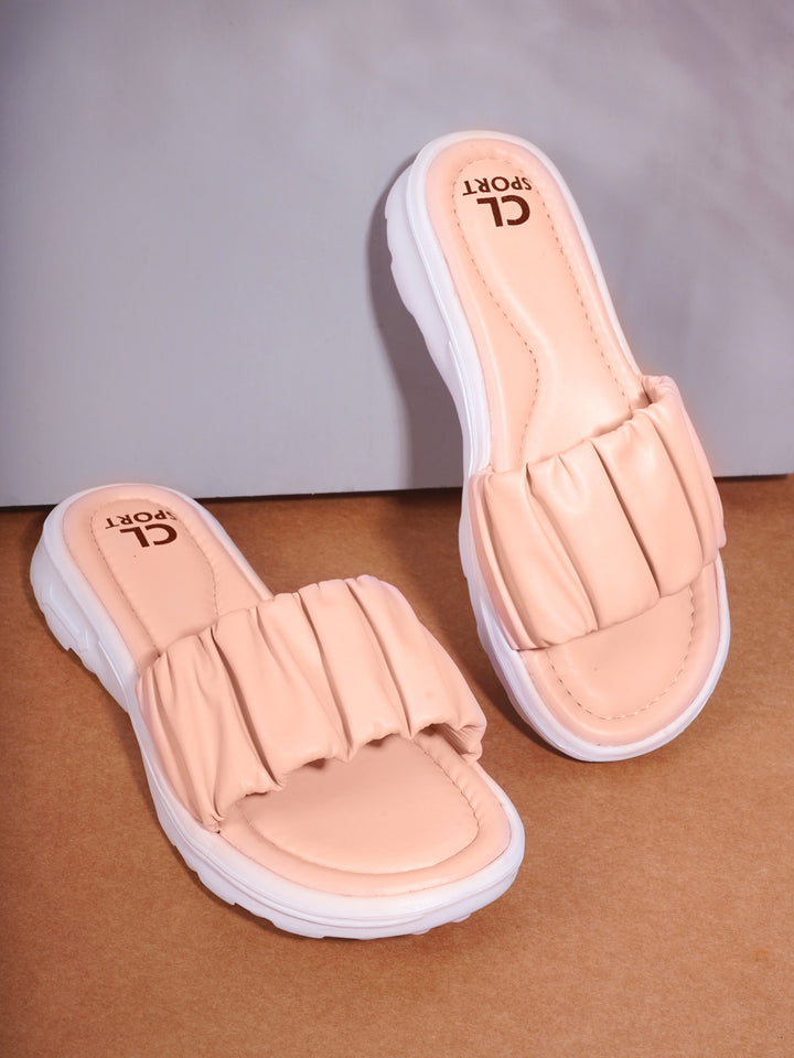 Women's Ruched Strap Comfort Slide Sandals