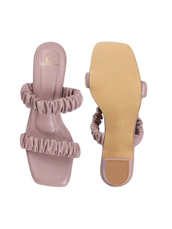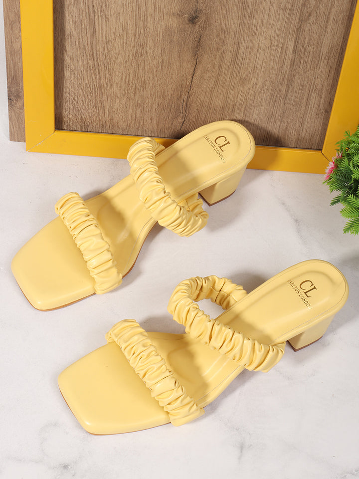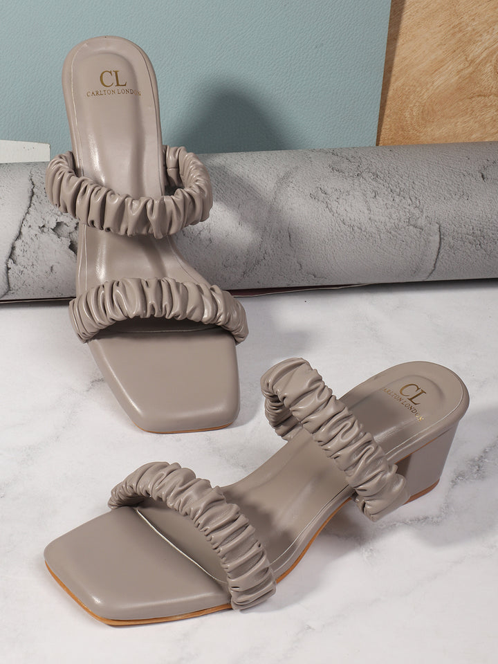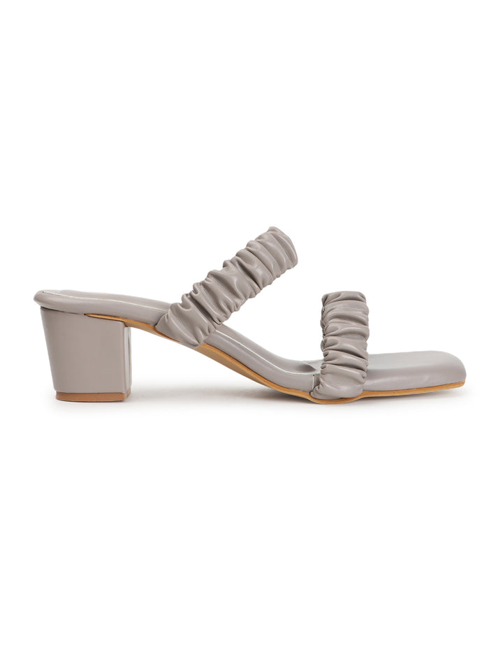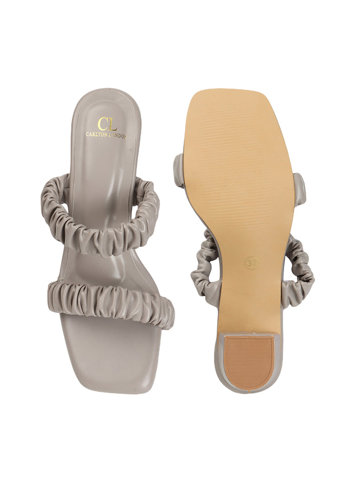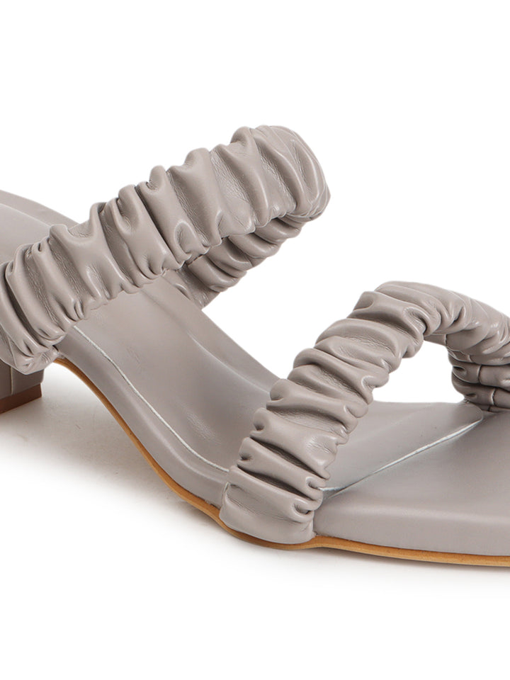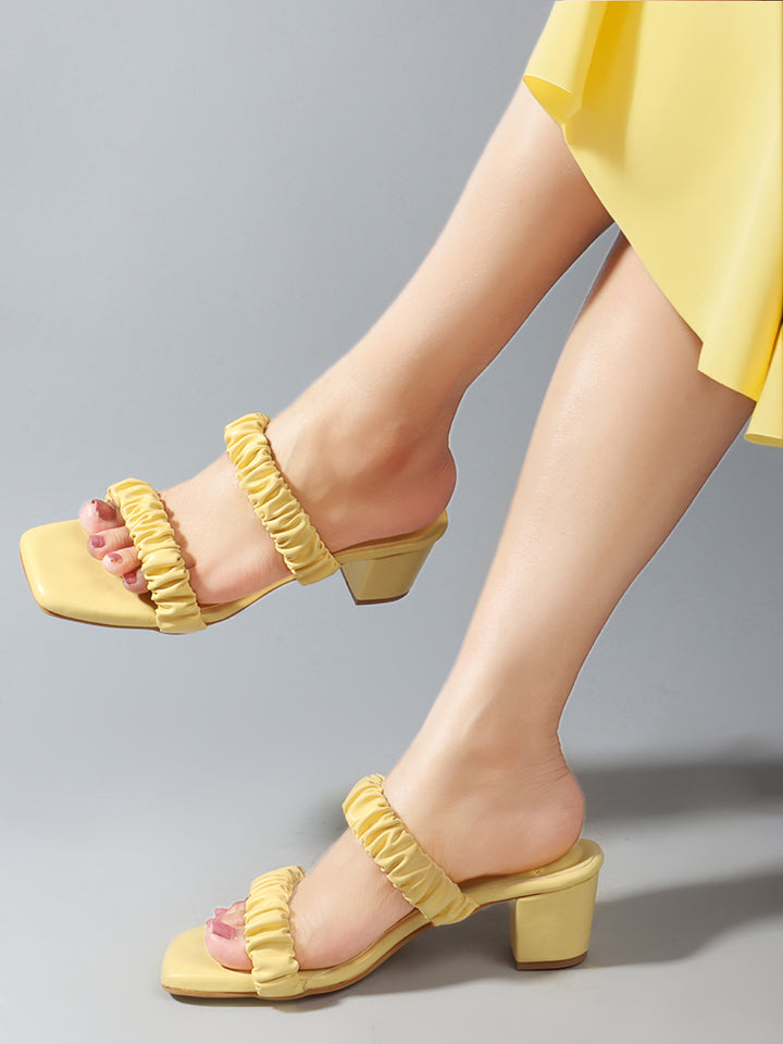 Women's Ruched Strap Square Toe Block Heel Sandal