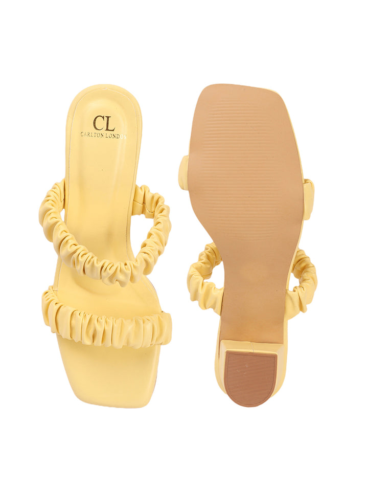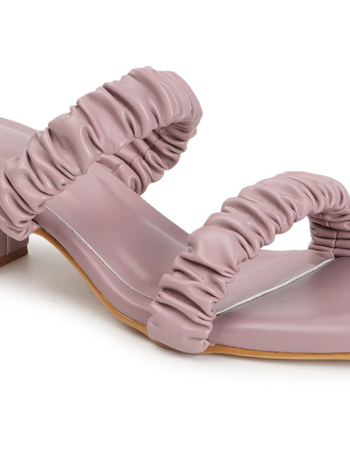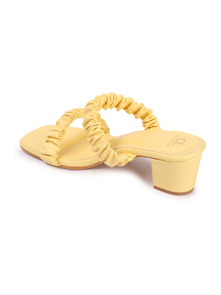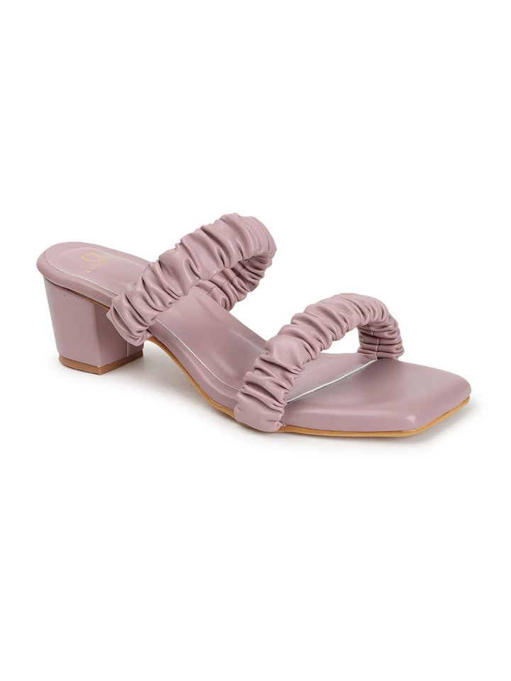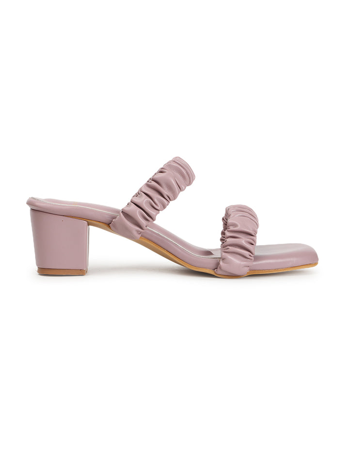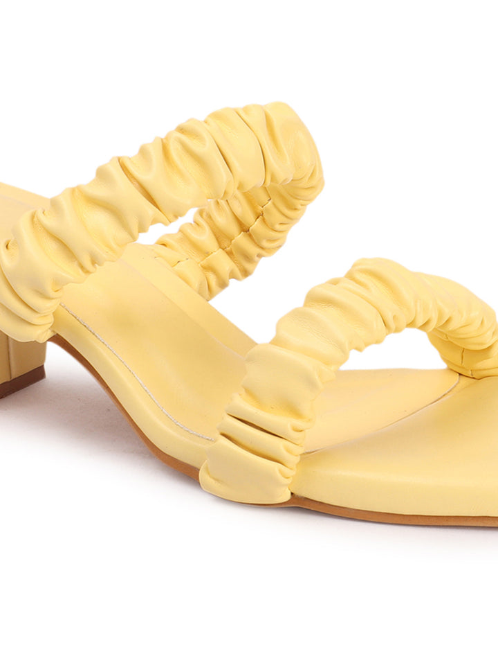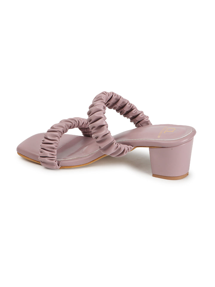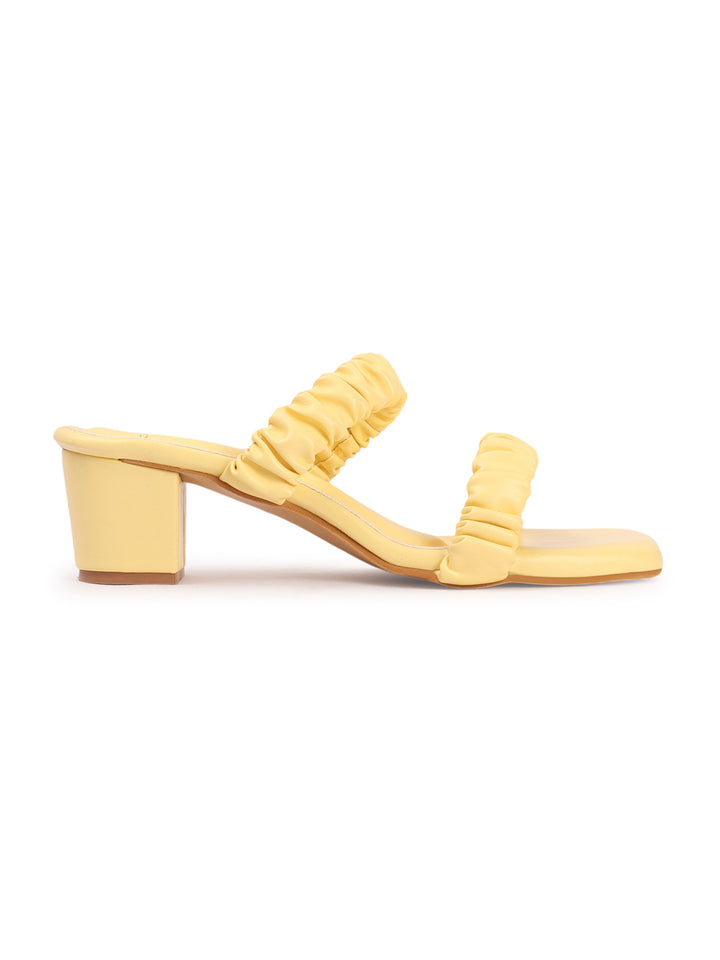 Women's Ruched Strap Square Toe Block Heel Sandal
