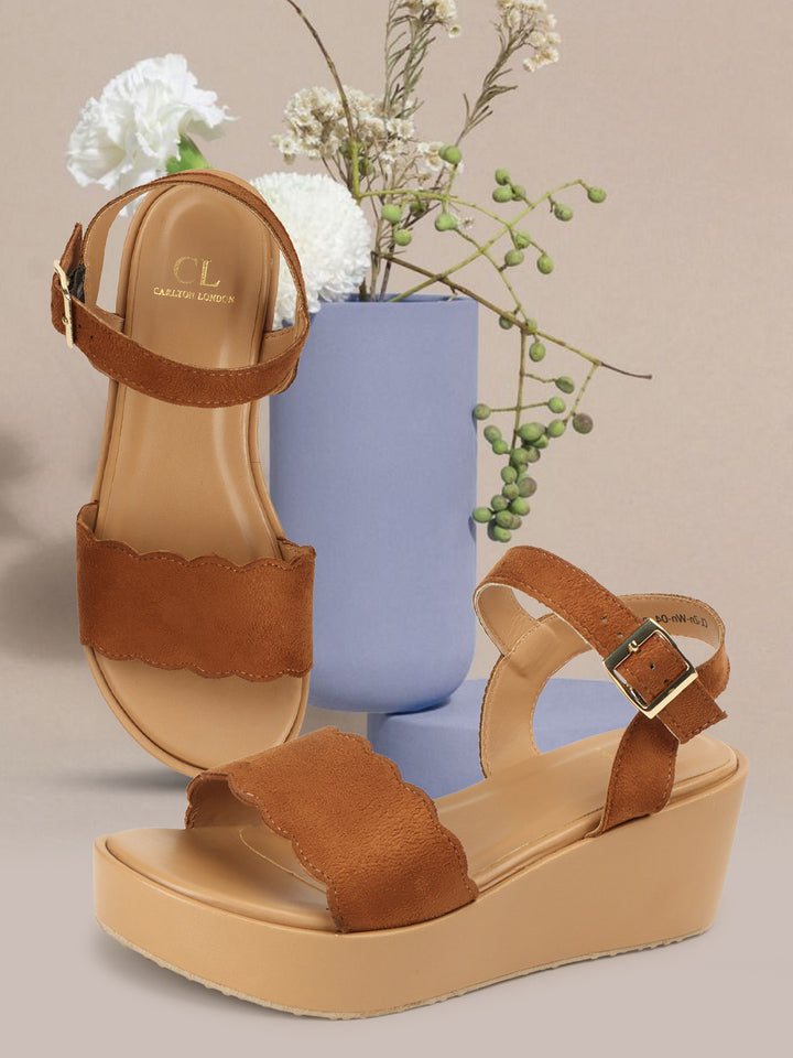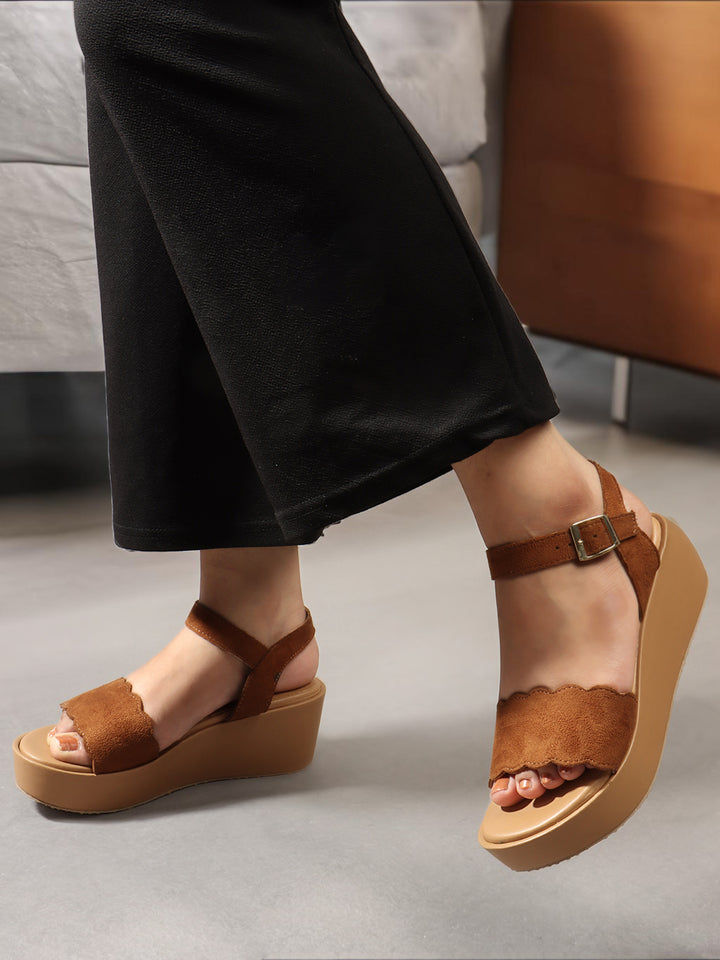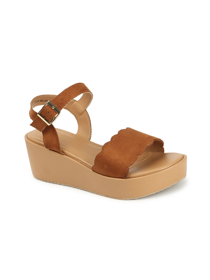Women's Scalloped Strap Wedge Sandals