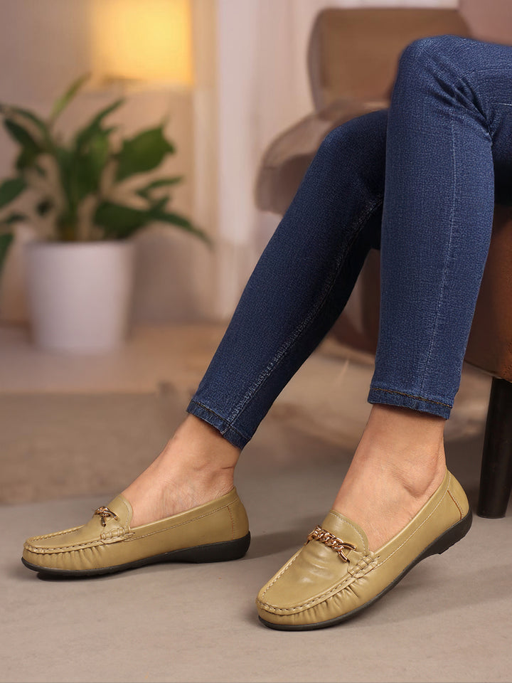 Carlton London Women's Slip-On Loafers with Chain Detail