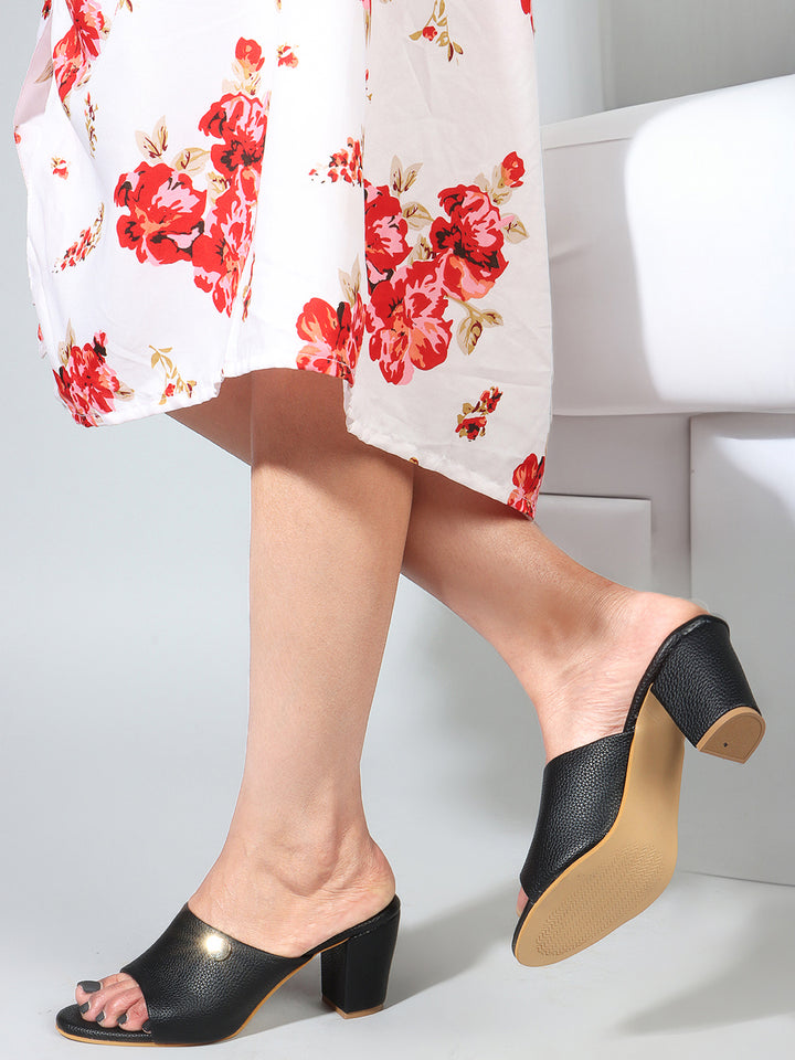Carlton London Women's Slip-On Square Toe Block Heel Sandals